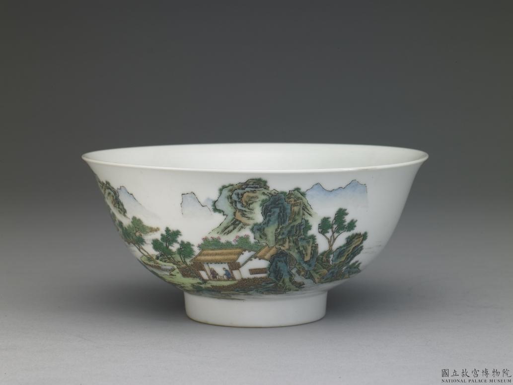 清雍正琺瑯彩瓷青綠山水碗(一對)