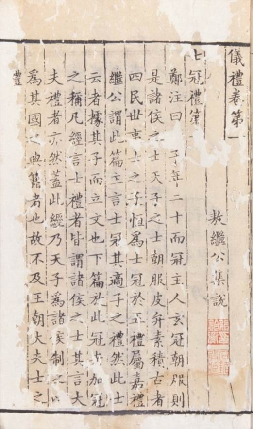 元大德間(1297-1307)刊本。 撰者敖繼公(生卒年未詳),字君善,長樂人,寓烏程,宋末舉進士,對策忤時相,遂不仕。 此書為闡述《儀禮》經義之作。卷首自序即言此書撰述方法與體例,乃以舊注為根柢,提出駁議,強調回復古經。 元版古籍,罕見稀有,具重要歷史、文化與學術價值。