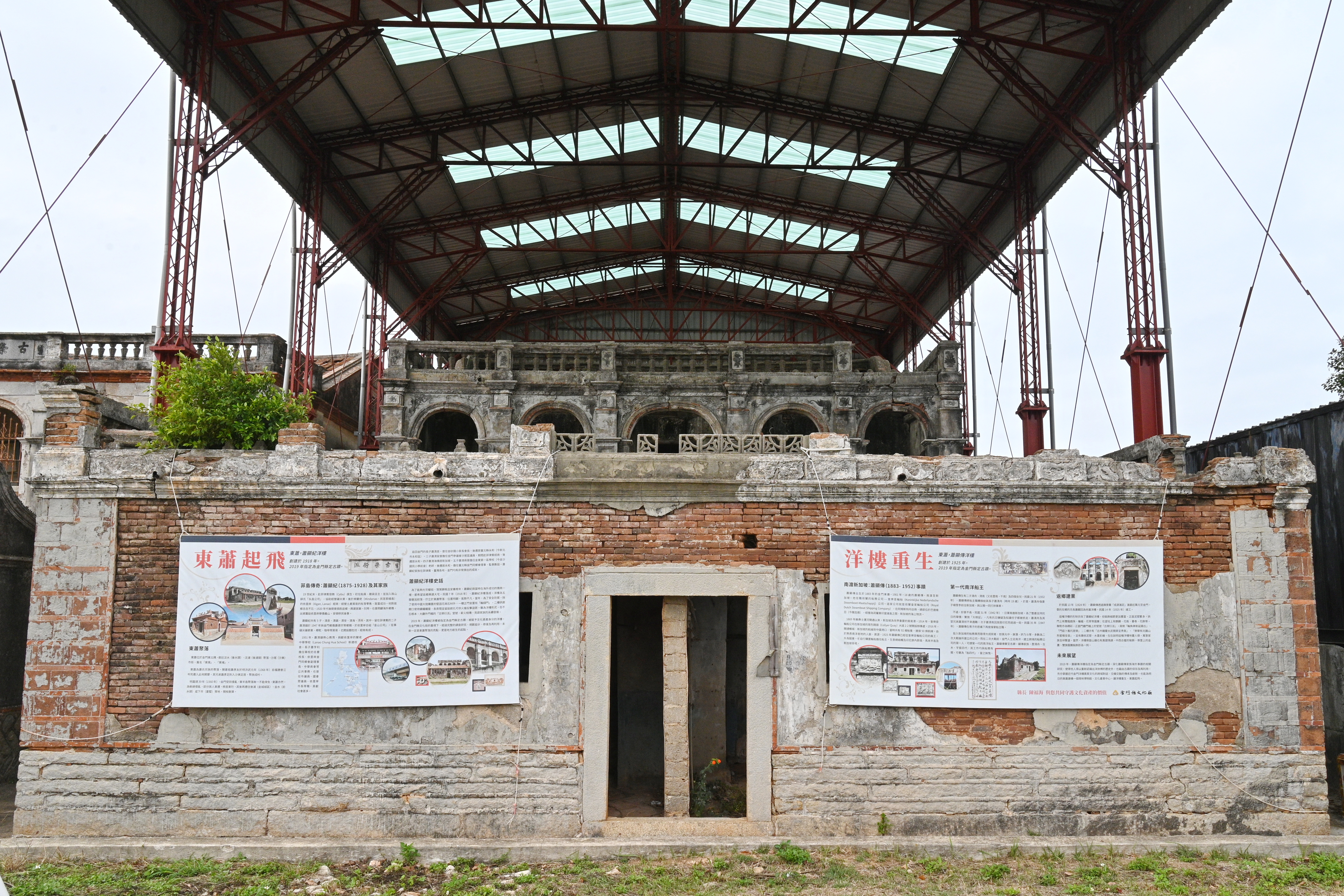 蕭顯傳,生於清光緒9年(1883),卒於民國41年(1952)。清光緒26年(1901),年僅18歲的蕭顯傳遠赴南洋,前往新加坡謀生,從事船務與海事相關行業。 民國13年(1924),蕭顯傳透過金門鄉紳陳景蘭所創辦的「成源商行」,自新加坡匯款近萬元龍銀,託付堂兄蕭顯回於金門督造一幢洋樓。該洋樓於民國14年(1925)竣工。 民國38年(1949)國軍占用,作為野戰醫院使用;民國43年(1954)徵作成立特約茶室沙美分室。至民國67年(1978)茶室遷出後歸還家族後人,洋樓自此閒置無人居住。民國78年(1978)國軍將洋樓歸還家族後人。 蕭顯傳27歲時與胞弟蕭水撰分家,因出洋謀生,無法在家務農,遂將其先父遺產、田園及舊厝悉數讓與其弟水撰,蕭顯傳僅保留大孫園。 蕭顯傳49歲(1931年)時將船主職移交予其子蕭清舟接任。清舟19歲即承擔重任,然於32歲時遭日軍殺害。民國35年(1946),蕭顯傳再度接掌船務事業。 民國20年(1931)蕭顯傳孫女秀娥出生於該洋樓,3歲時隨家人移居至新加坡。民國24年(1935)孫兒古木則出生於新加坡。蕭顯傳生前分別於民國30年(1941年,59歲)及民國35年(1946年,64歲)立有遺囑,交付其孫古木及媳婦楊雪李收存。 洋樓落成後,蕭顯傳曾與親族短暫返鄉居住,1934年孫女蕭秀娥3歲時隨家人移居新加坡後,洋樓交由親族代管。目前後代皆在新加坡,產權由黃素琴女士所有。