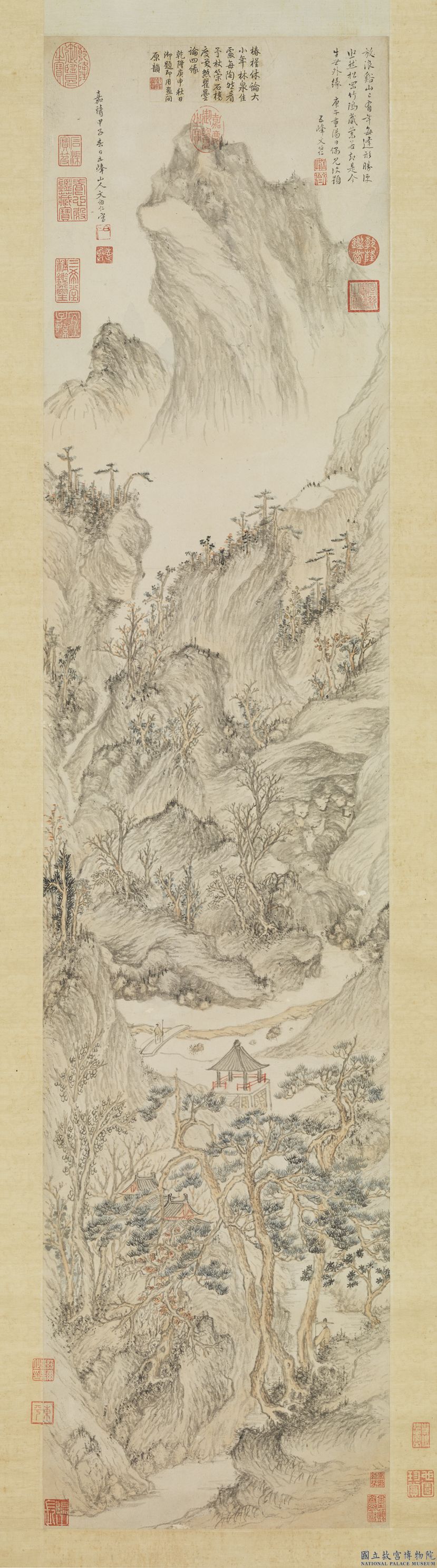 文伯仁畫作尚多,此作用筆雖較粗放,但仍維持他喜愛表現畫中細節的特色,為文伯仁晚期脫去細密風格,演繹王蒙(1308-1385)風格的紀年佳作。