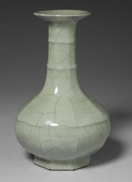 官窯青瓷八方弦紋盤口瓶(故瓷017701)