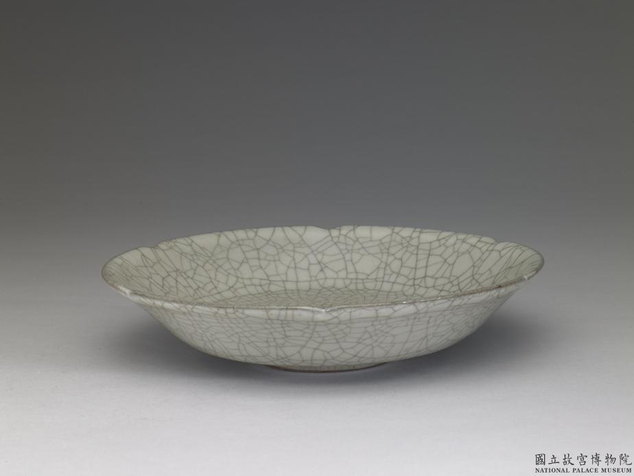 此器色灰青,底面鐫刻乾隆皇帝〈題哥窯盤子詩二首〉詩,詩末署「乾隆庚戌春御題」紀年銘(1790),並落「古香」一枚鈐印。乾隆皇帝傳世近兩百首歌詠陶瓷御製詩中,有十七首以「哥窯」為題。透過此器的詩文可推知乾隆皇帝對這件作品看法。