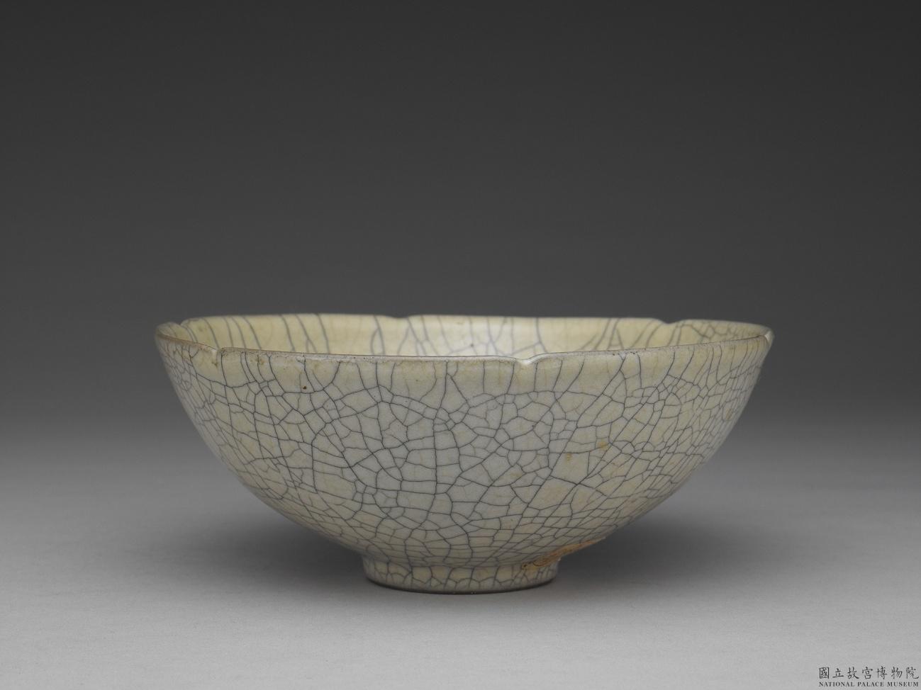 此器釉色呈米黃色,足內底面鐫刻乾隆皇帝〈詠哥窯葵花〉御製詩,詩末署「乾隆乙未孟夏御題」紀年銘(1775),並落「太璞」一枚鈐印。乾隆皇帝傳世近兩百首歌詠陶瓷御製詩中,有十七首以「哥窯」為題。乾隆皇帝鑑賞之際,因注意到清宮收藏中存在許多同樣具有葵口、開片特徵作品,故分別針對不同器形,表達同樣的鑑賞觀。透過此器的詩文可推知乾隆皇帝對這件作品看法,益顯珍貴。