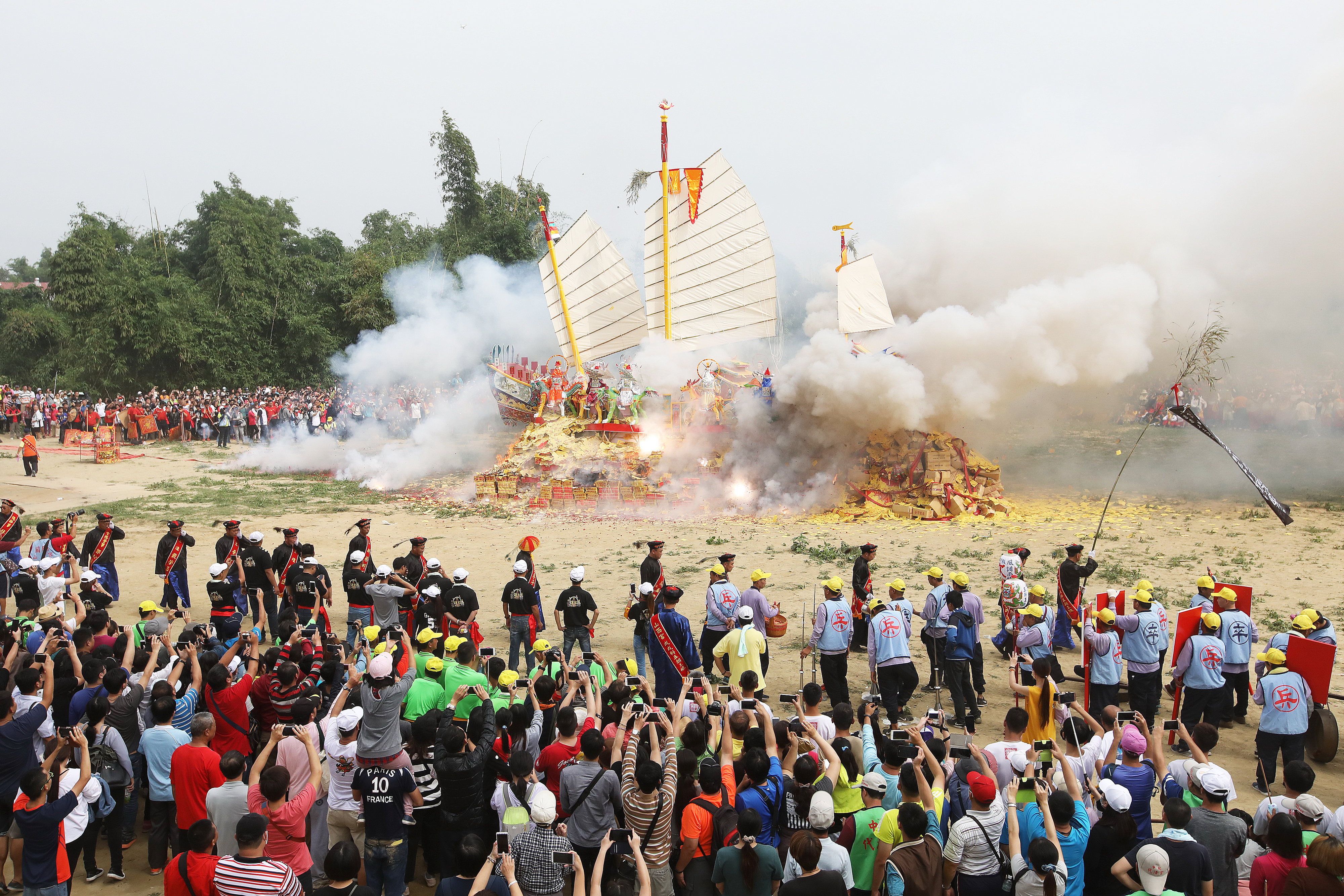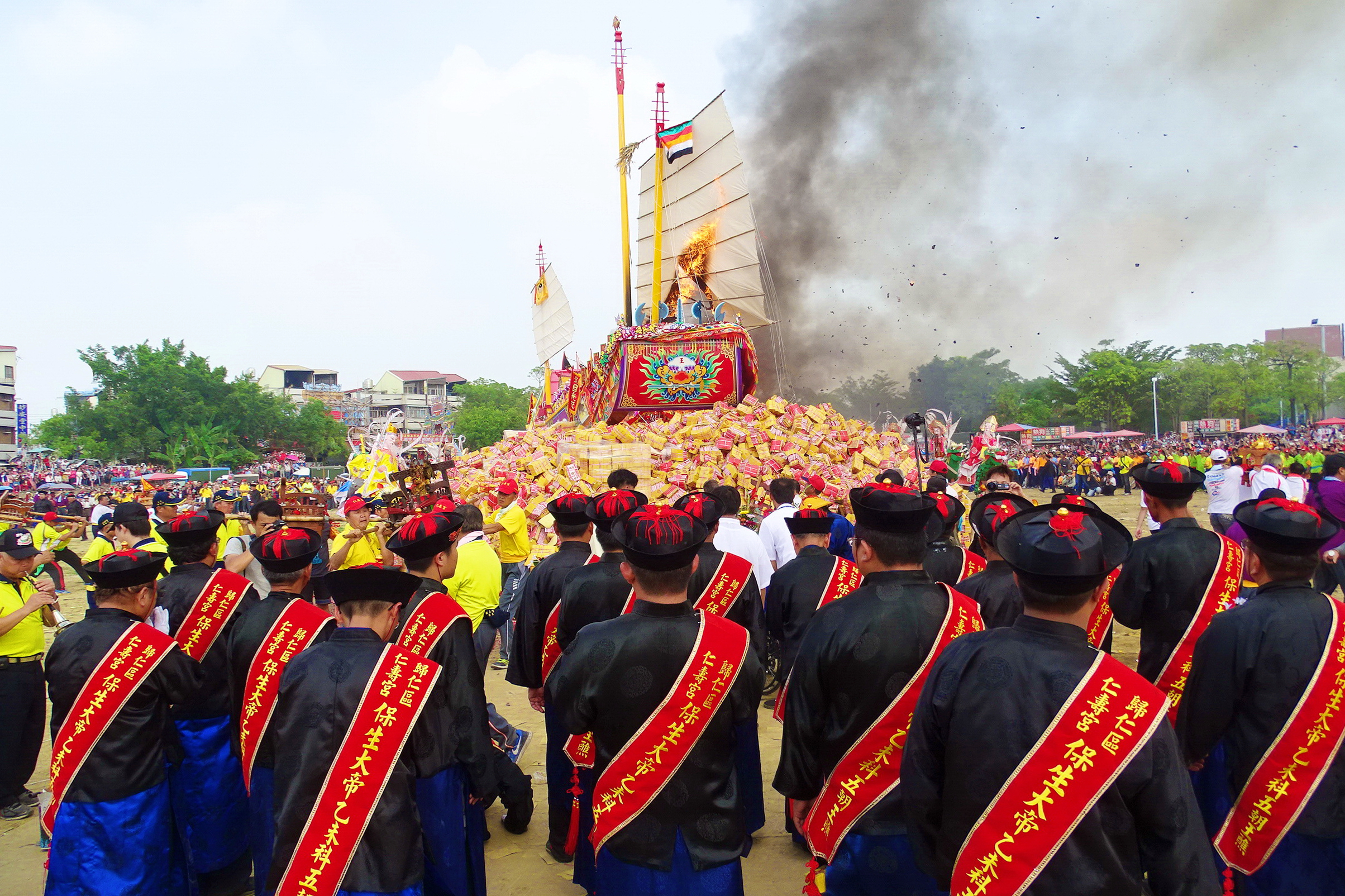 送王(燒王船)為王醮最後完成式,三大廟送王地點都在附近的許縣溪畔(歸仁仁壽宮曾在文化中心附近空地);送王時,「狀元公」先稟報、牽動啟航後,所有信眾再參與拉縴,全境文武陣頭則於事前參禮後先行至王船地圍圈警戒護衛;俟王船火化圓滿,所有人、轎、陣「息鼓偃旗」,靜默回廟,此為送瘟遺意。