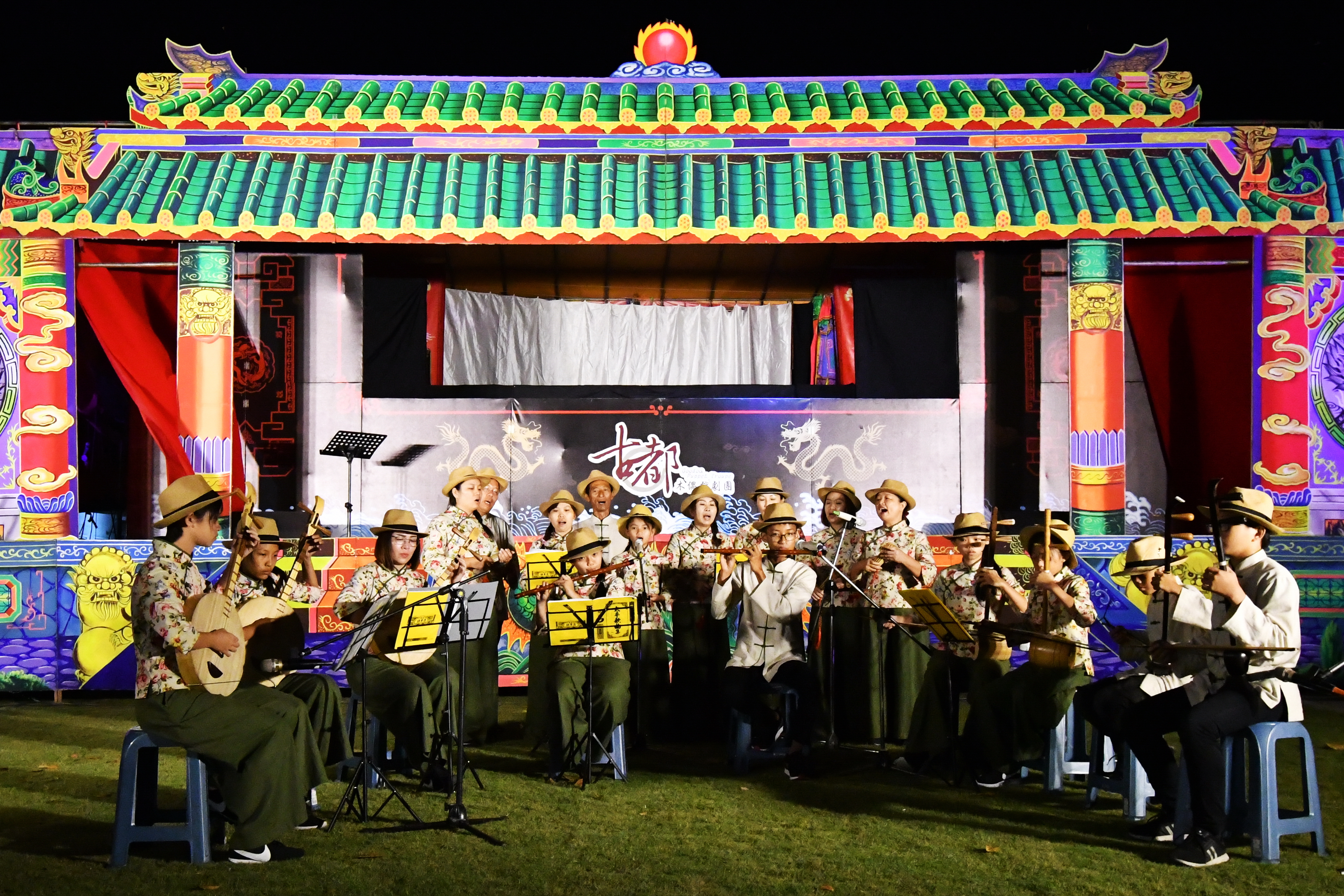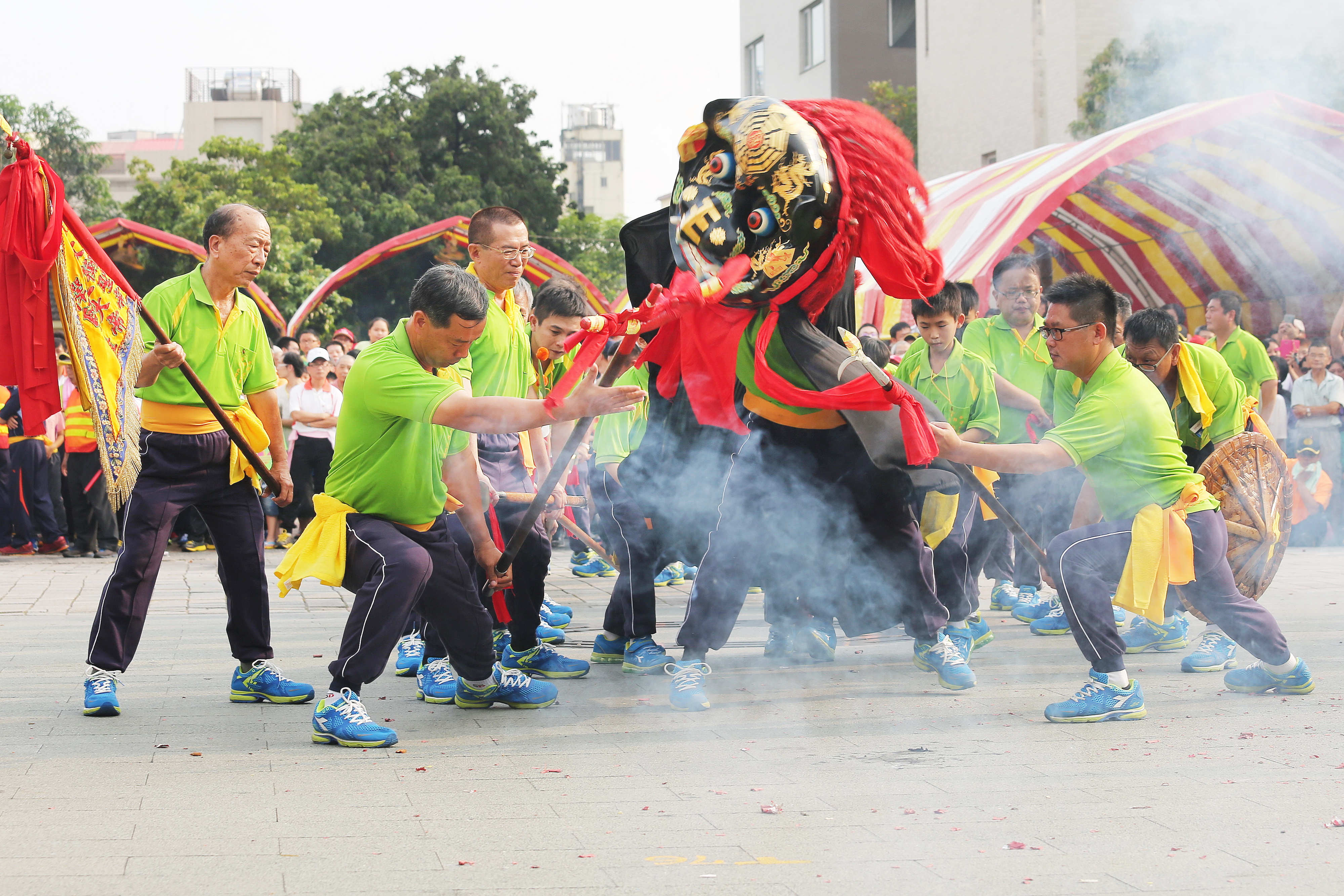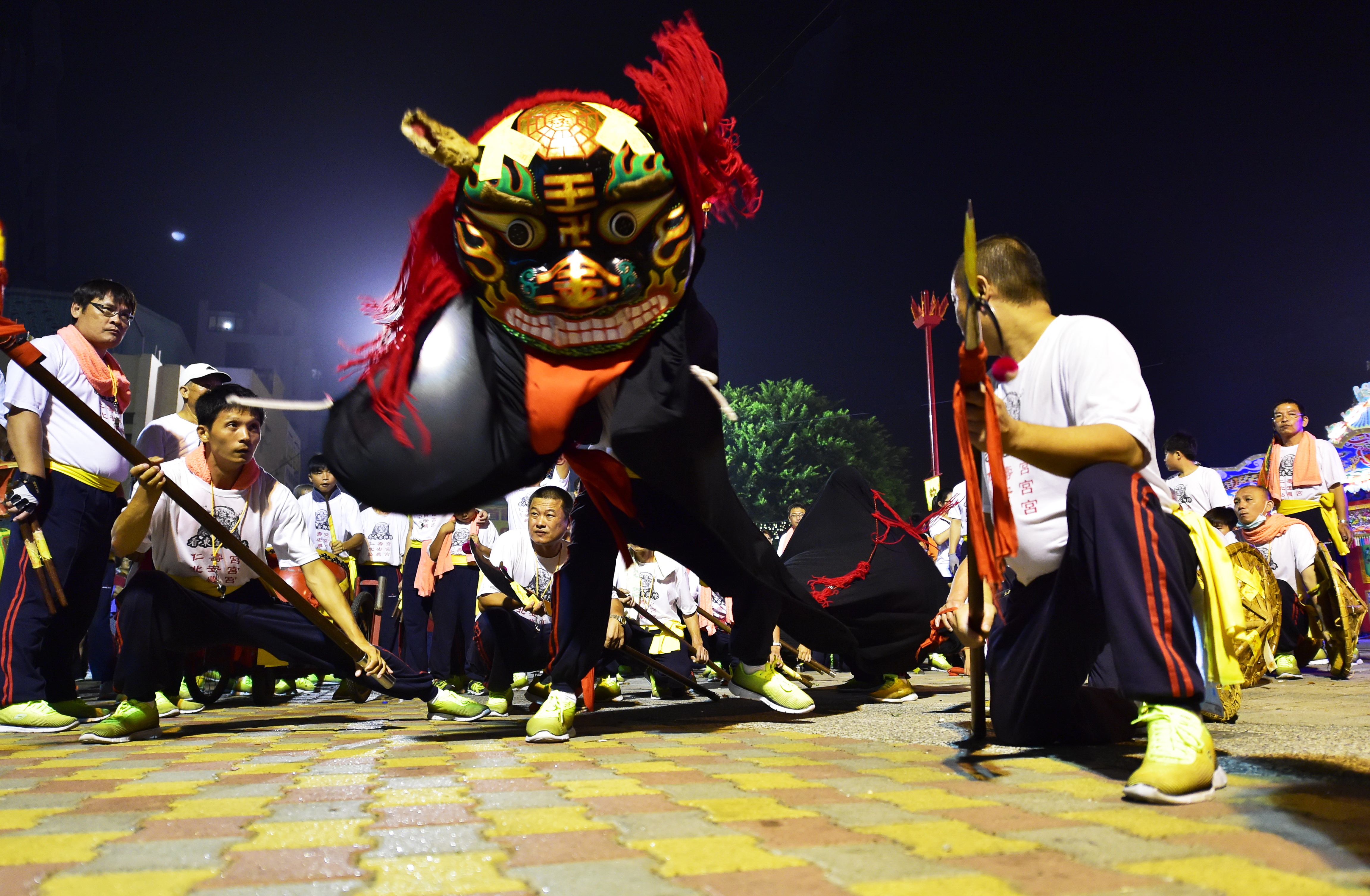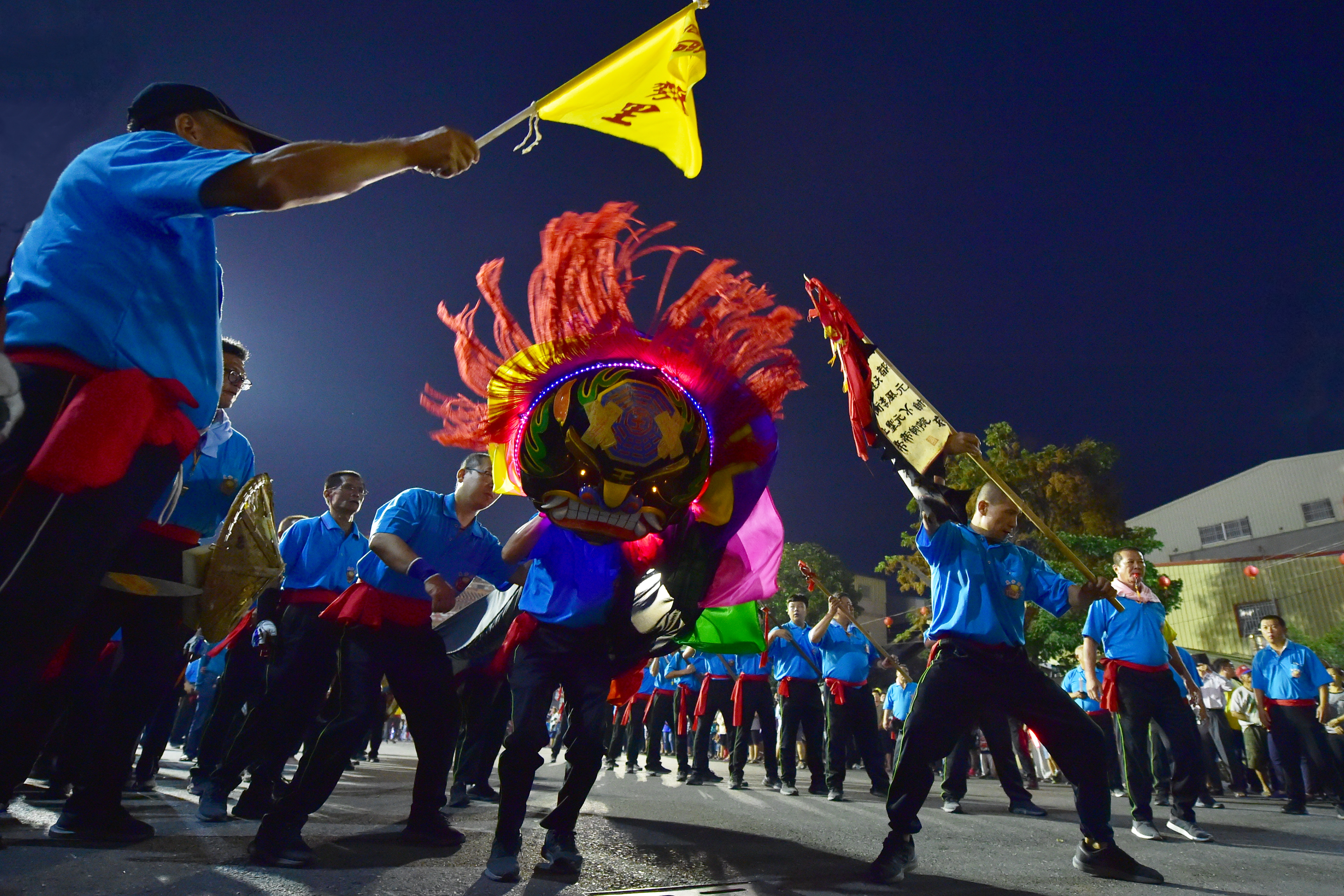 「架棚」係主辦廟境主神校閱所屬陣頭數月來的籌組情形與訓練成果之謂,通常於醮典前舉行,當天所屬角頭各自在廟前廣場自行找地方做整套的表演,如仁壽宮、大人廟均為如此,惟山西宮架棚係於王醮期間舉辦,採遊境的形式,由境內 10 里的陣頭前往新光里遊社。