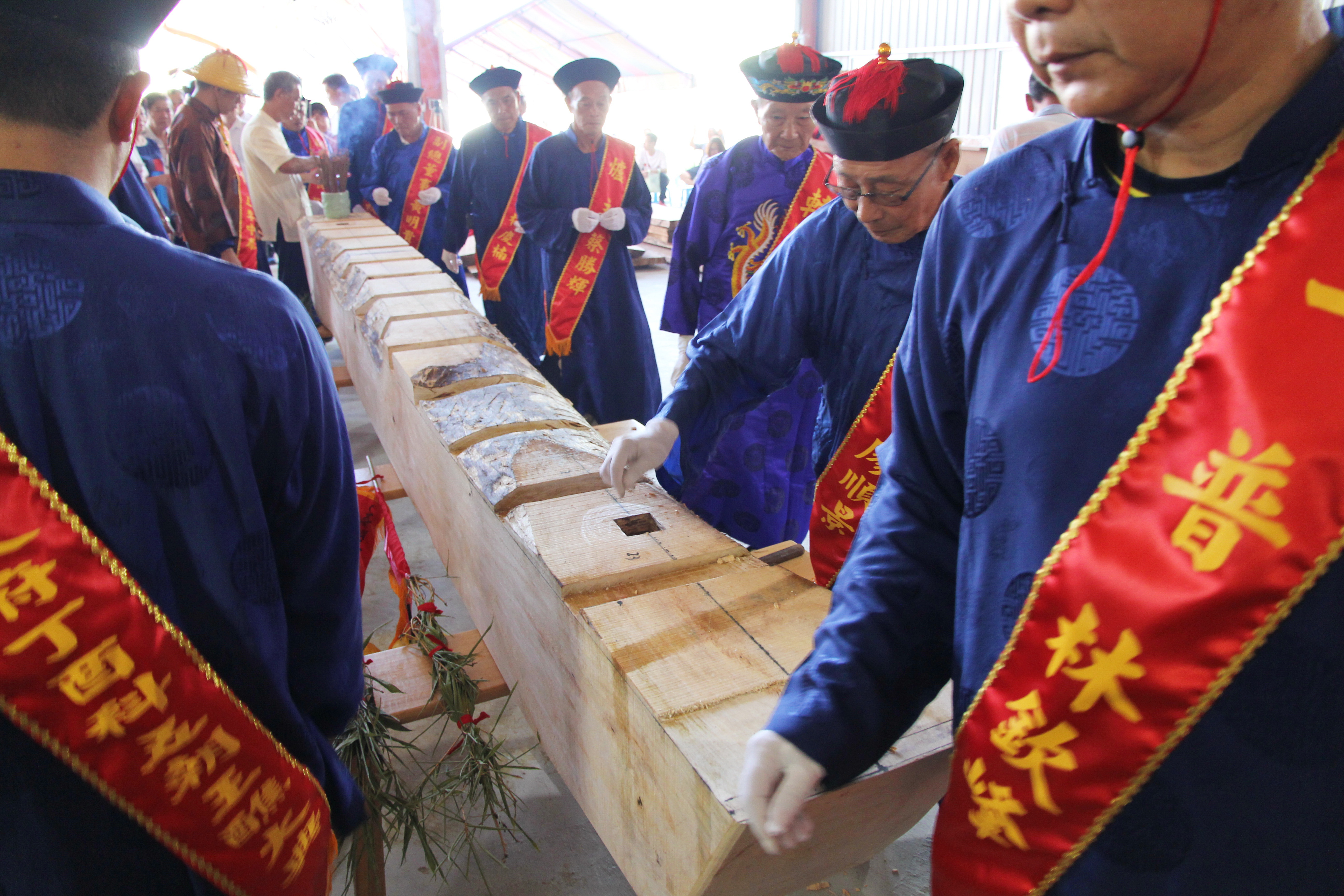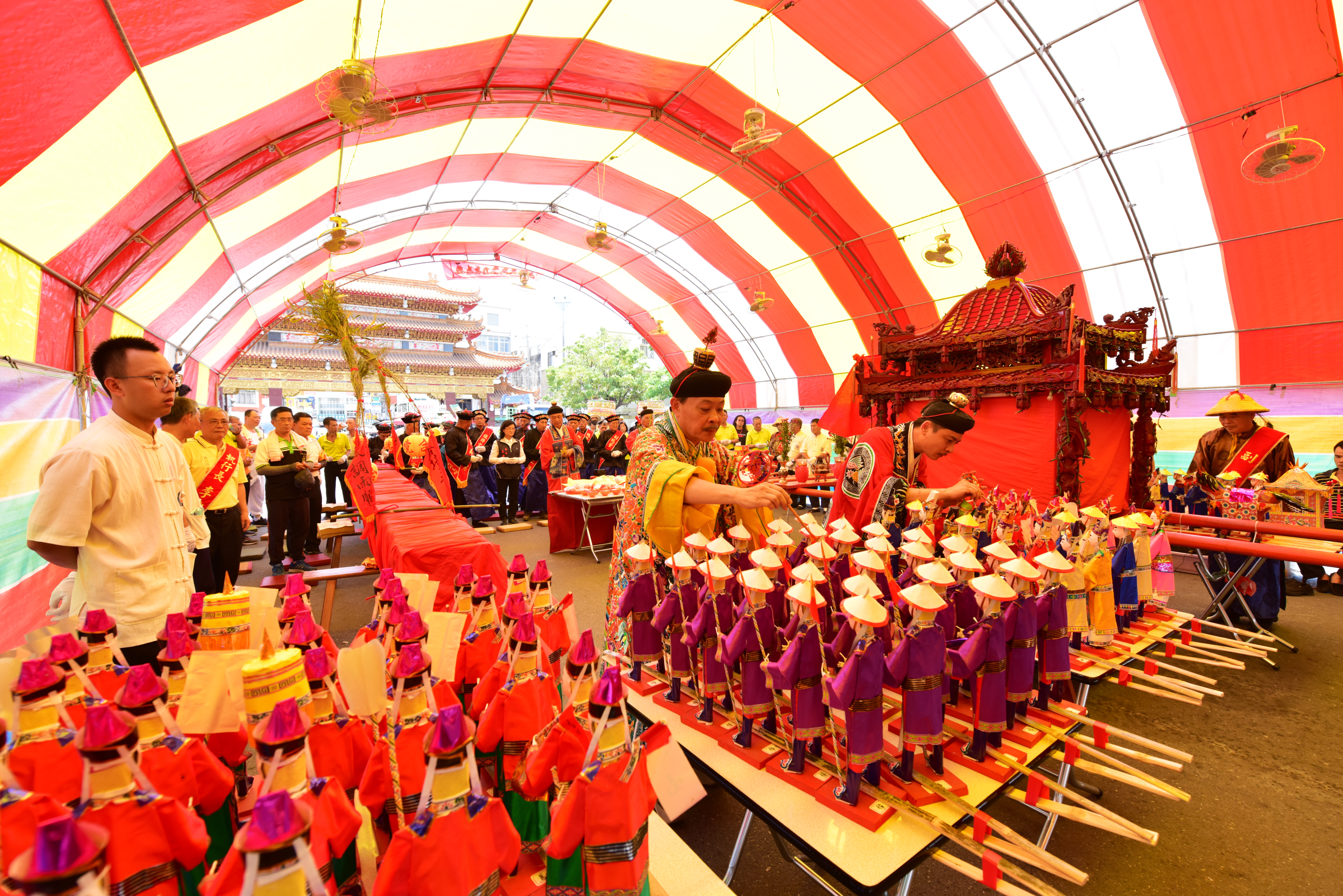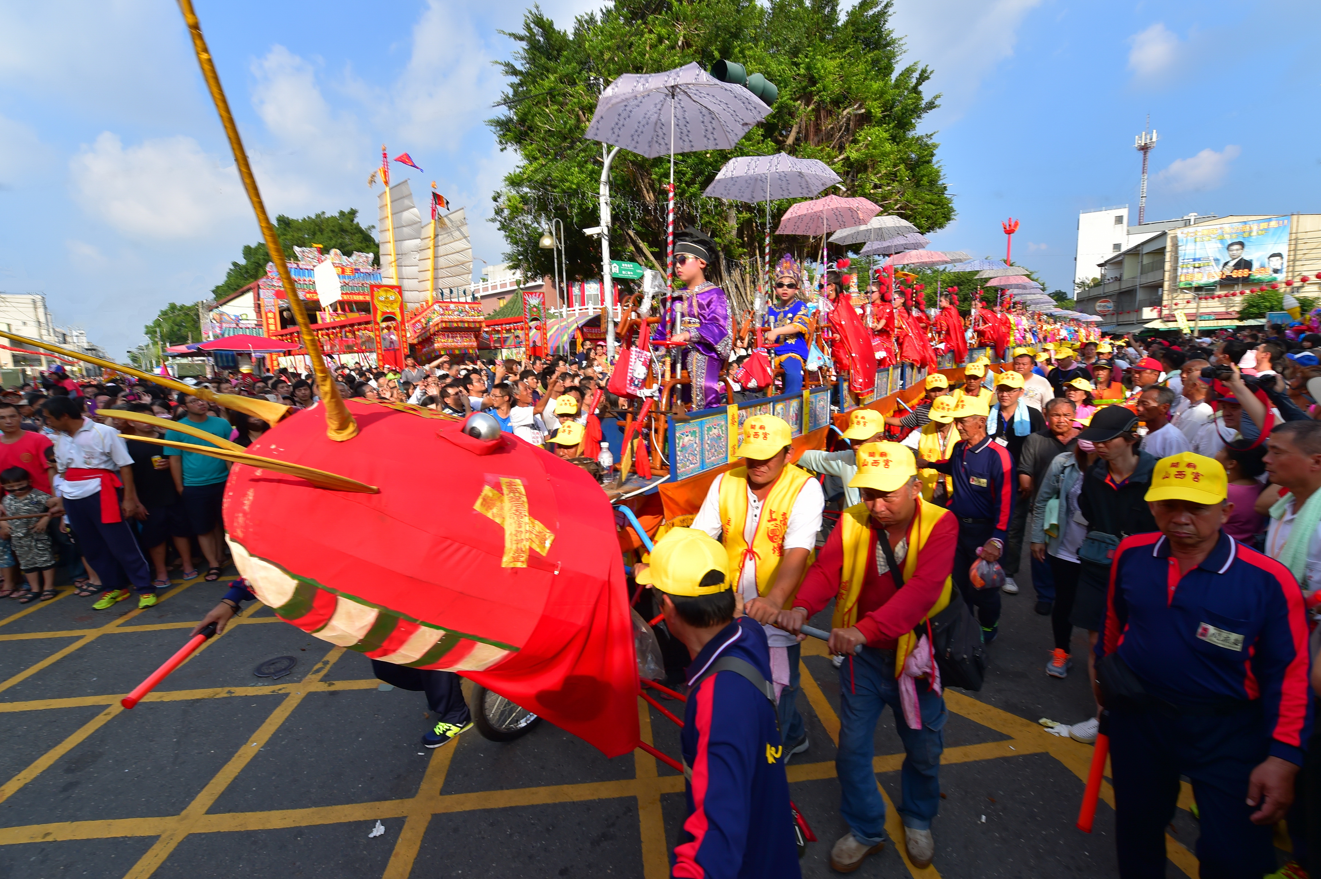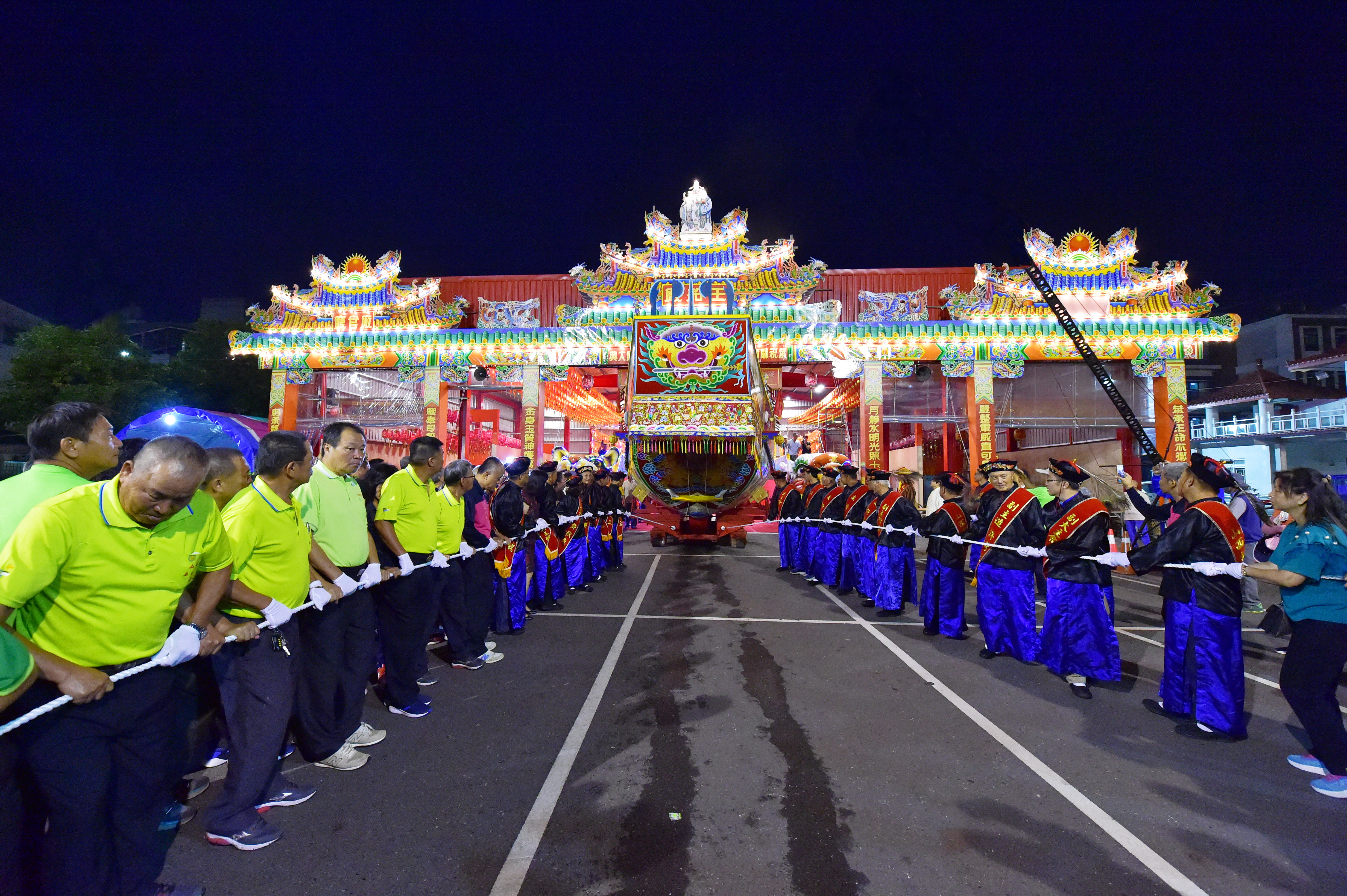 此為王船的下水典禮,主要儀程依序為:豎桅、升帆、開水路、拋碇。