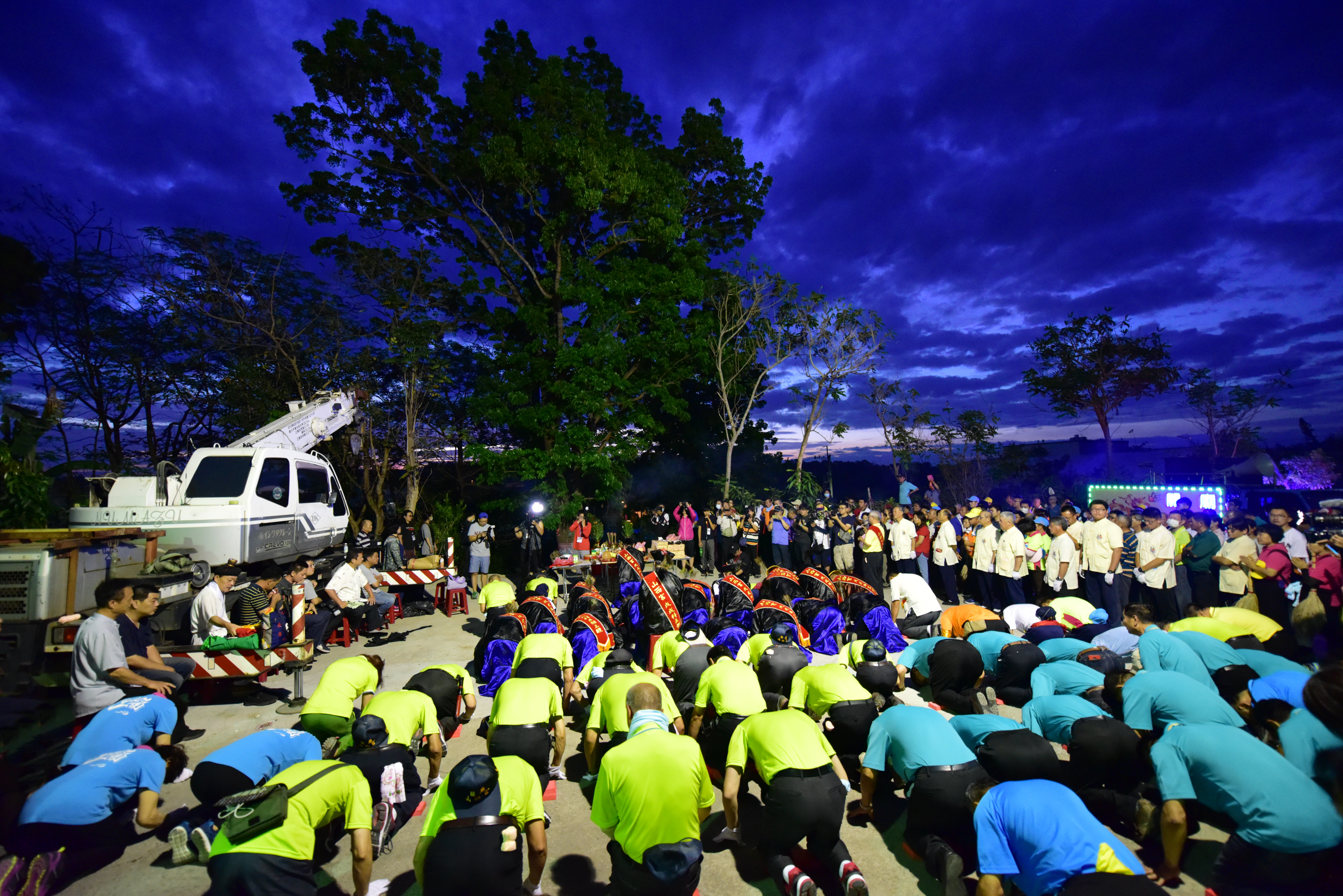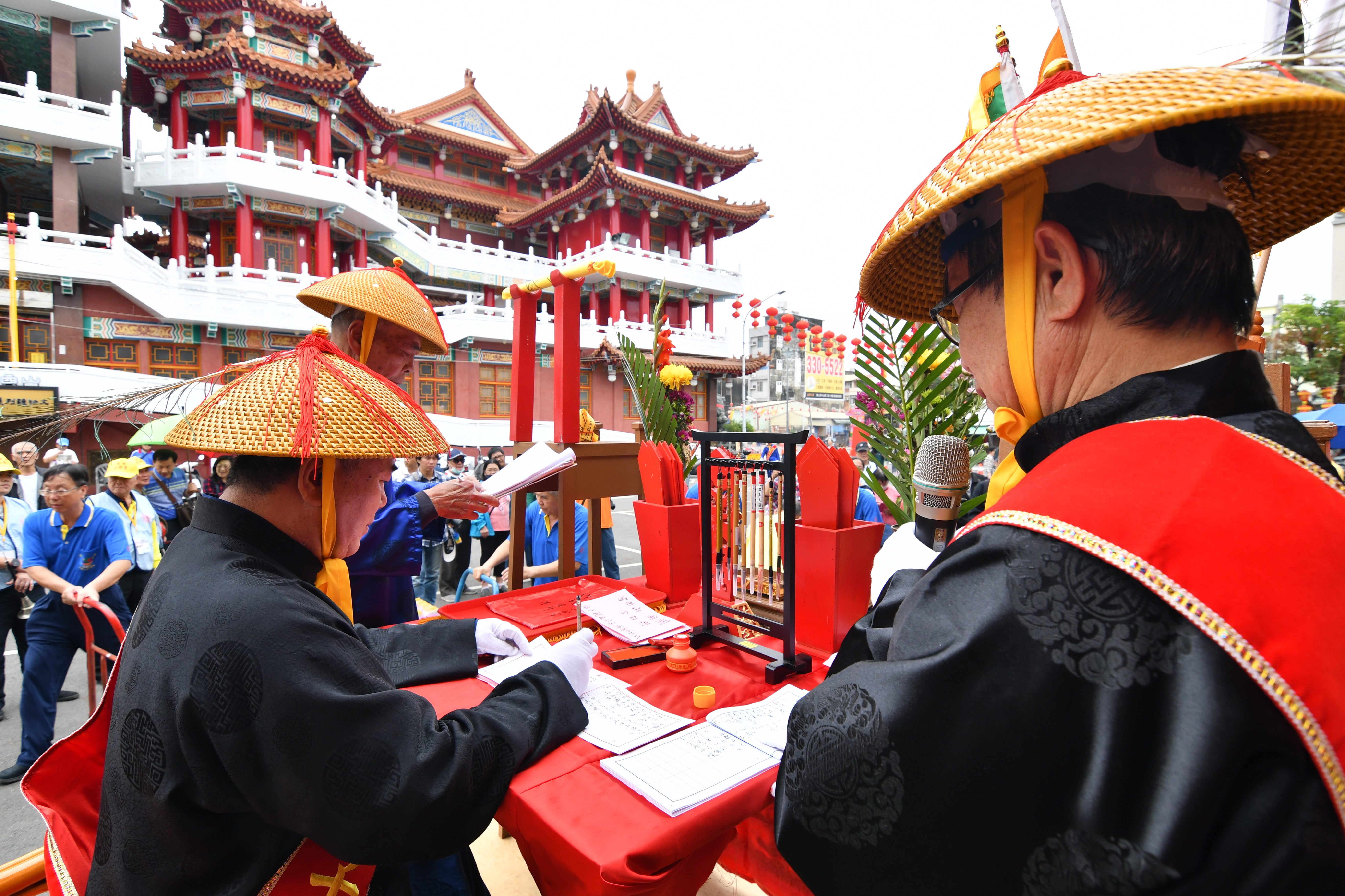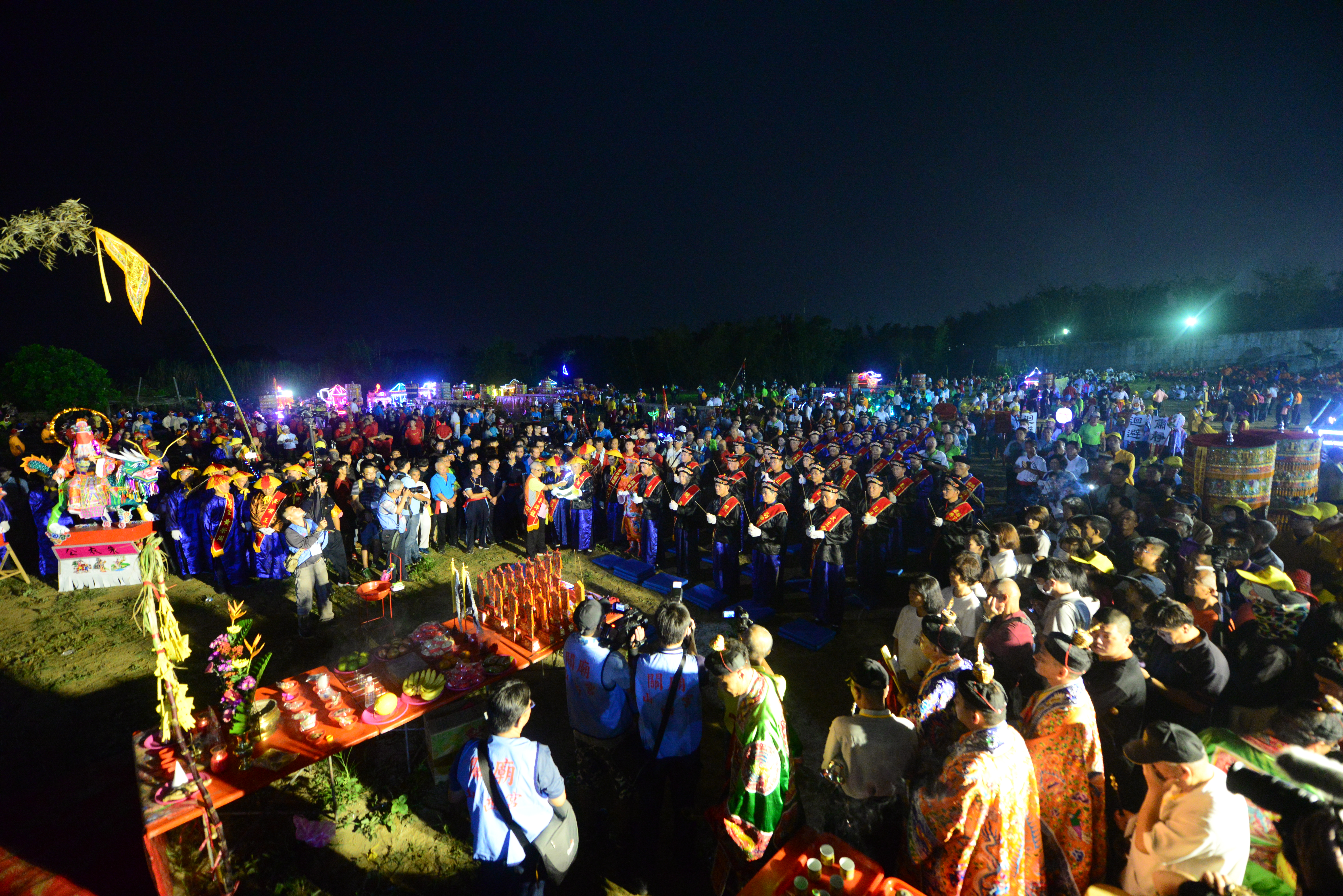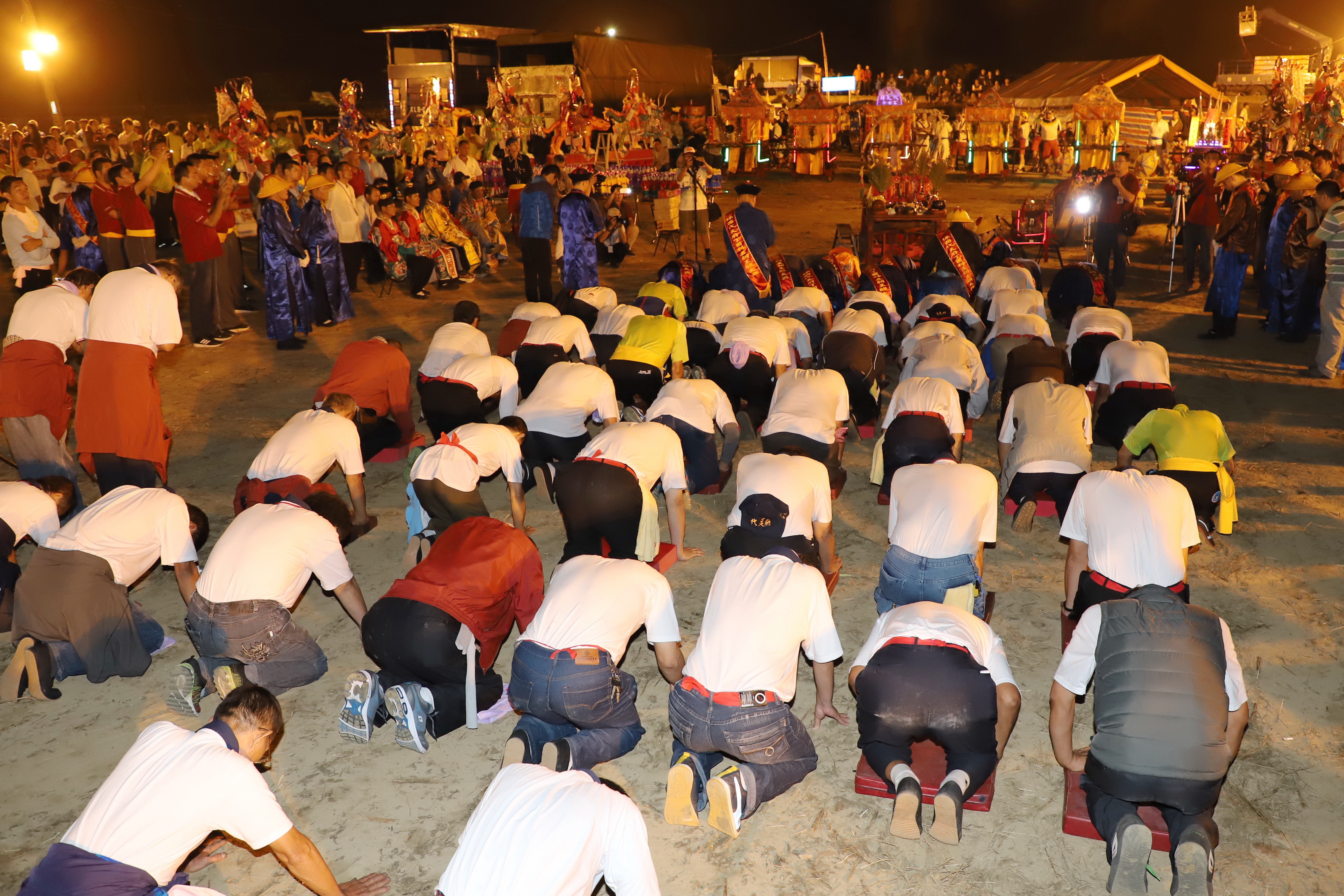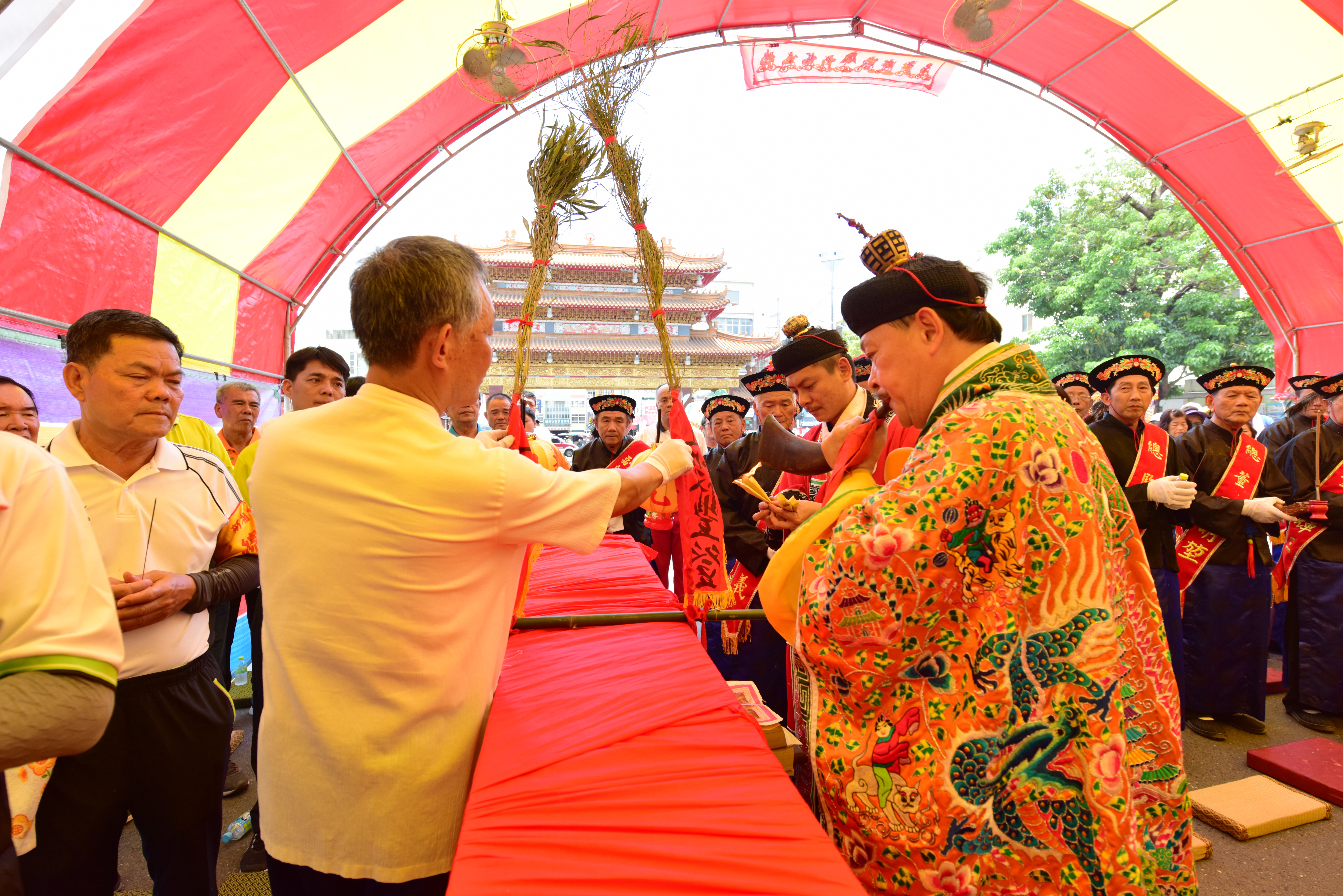 此為王船的下水典禮,主要儀程依序為:豎桅、升帆、開水路、拋碇。