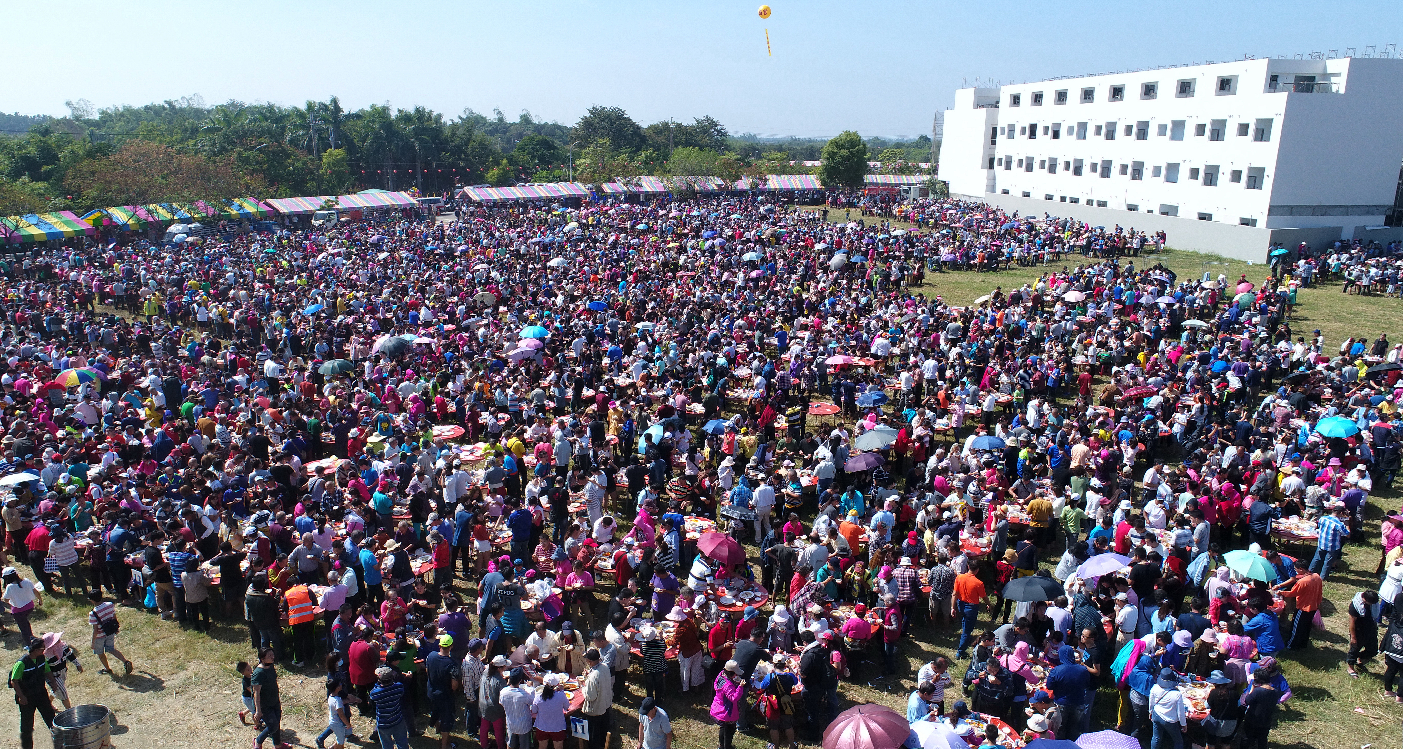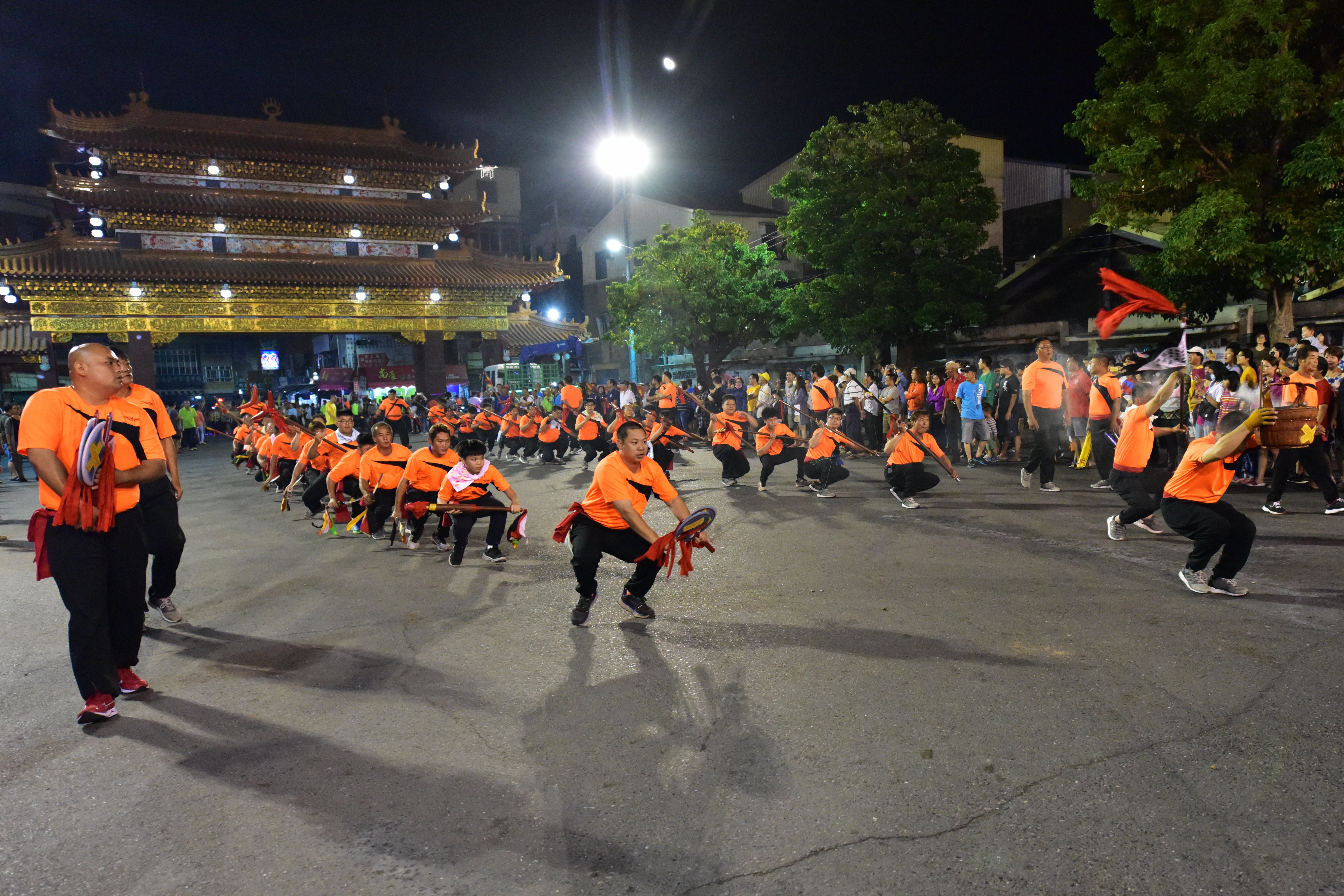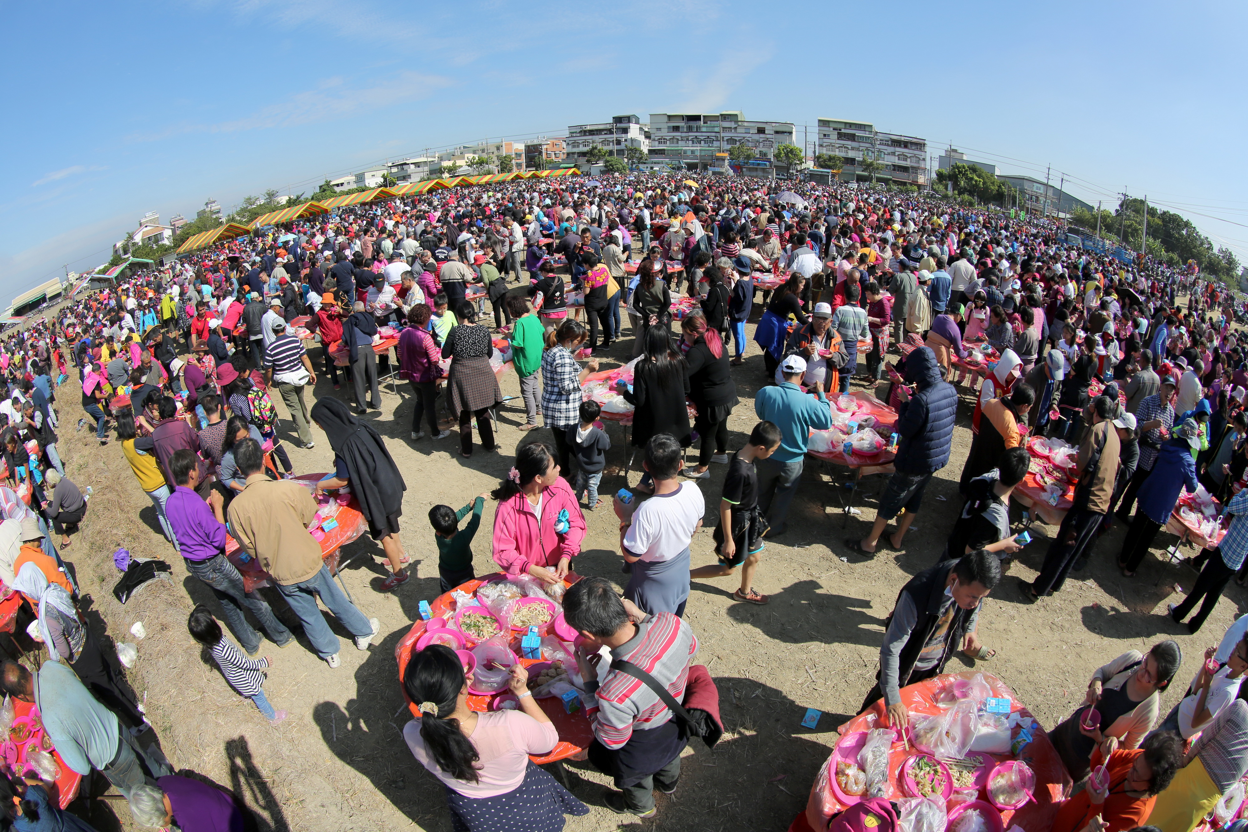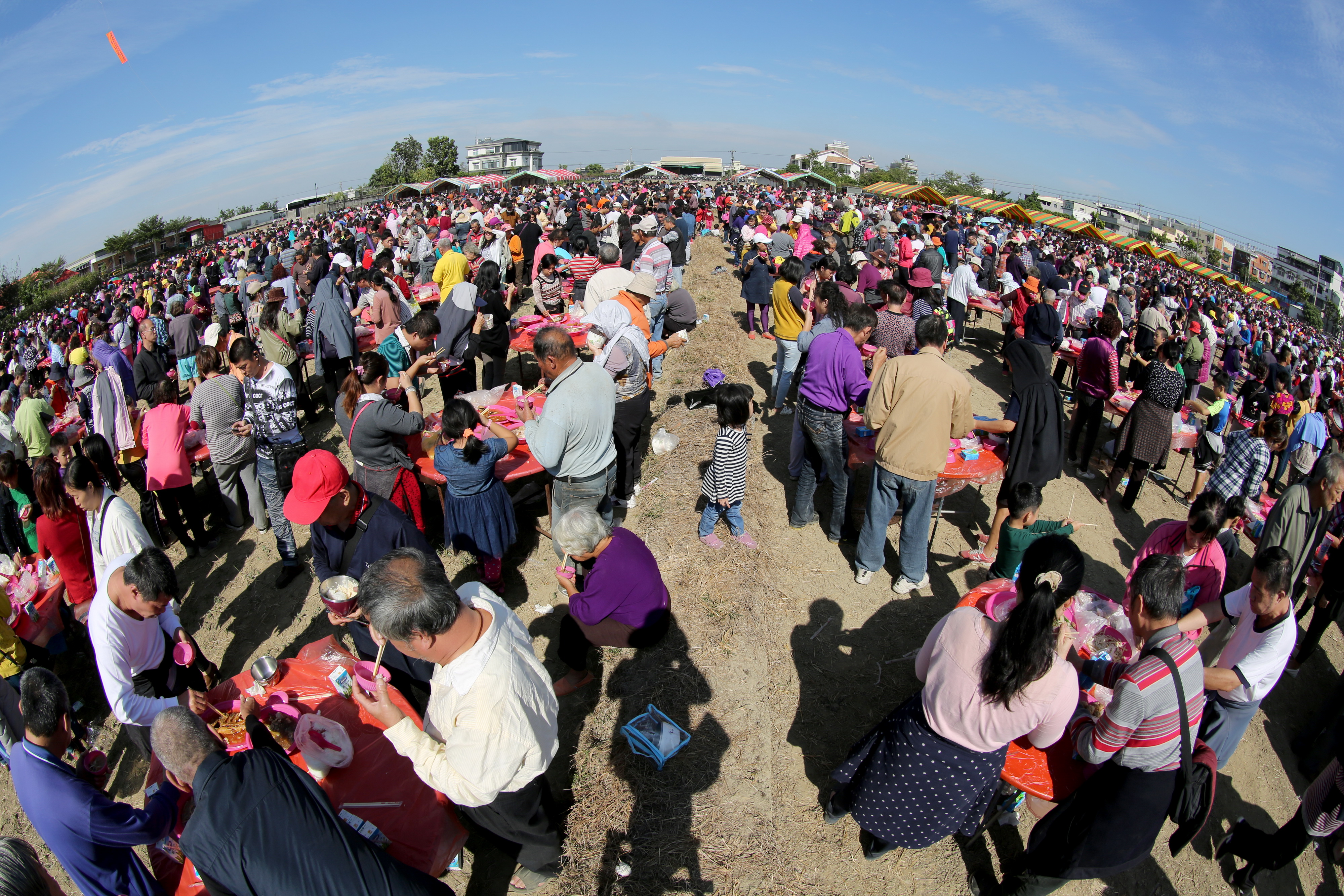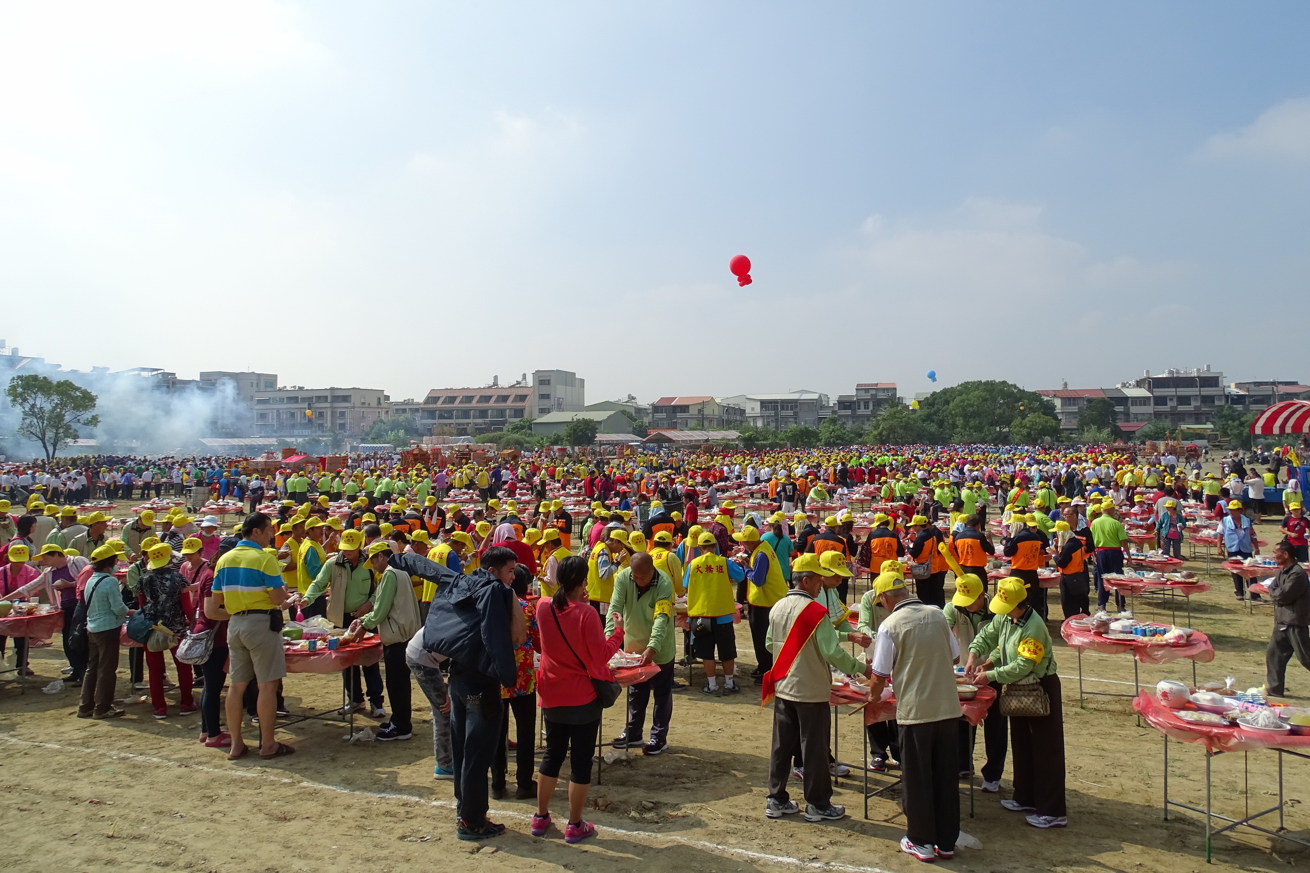 此為交陪境所有文武陣頭、神轎的遶境,三大廟各約有 40 陣,除了「三角交陪」(相放伴)之外,三大廟又各有其他交陪境,也都會前來共襄盛舉;與境內遶境一樣,陣頭逢香案、廟壇必行拜旗致意,主家或廟壇必以紅包禮致謝,故多見陣頭提籃或挑籃裝紅包之畫面。該日中午的用餐,採「食飯擔」方式辦理,分陣頭及神轎人員、一般香客等兩大區,前者約在上千桌,後者則動輒 5、6000桌,因人數太多,皆以站立(不排放椅子)「食中午」,5、6 萬人齊集一地一起用餐,場面驚人,蔚為奇俗。