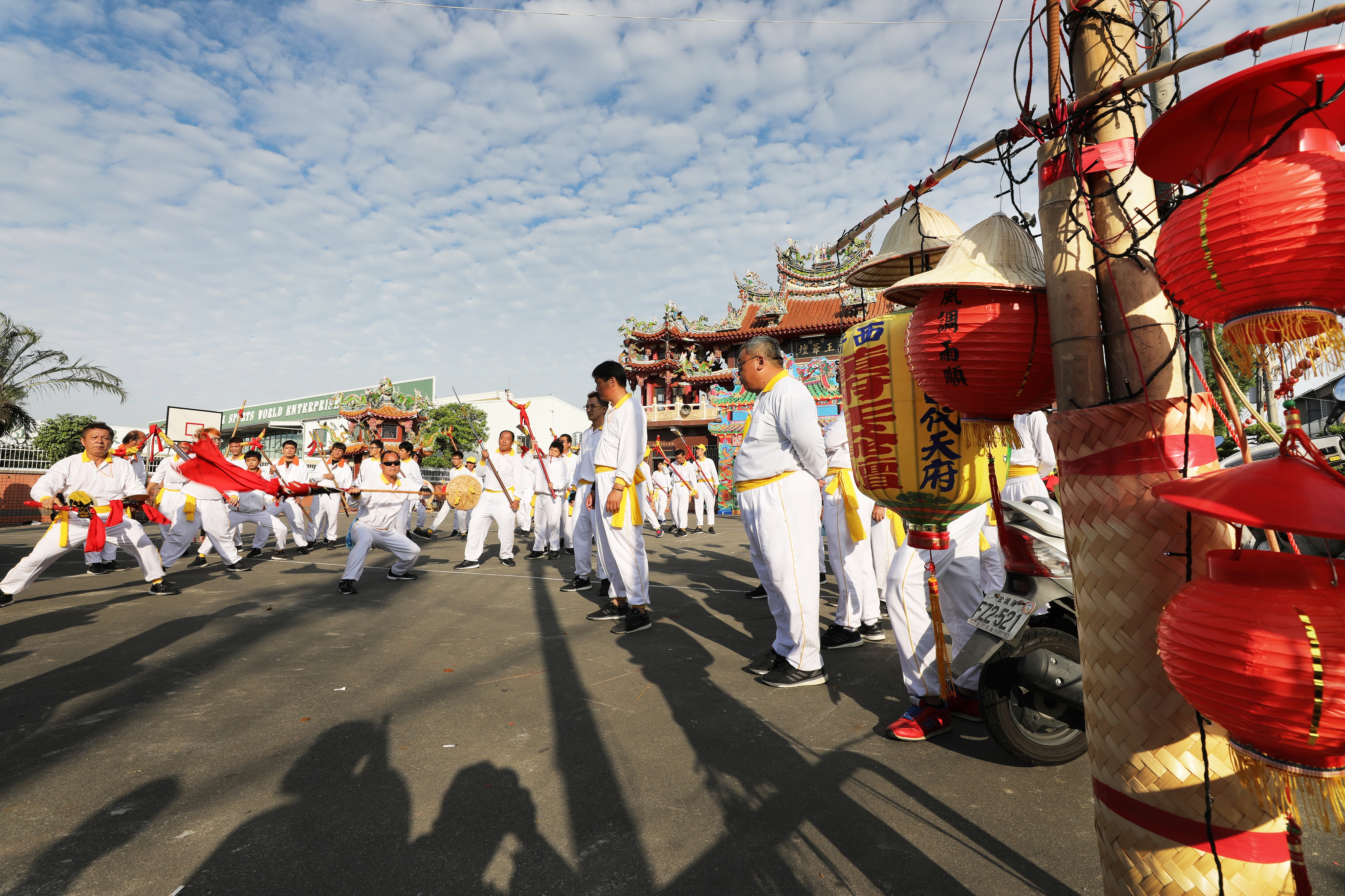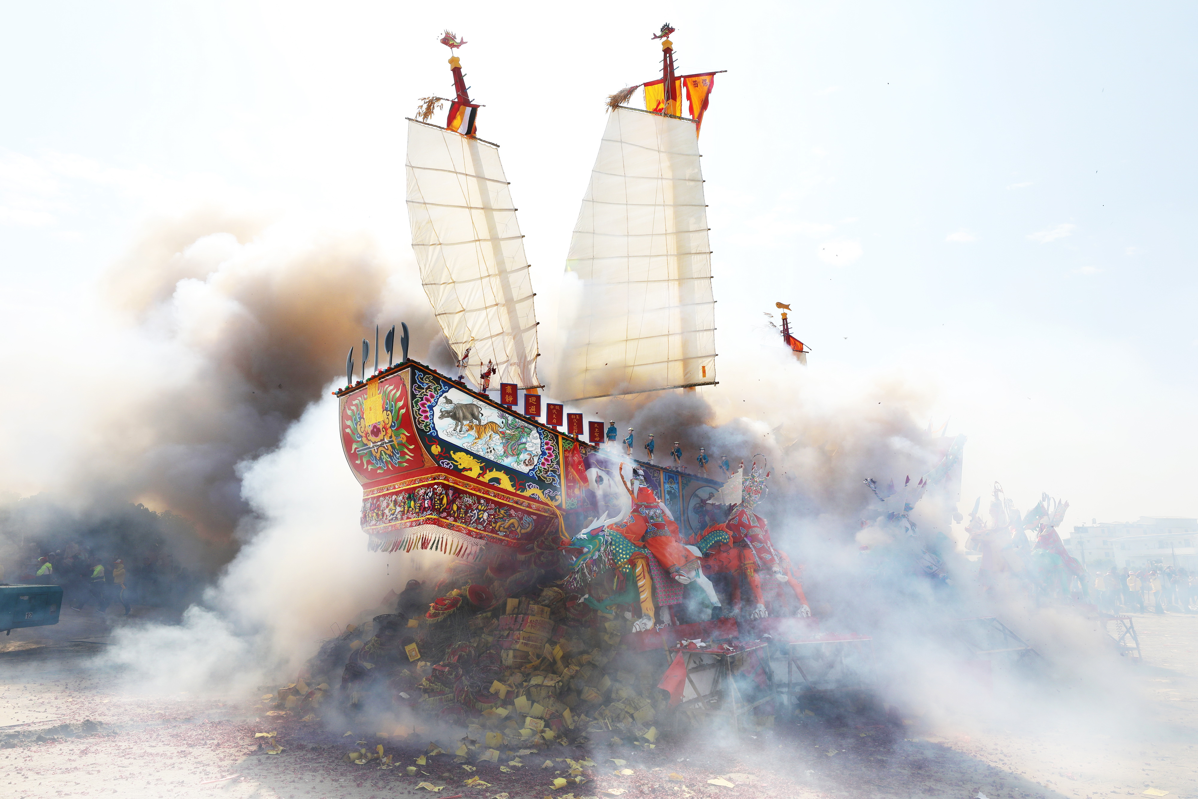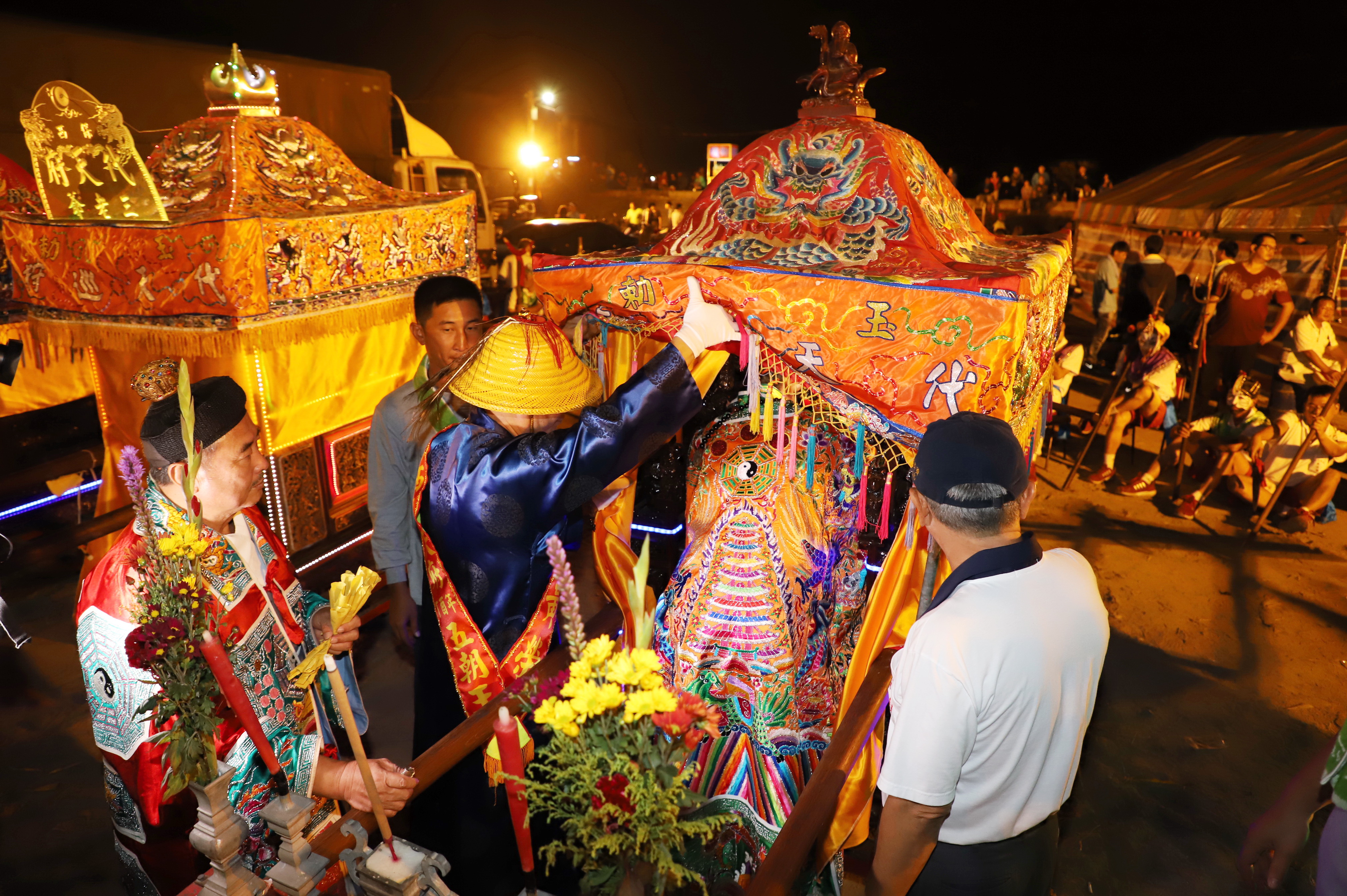 行豎桅豎起船桅,再「蓋帆」升起船帆,接續於王船四周潑水象徵為王船開水路,最後「拋碇」停泊以示等待啟航。