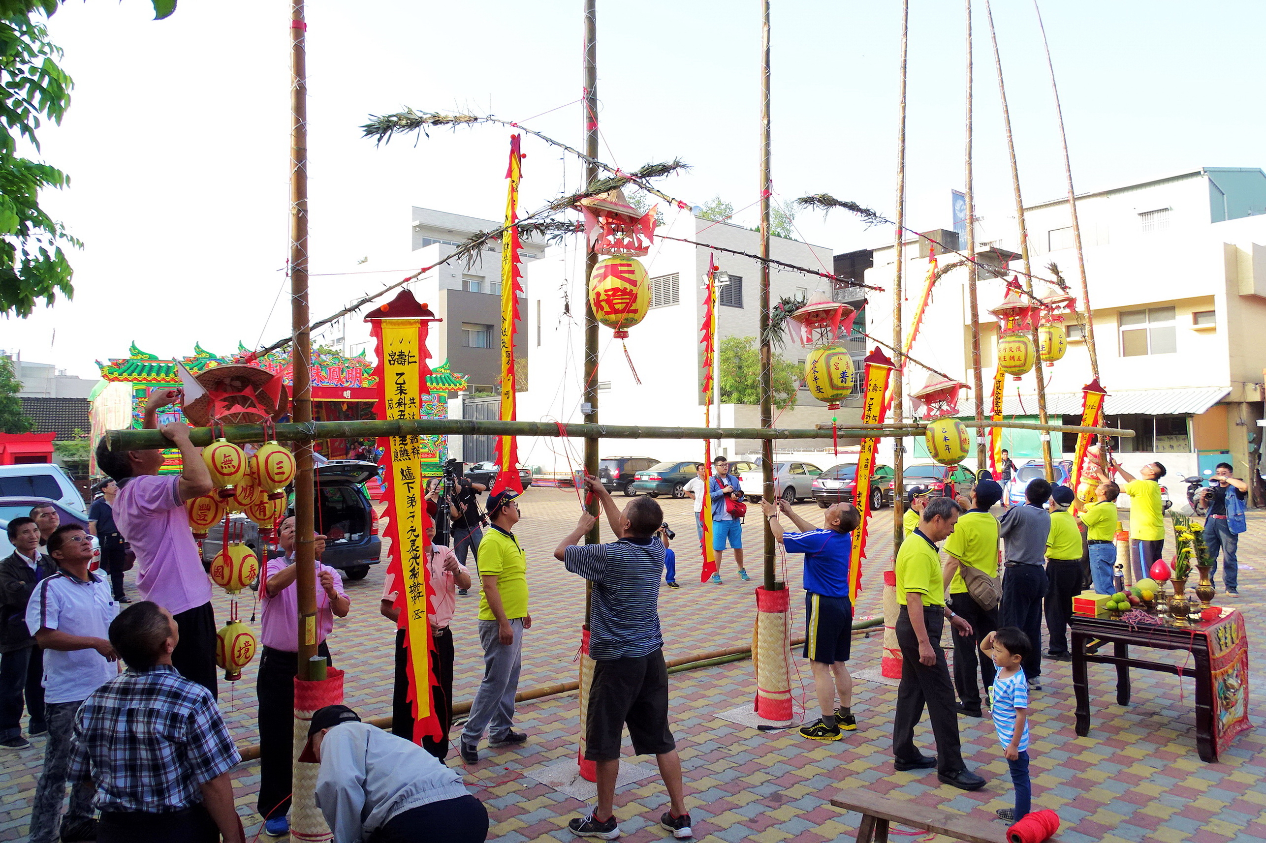 豎燈篙主要目的為昭告天地,有陰陽之分,陽篙乃恭請三界諸神蒞臨醮場證盟,陰篙則召請陰界鬼魂前來接受普施超拔,是醮典中重要器物,故以「平安軍」守護,燈篙腳則用竹蓆來包覆,以維其聖潔。除了大廟醮典燈篙之外,廟方執事人員、主會首、轅門官或旗牌官、戶民也都會豎燈篙,並有「遶燈篙」之俗,以 S 型的動線來回遶行三趟,過程中用手觸摸燈篙,藉此沾染神氣以保平安。