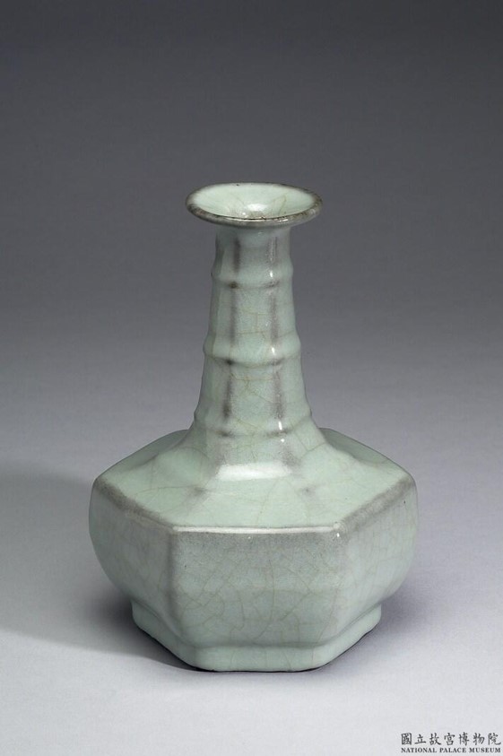 清 仿官釉青瓷六方弦紋瓶(中瓷1099)