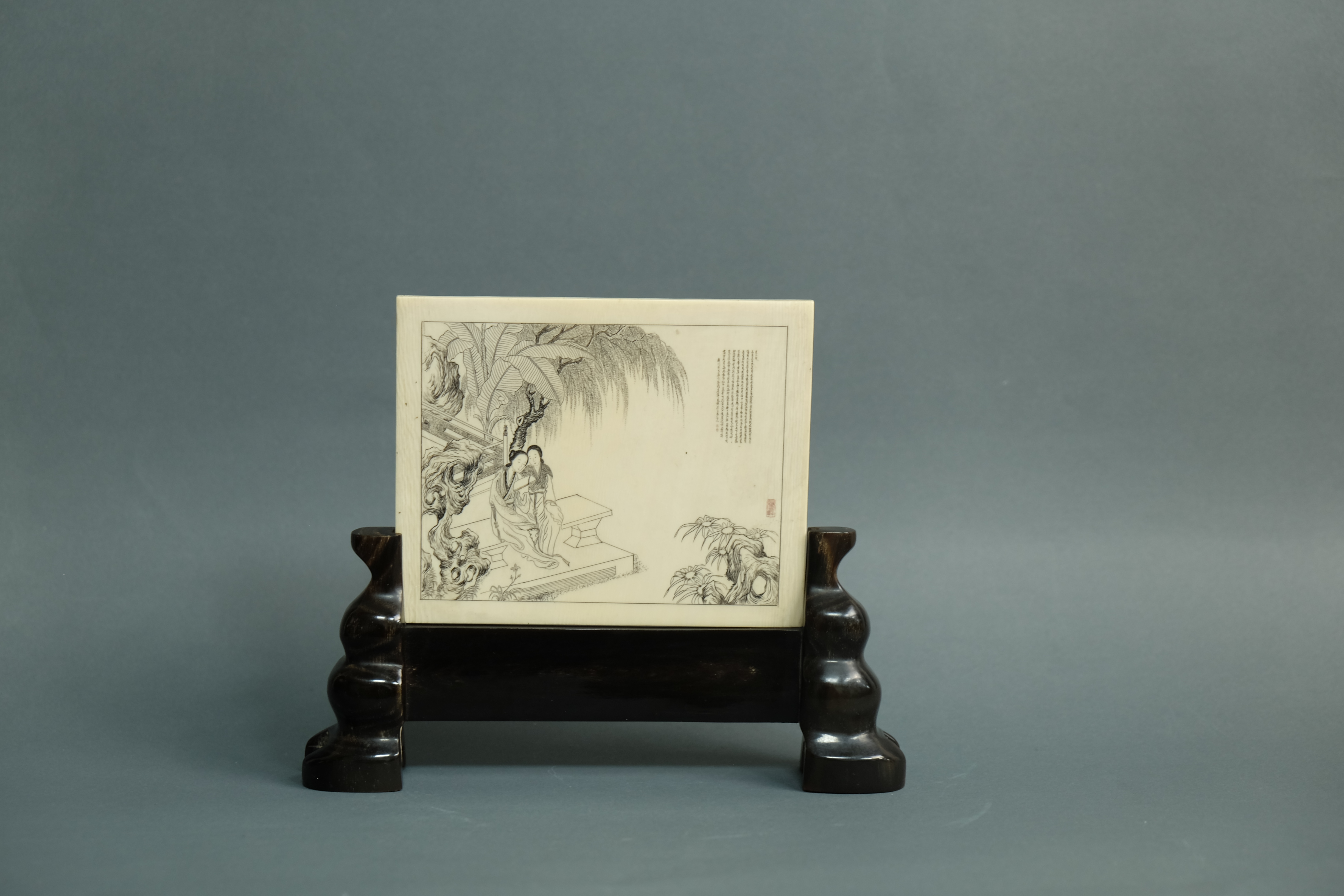象牙詩詞硯屏