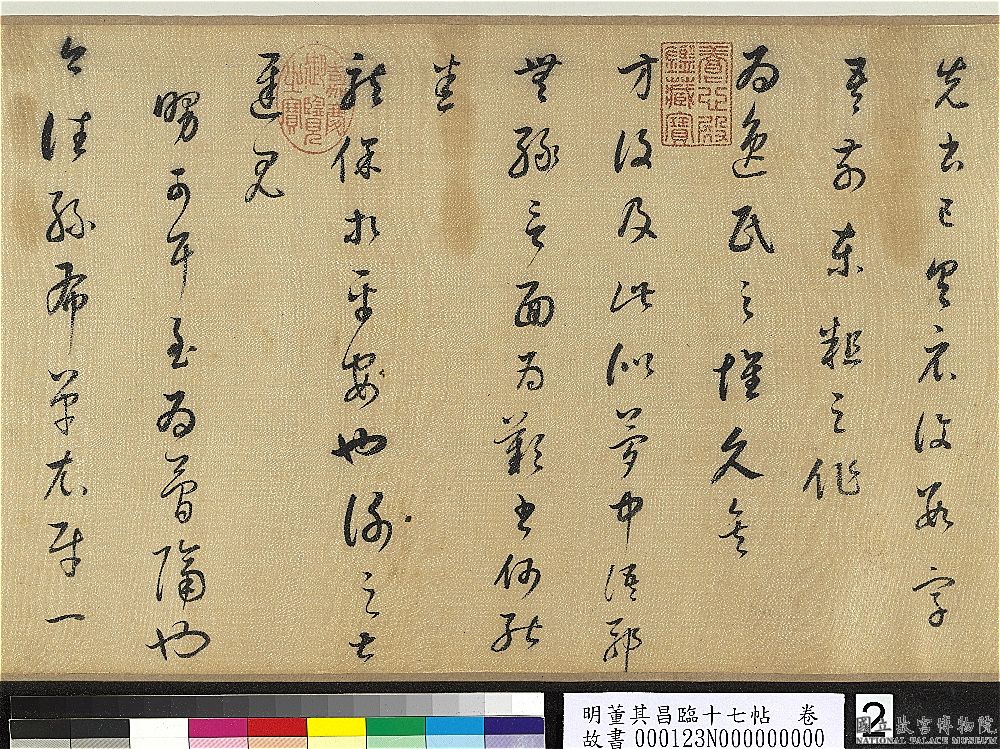 董其昌(1555-1636),字玄宰,號思白,江蘇華亭人。萬曆十七年(1589)進士,官至禮部尚書,諡文敏。 全篇通臨王羲之(303-361)書〈十七帖〉,內容完整,傳世僅見;卷後題跋敘說當時揮毫的環境和緣由,連帶譜寫出與餘清齋主人吳廷(1549後-1635前)的一段翰墨情誼。 本卷雖未署年款,然應為《餘清齋法帖》彙刻〈十七帖〉臨本,時間在萬曆二十四年(1596)之後,可據以理解明代末期魏道輔本〈十七帖〉流行的時代背景,以及董其昌臨古與考據並重的書學態度。