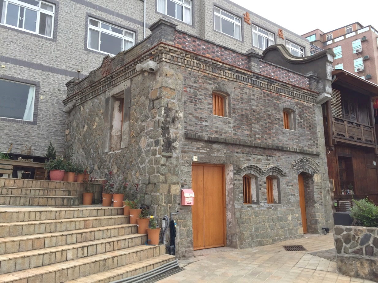 地上兩層,側面與背面開門,正面以磚砌並有圓拱形門楣與窗楣。