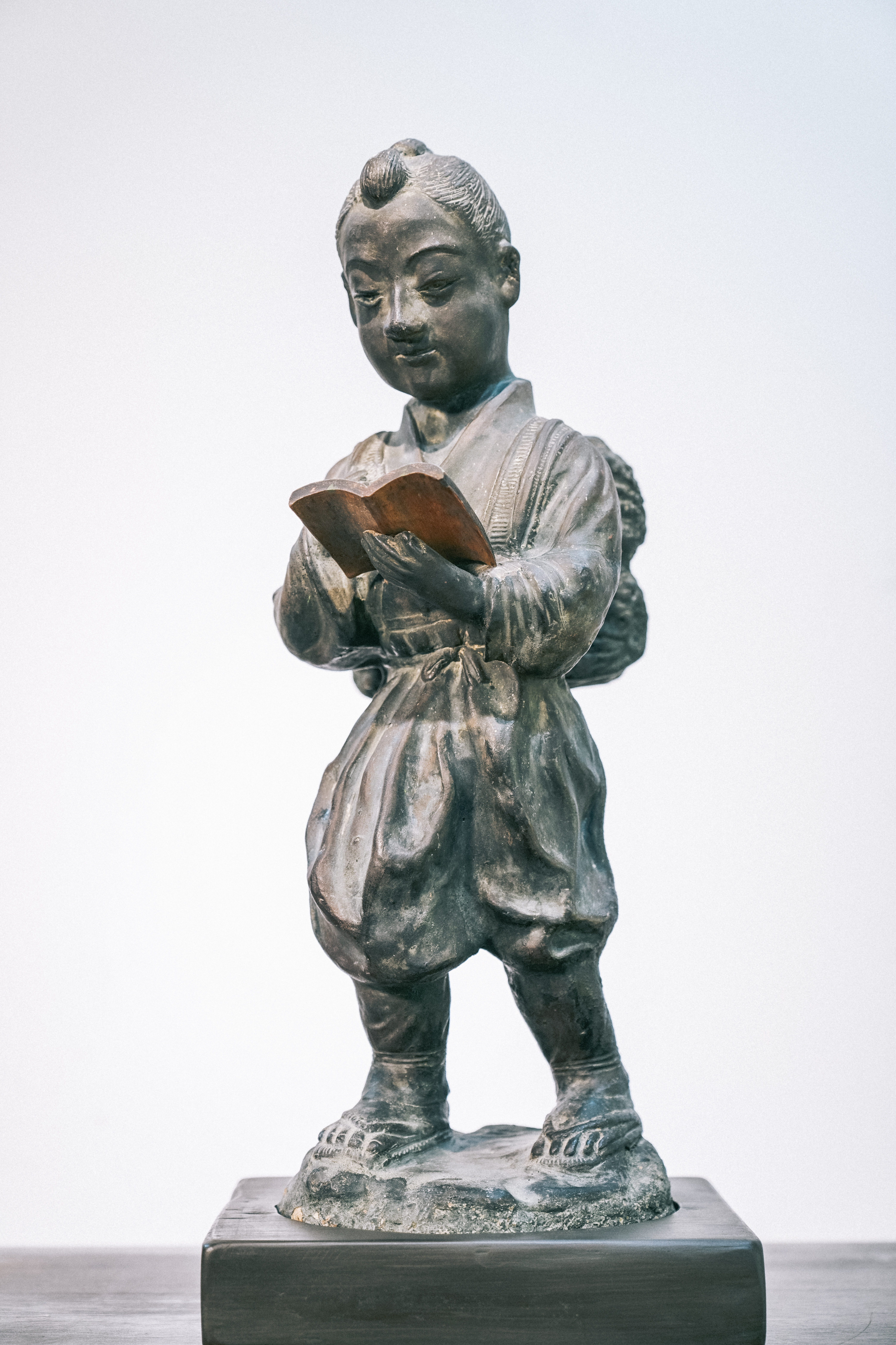 此尊「二宮尊德」塑像製作年代在日治末期昭和年間,由出身本縣之南投陶大師劉樹枝所製作。二宮尊德(1787-1856),又稱二宮金次郎,日本江戶時代後期的農政家及思想家。尊德據說小時候是出身寒微人家的子弟,平時要撿材補貼家用,所以一面撿材一面苦讀,後來做到大官。尊德被日本人認為是幼年刻苦勤學的代表,為了鼓勵小孩子認真讀書,所以以他為榜樣,封為二宮尊德。本件立像兼採模型及手工雕塑,工法細膩、精巧、傳神,充份呈現求知若渴,孜孜學習的精神,具有藝術性價值。