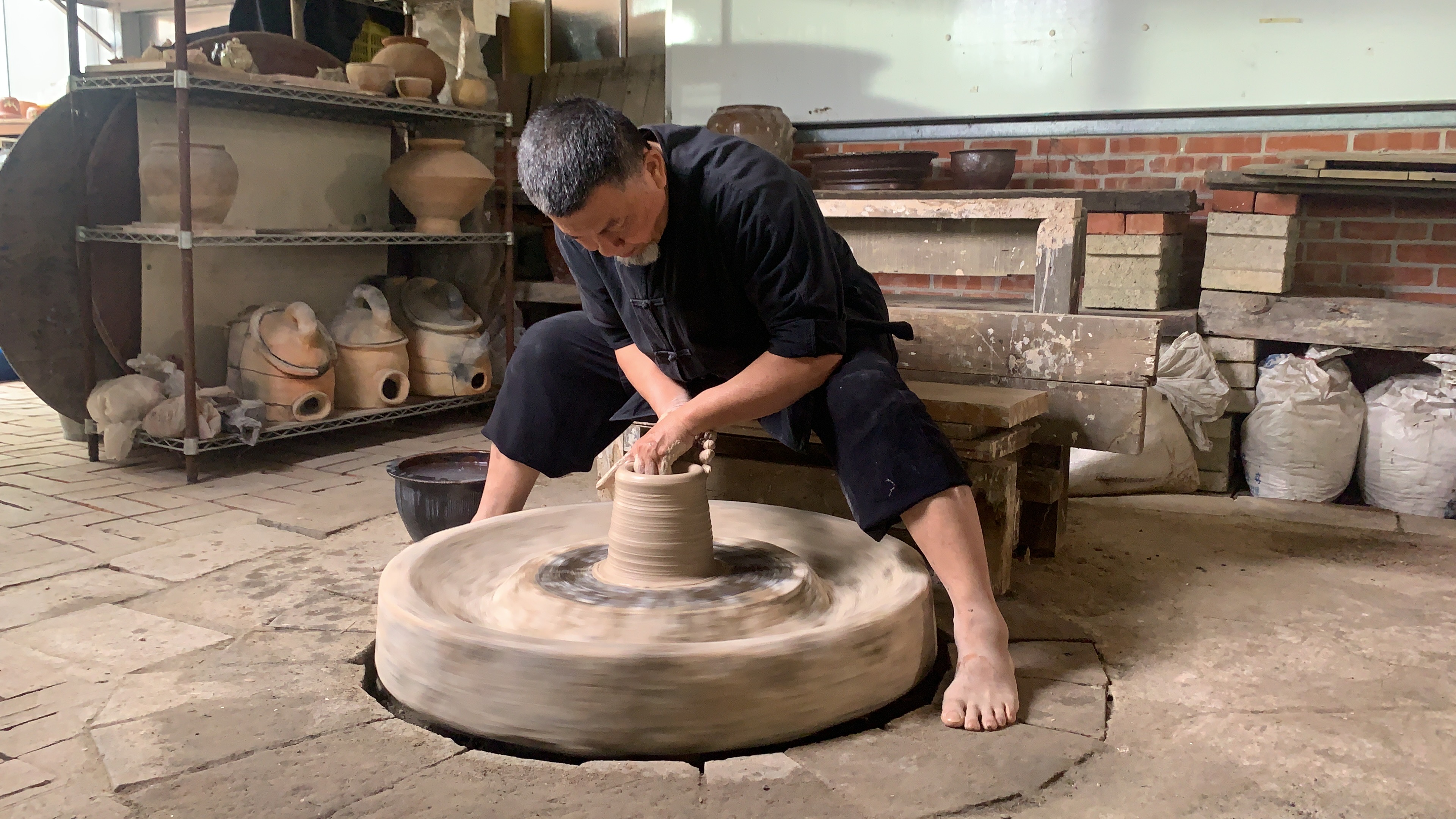 源自中國,由福州師引進台灣,林添福老陶師是台灣第一代承襲此類技藝者。竹南蛇窯第二代窯主林瑞華薪傳父親林添福陶詩藝技,珍惜前人的智慧,保留此傳統腳踢轆轤拉坏抓栓技藝,擔起承先啟後之責使這項傳統文化的技藝得以延續流傳。