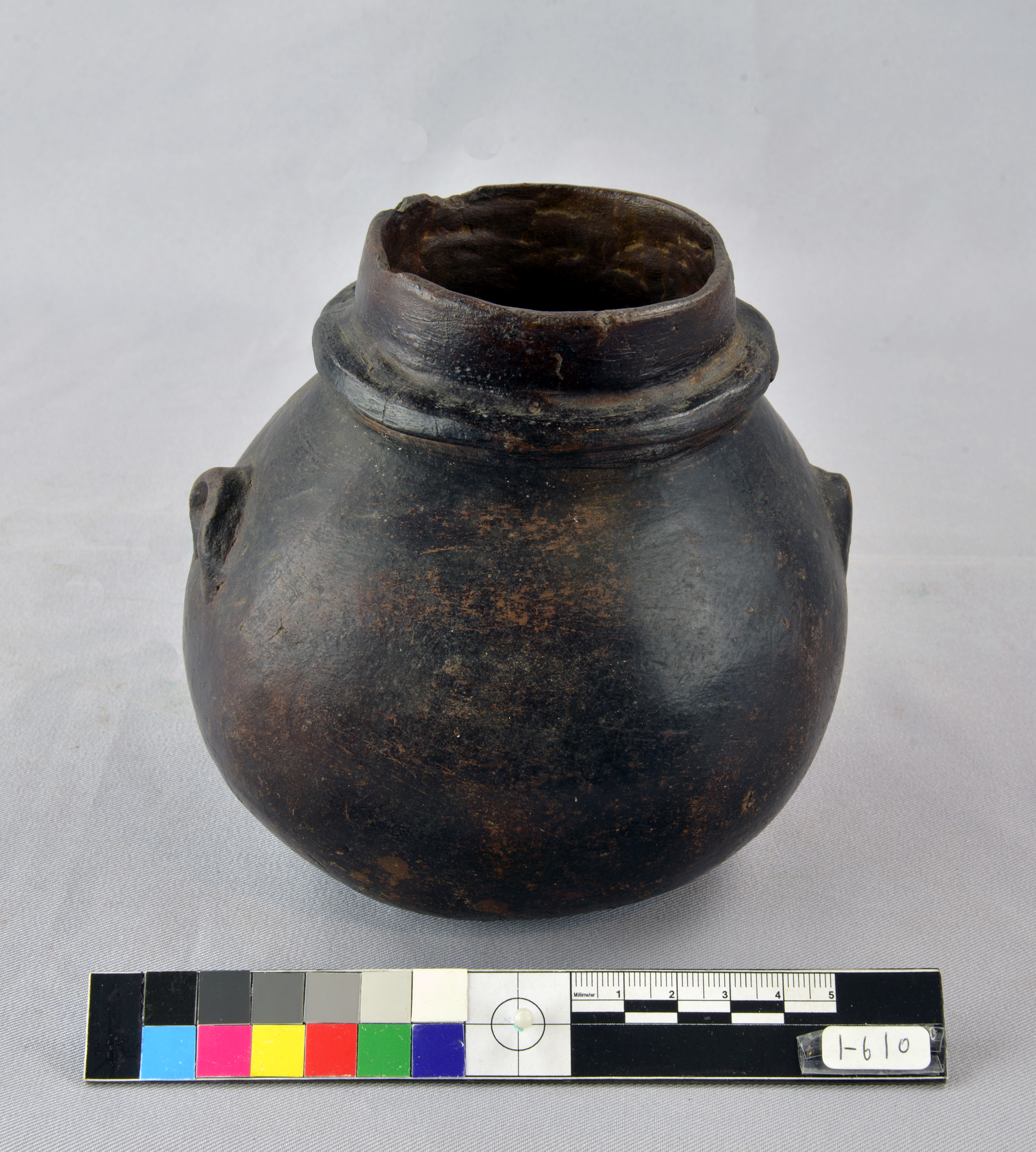 文物普查編號0612臺東縣文化處所藏阿美族陶器,舊稱為「陶甕」,但考慮相同類型陶器名稱與尺寸,應改稱「阿美族陶罐」為宜。全器口徑7.2 cm、頸徑9 cm、腹徑13.7 cm、器高13.9 cm,重量595g。本件器形特徵為:直口,口緣有二處缺口,頸部有橫帶泥條貼塑所構成之凸脊,肩部至器腹中段可見兩個對稱「倒U形」泥條貼塑,器腹圓扁,圜底,全器呈現黑褐色,類似皮革質感光澤。本件陶罐口沿內側佈滿手指按壓之印痕,顯示陶器經手工捏塑法製成,為臺灣原住民族常用的製陶工藝。其頸部與腹部之泥條貼塑,則具有阿美族代表性的紋飾特徵。