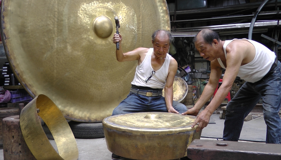 大鑼臍銅鑼為臺灣漢人傳統戲曲音樂展演具有代表性的樂器,也是本地北管陣頭掃街演出的重要行頭象徵符號。 傳承自鐵鑼至銅鑼的製作過程,並且精益求精,可以因應不同表演單位的需求,與時俱進。