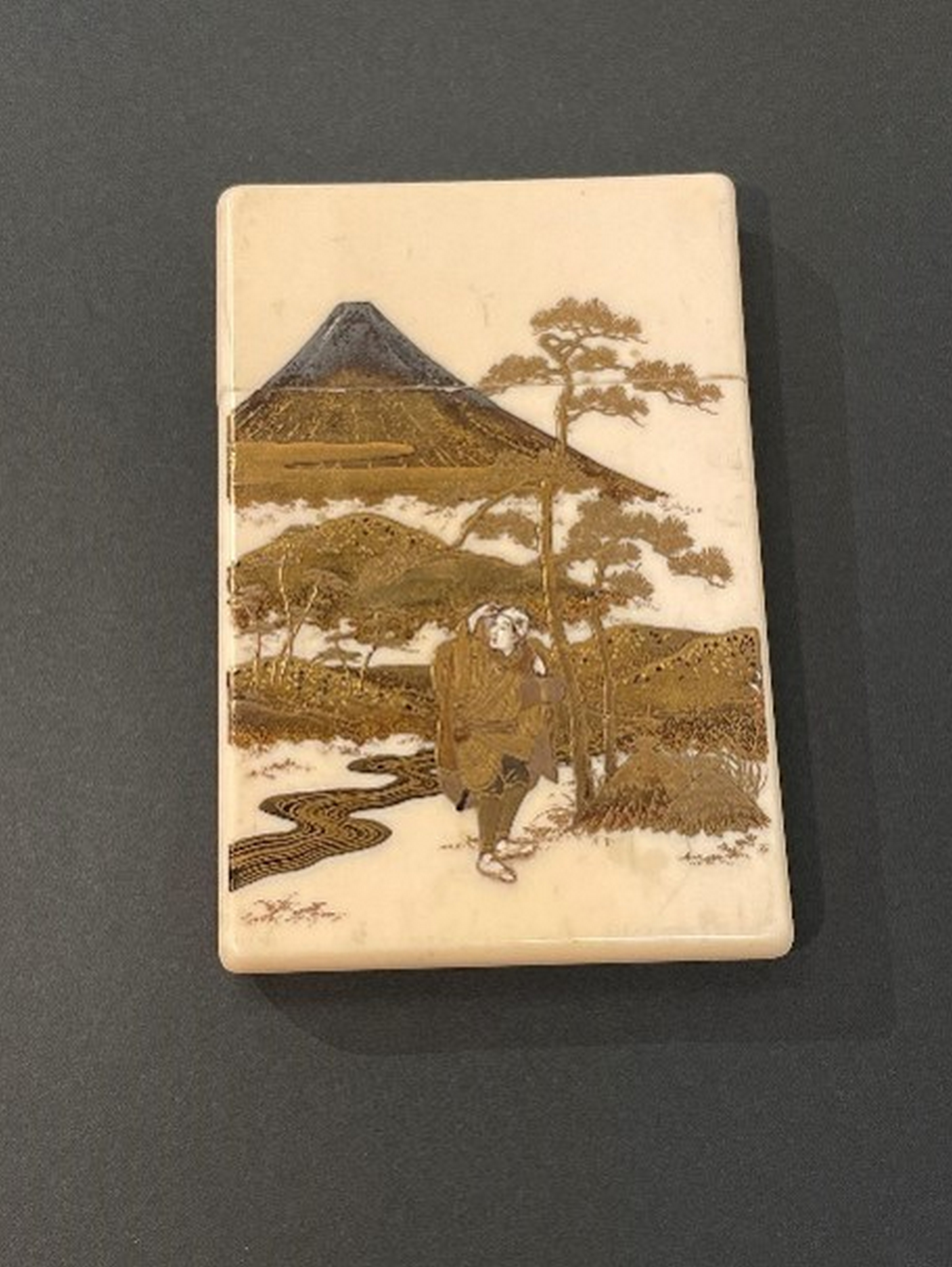 本件名片盒以牙為材,整體造型規整,打磨細潤,表面以高蒔繪技法妝點紋飾,富有立體層次感。