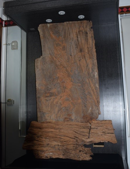 本物件原為枋寮鄉水底寮村民洪正義先生家中,一度被當成古井蓋使用,當時枋寮鄉辦理文物採集相關活動,當時洪正義先生便將此物件木雕壁板捐贈給「枋寮生活文化促進會」,時至2002年,再經該會的楊三二先生及其專業文化人士鑑定後,推判此木雕板應為南排灣族頭目家族所用,於是透過時任獅子鄉民代表會主席李冀香女士引薦,同年12月獅子鄉公所以隆重傳統古禮儀式,將此件百年木雕迎回獅子鄉文物館,讓此件木雕得以重現獅子鄉;更成為本鄉重要文化資產及文物館「鎮館之寶」