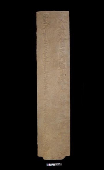 長145cm、寬33cm、厚6.5cm〜9cm,底部梯形榫接結 構上寬23cm、下窄19.5cm、高4cm。