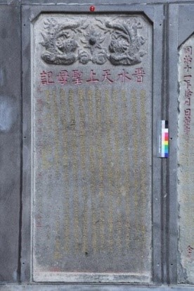 1.古物保存位置 2.保存狀況 「屏東市慈鳳宮晉水天上聖母記碑」目前存放於屏東市聖帝廟慈鳳宮,碑面有劣化現象。