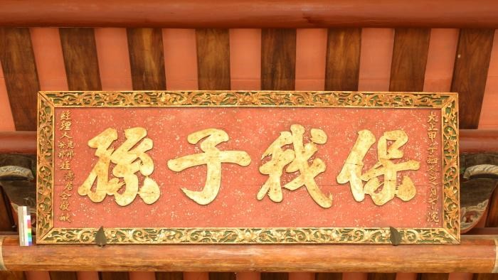 呂氏族人在乾隆末年共同出資購置田產並創建「著存堂」,及至日治時期,大正8年(1919)呂姓族人再次集資重建祖堂。擔任「祭祀公業呂萬春」經理人的呂建邦、呂安邦及呂傳居主導完成重建工程,大正13年(1924)竣工時,三人一同敬獻「保我子孫」匾,感謝祖先庇佑呂氏族人,澤及裔孫,為見證呂宅著存堂重建之重要文物。中行「保我子孫」;上款「大正甲子孟冬之月下浣」;下款「經理人 建邦 安邦 姪 傳居 仝敬献」。「保我子孫」匾為橫幅長方形匾額,楷體題詞「保我子孫」出自《上書·秦誓》,為「片狀陽文」技法。全匾框、匾板及匾字均使用樟木為基底材,匾板以兩塊不等寬的長形木板拼接,採用「框內鑲入板材」的作法,正面髤塗紅漆並撒有螺鈿,邊框雕刻卷草紋樣,卷草間穿插小花雕飾,卷草紋底層髹以綠漆。