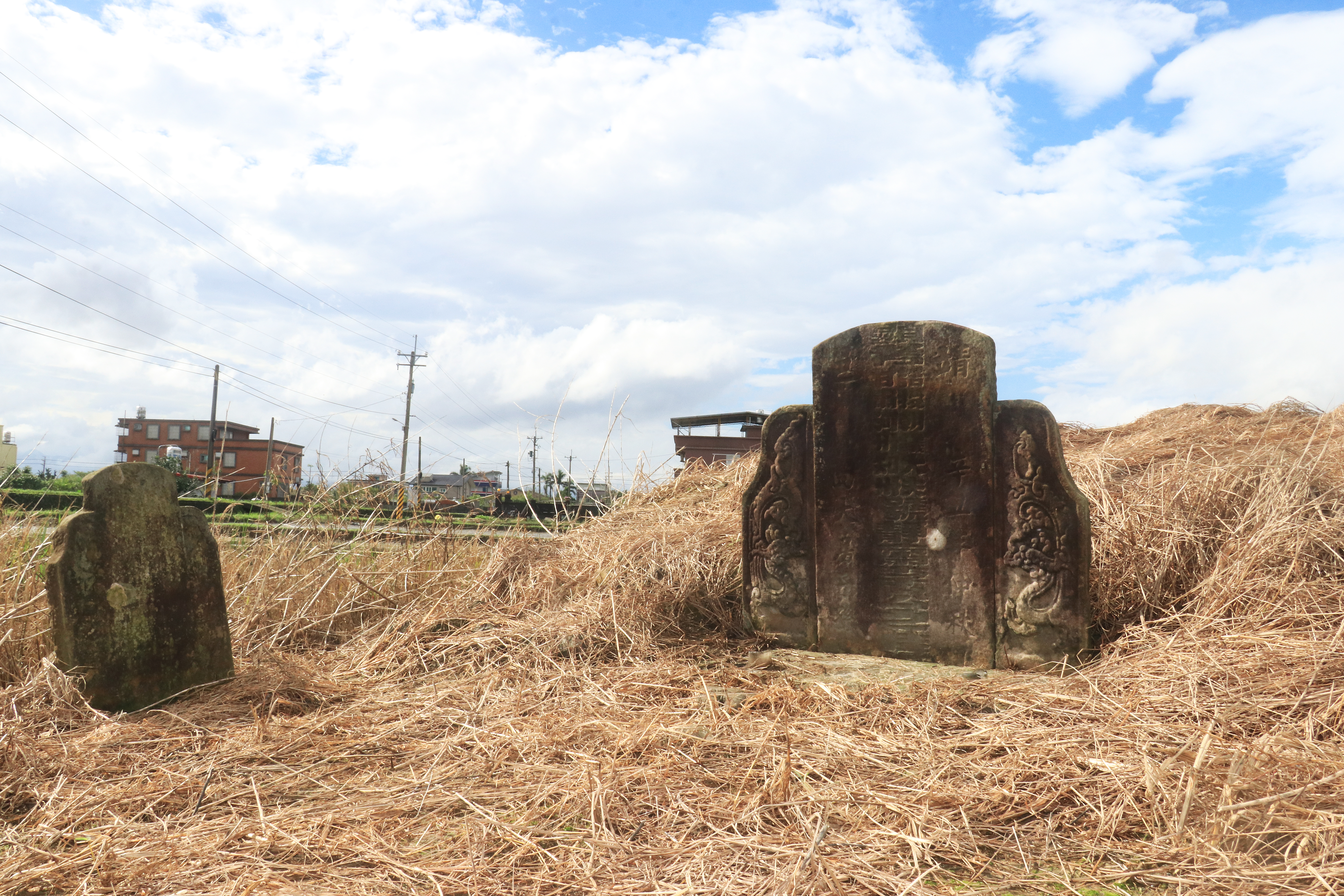 尚可,前有填實泥土的墓埕、石質墓碑及墓肩、以土推成的圓形墓丘及墓左前側的石質后土碑及肩石。