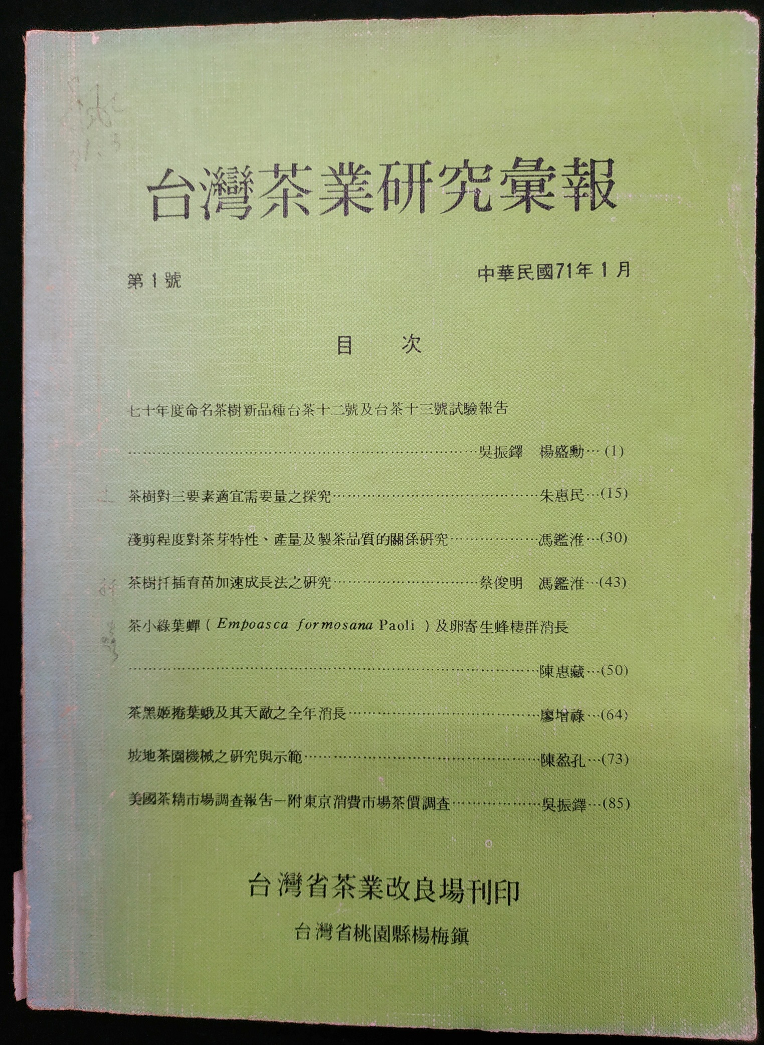 於1982年(71年)1月創刊,係茶業改良場第二任場長邱再發博士任內所指示創辦。一年出版一期,十六開本,每期刊載8-13篇茶業學術報告。