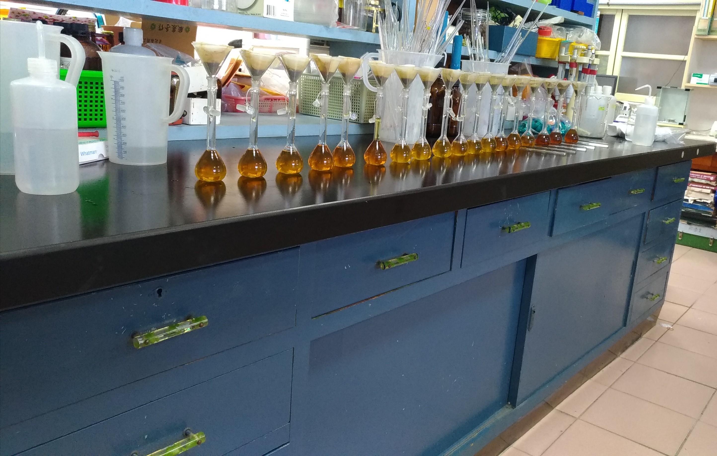 這個實驗桌雖無新穎俐落的外觀,但其沉穩厚重帶來的溫度卻是無可比擬的,老實驗桌陪伴著歷任於實驗室內從事茶業化學分析的前輩們,提供安全及舒適的分析操作環境,也希望實驗桌能夠繼續陪伴著我們一直往前走,繼續見證茶業化學分析技術的演變。