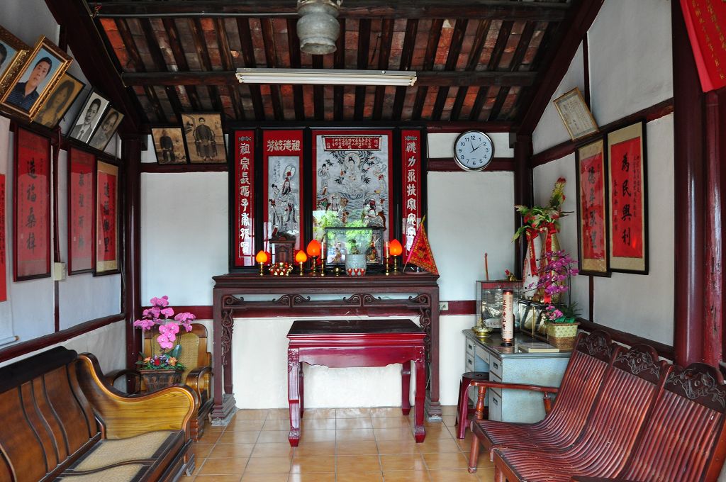 圖竹圍仔街古厝內的公媽廳懸掛歷代祖先與開基祖,一塵不染的大廳。牌位在傳統禮儀和習俗中,是用以祭奠列代神明、聖賢、祖先及亡者的木牌,上面書寫及雕刻神靈、先人或亡者的名諱,以及寫上一些吉祥話,象徵祂的神靈附著於此受人崇拜,神位或公媽安置方法首先要注意擇日,安座的位置也必須配合陽宅之吉旺方,否則就會產生不好的作用。在一般家庭中常見供奉許多神明,而佛、菩薩及諸天神明各有其地位和位階,而必須依照位階來供奉,千萬不要隨便供奉神明。清乾隆年間,相傳為清乾隆12年(1747)簡姓原住民武朥灣社族群開闢地區,閩人稱「番」為「畬」後延用至今,竹圍仔街旁有街道名為簡仔畬街,即源於此。原住民已漢化,至今無從分辨,倒是簡仔畬街,依然老舊,跟竹圍仔一樣是三重市較落後的地區,但崇拜祖先、慎終追遠不忘本的精神猶在,倒是可為現代都會人的最佳家庭示範。