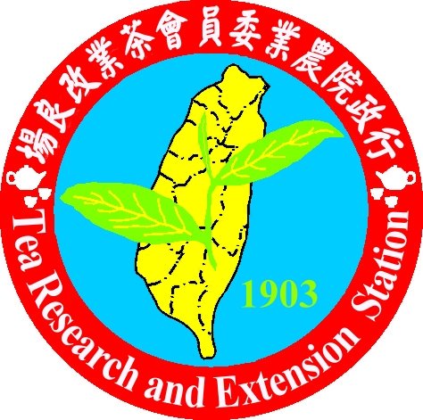 圖為行政院農業委員會茶業改良場場徽,圖中可見中英文名稱行政院農業委員會茶業改良場及Tea Research and Extension Station及1903 字樣,圖案則有台灣、茶葉、壺與杯。