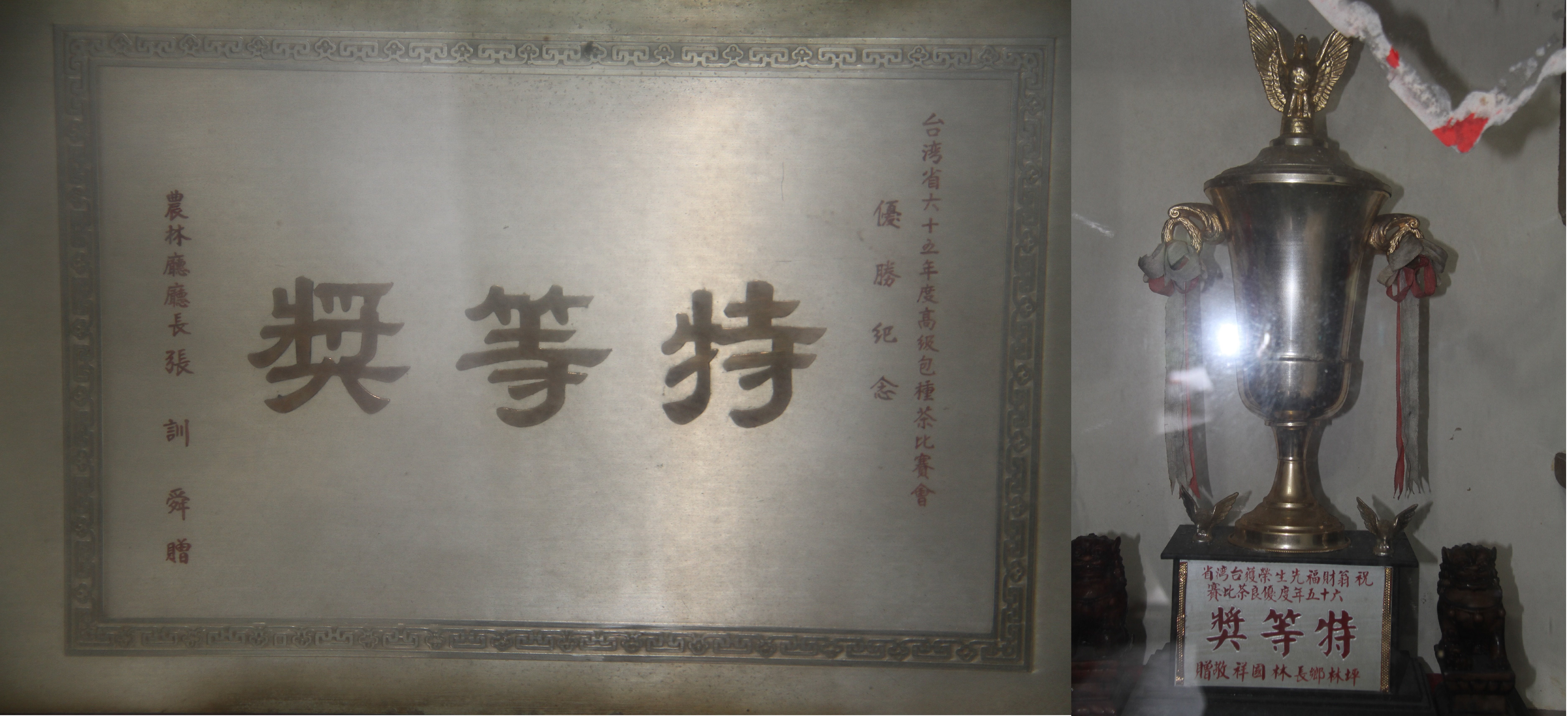 圖為坪林祥泰茶業有限公司所保存,為1976年(民國六十五年)五月四日至九日臺灣省政府農林廳在新店地區農會舉辦臺灣省第二次優良包種茶葉比賽暨展售大會,坪林鄉茶農翁財福榮獲特等獎 (右),而該茶葉係由祥泰茶莊老闆馮添發 (左) 指導採製。