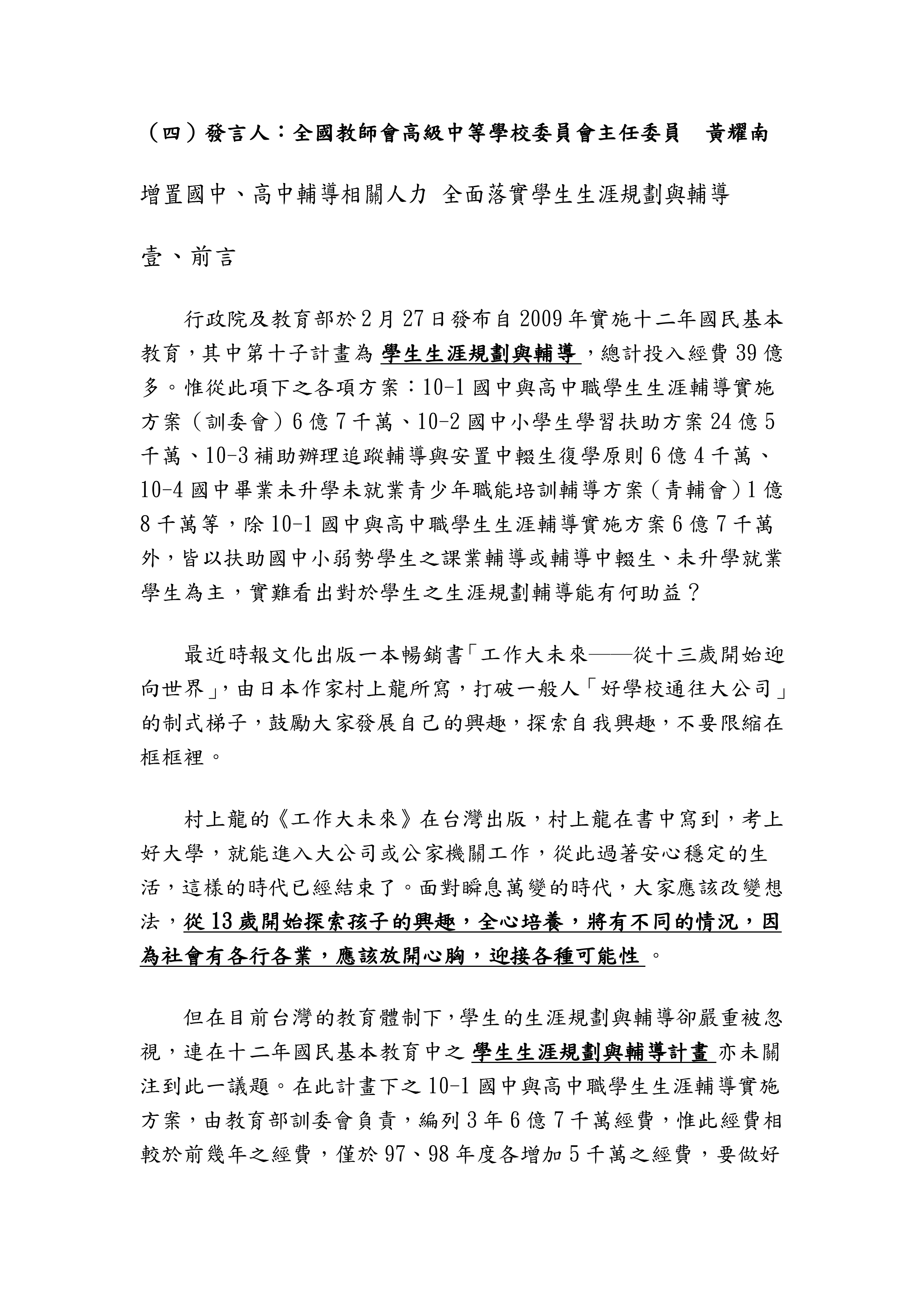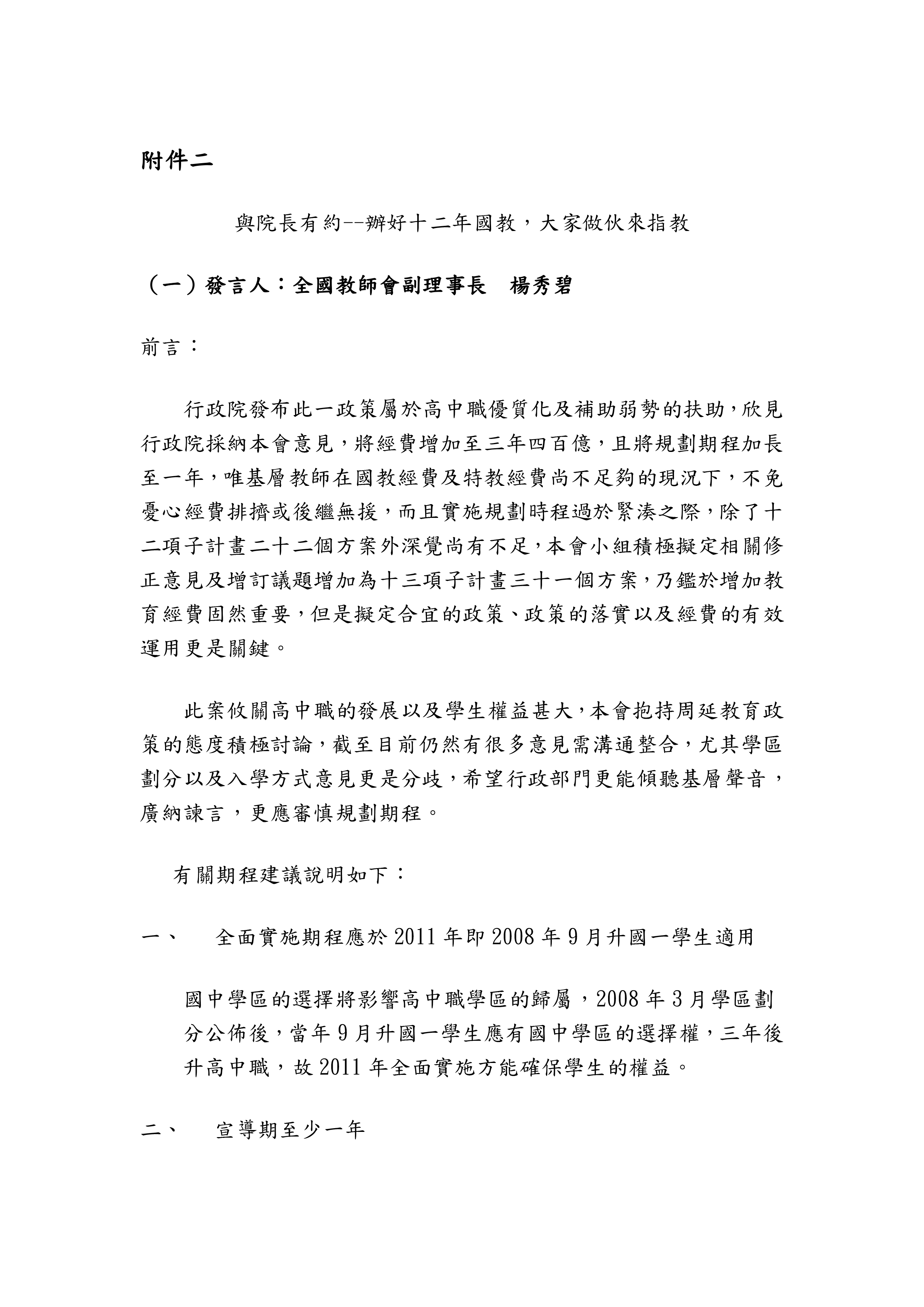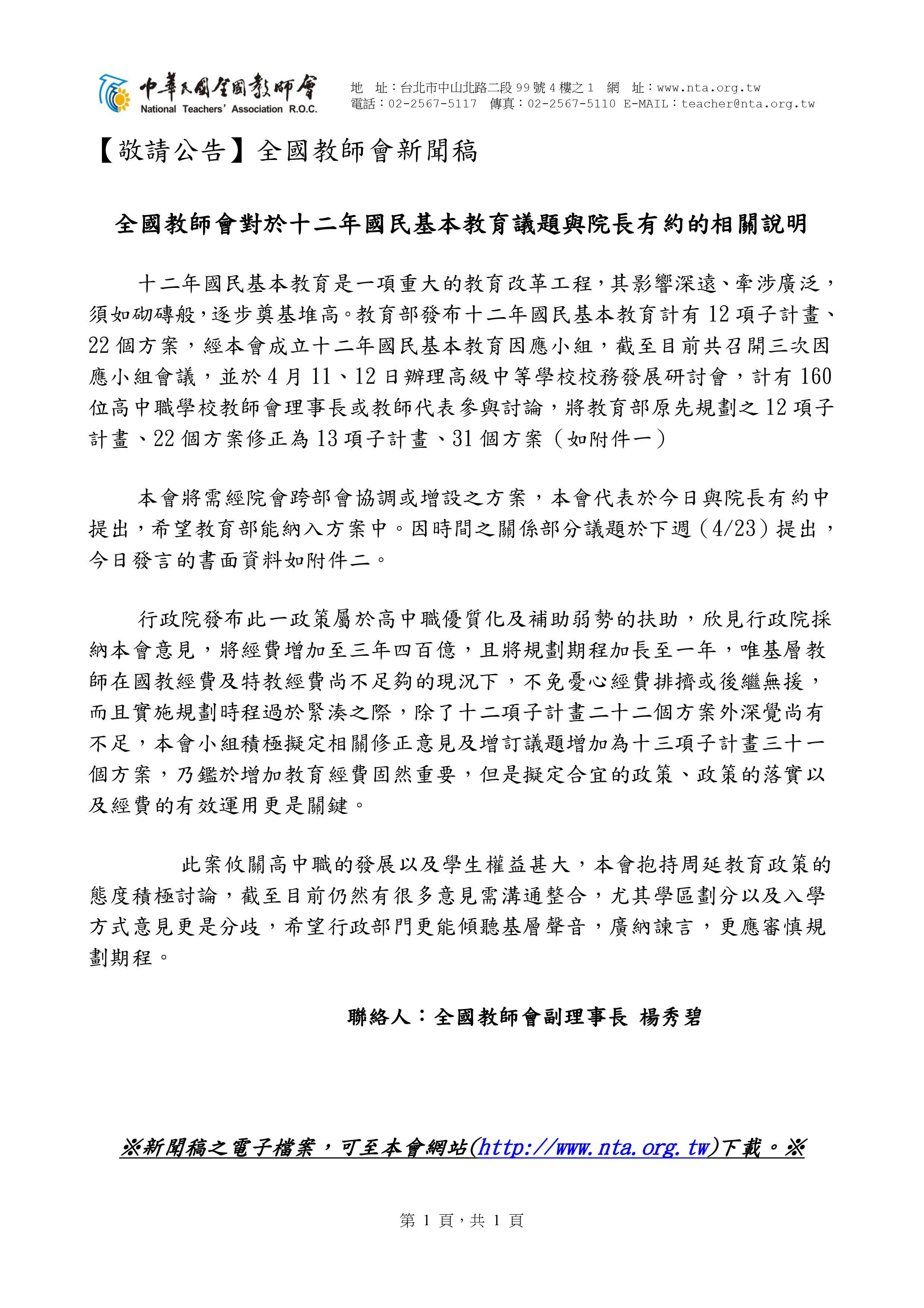 20070417【新聞稿】全國教師會對於十二年國民基本教育議題與院長有約的相關說明