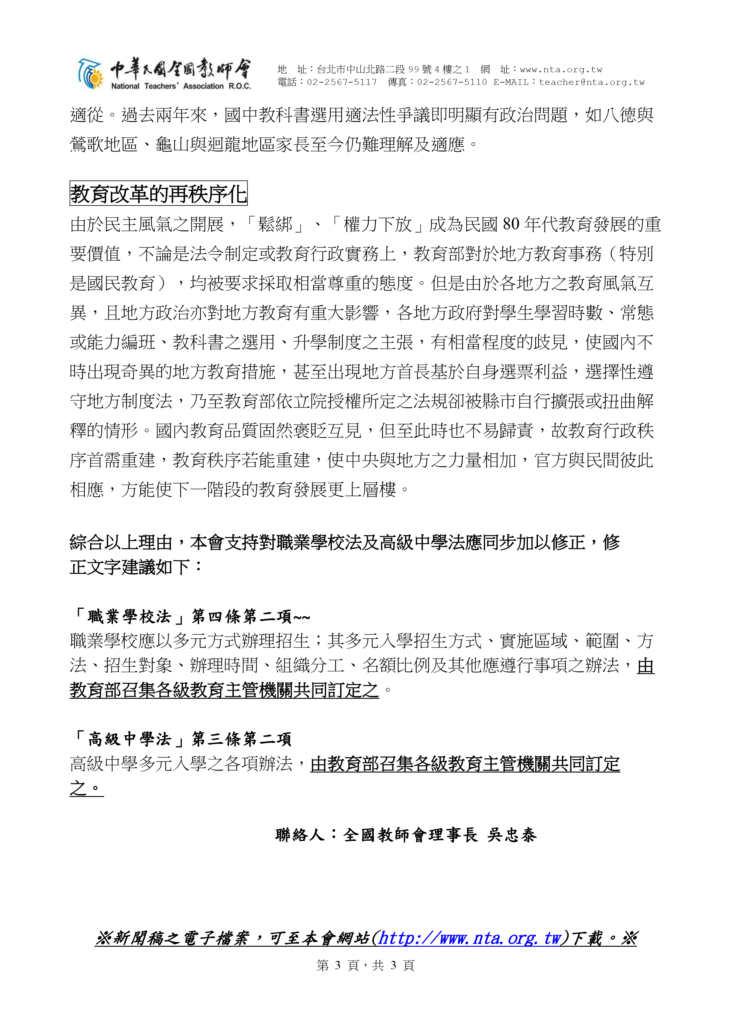 20090415【新聞稿】高中職入學制度亂不得!學生升學權益不能犧牲!