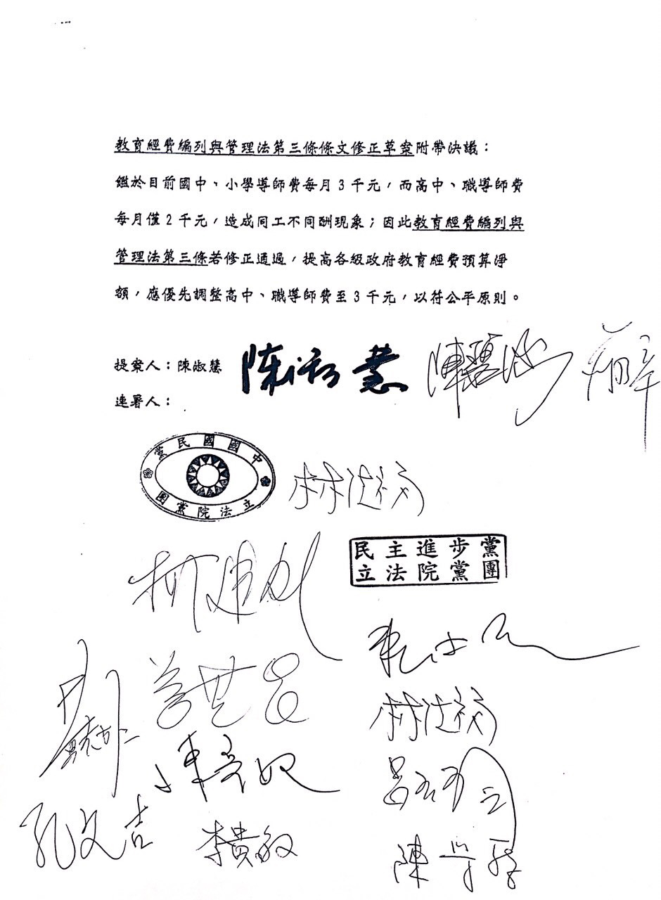 2015年12月18日是第八屆國會正式會期的最後一天,有關教育經費是否調高一案,全國教師工會總聯合會(簡稱全教總)除於12月18日發出新聞稿,要求教育經費應該立即增加,不應到2017年才增加,並積極連絡各黨團委員,請委員支持教育經費編列與管理法修正,以增加教育經費。經積極努力,立法院各黨團已同意教育經費自2017學年度調高0.5個百分點,並通過陳淑慧委員等人之提案,各黨團做成附帶決議,在朝野黨團協商後,備受關注的教育經費編列與管理法,可望於第八屆國會最後一天完成三讀。雖然未能達成自明年就增加1 個百分點的訴求,對立法院三讀通過教育經費編列與管理法修正案,全教總表達可以接受,但再次指出,教育經費編列與管理法第三條第二項是年度教育經費的下限,但長期以來成了上限。全教總呼籲各主管機關切勿再挪用教育經費於他用,並檢討不當的專案補助計畫。再次要求教育部配合立法院附帶決議,即刻調高高中職導師費至每月三千元,以符法治。