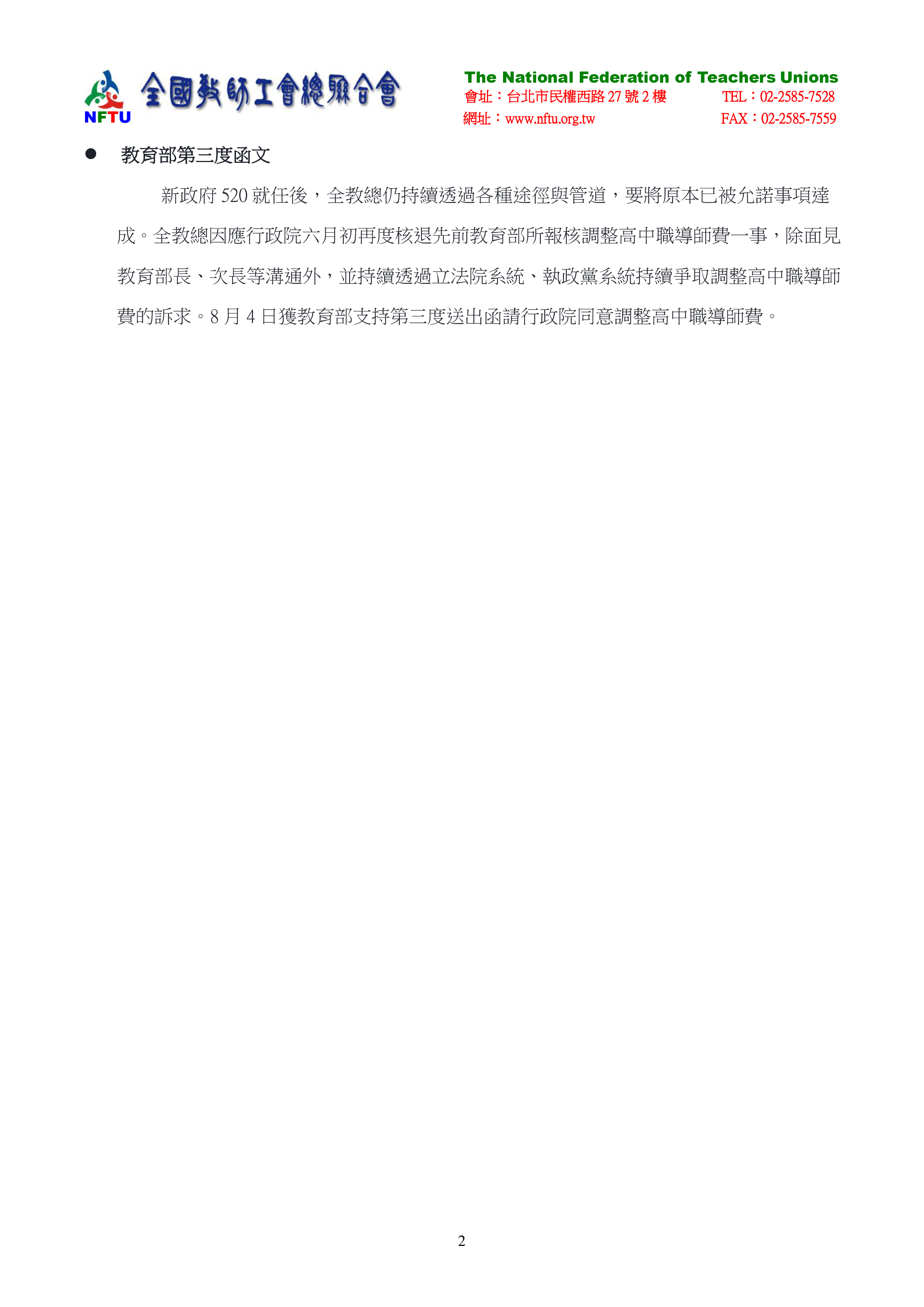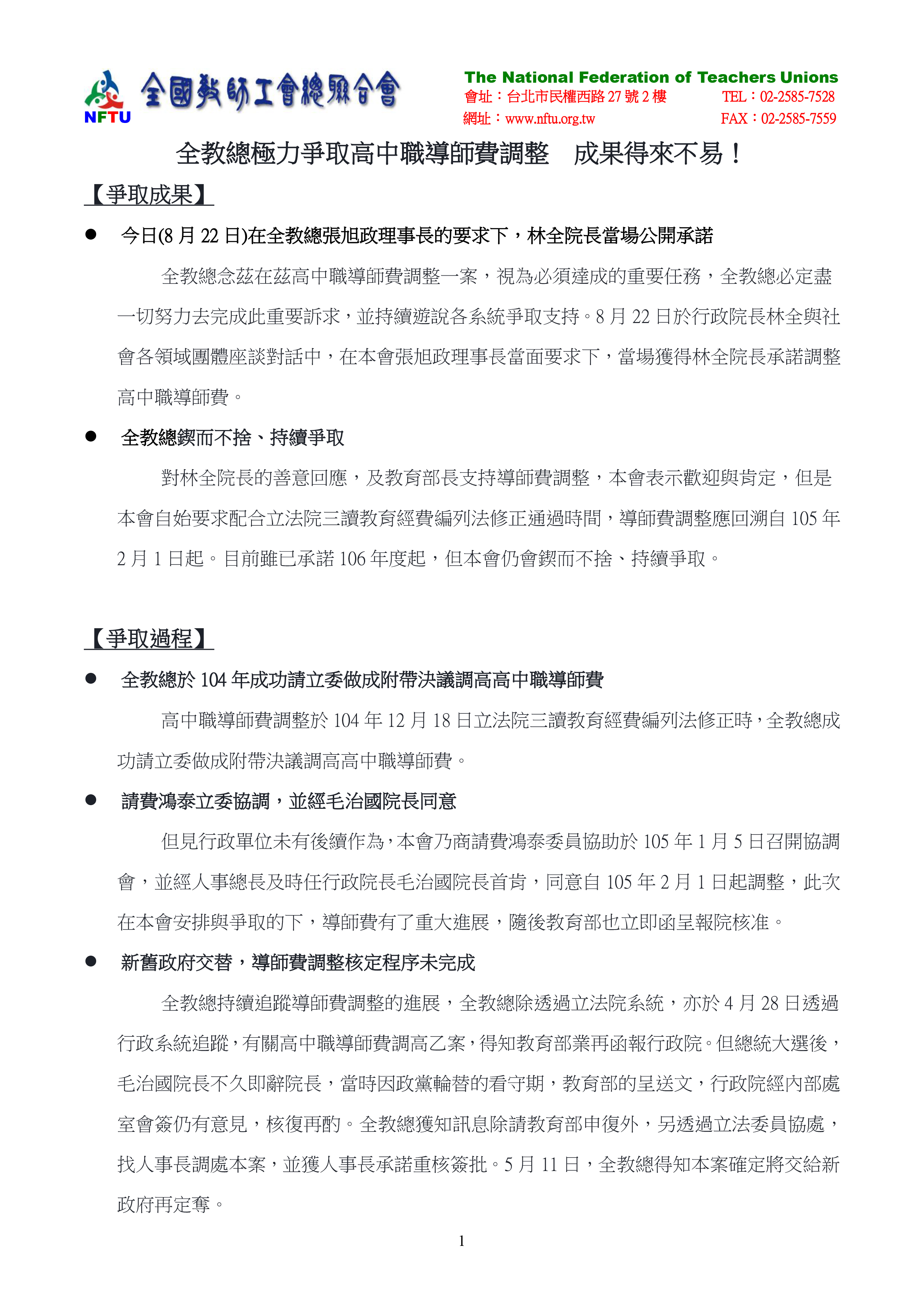 20160822【公告】全教總極力爭取高中職導師費調整 成果得來不易!