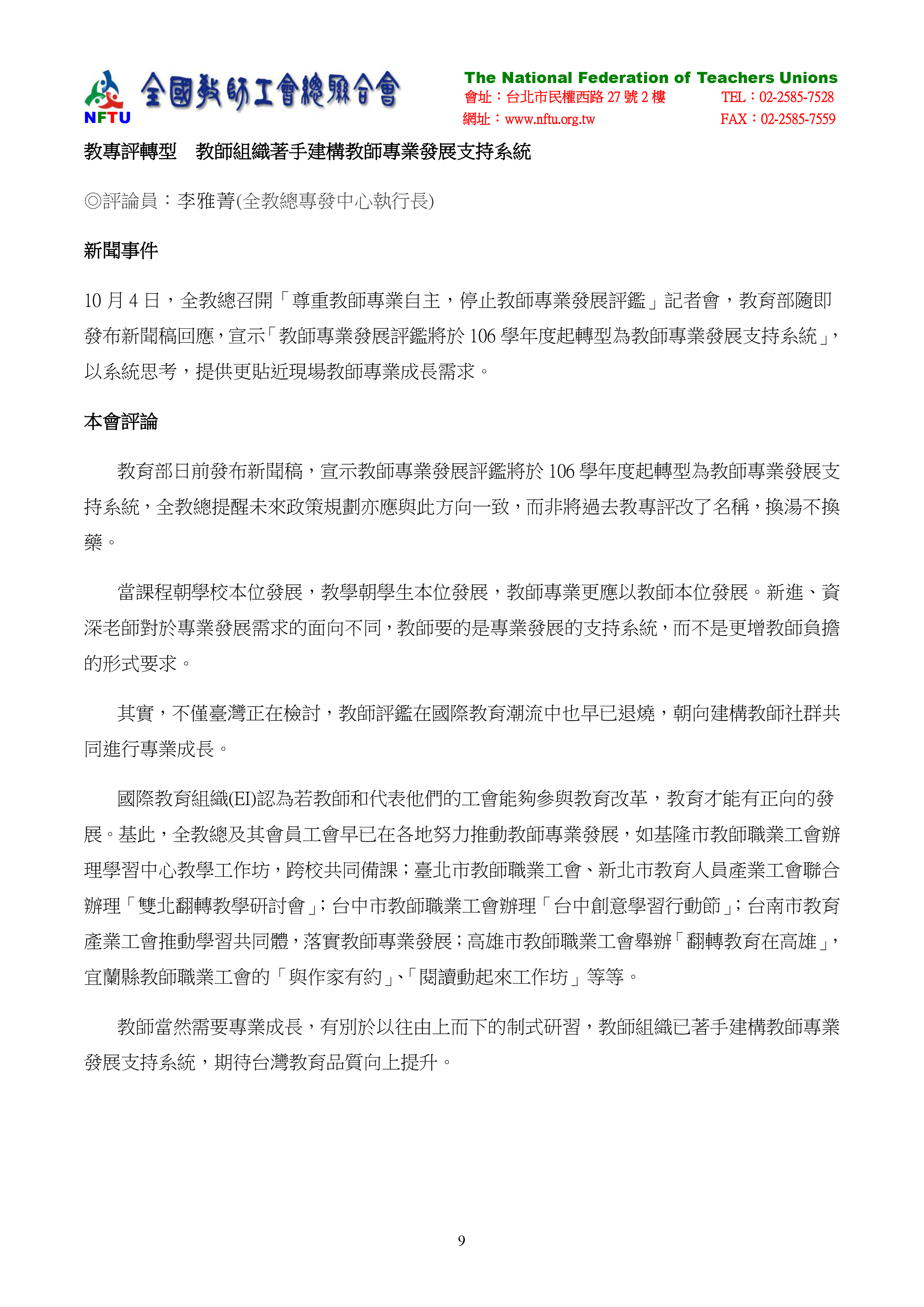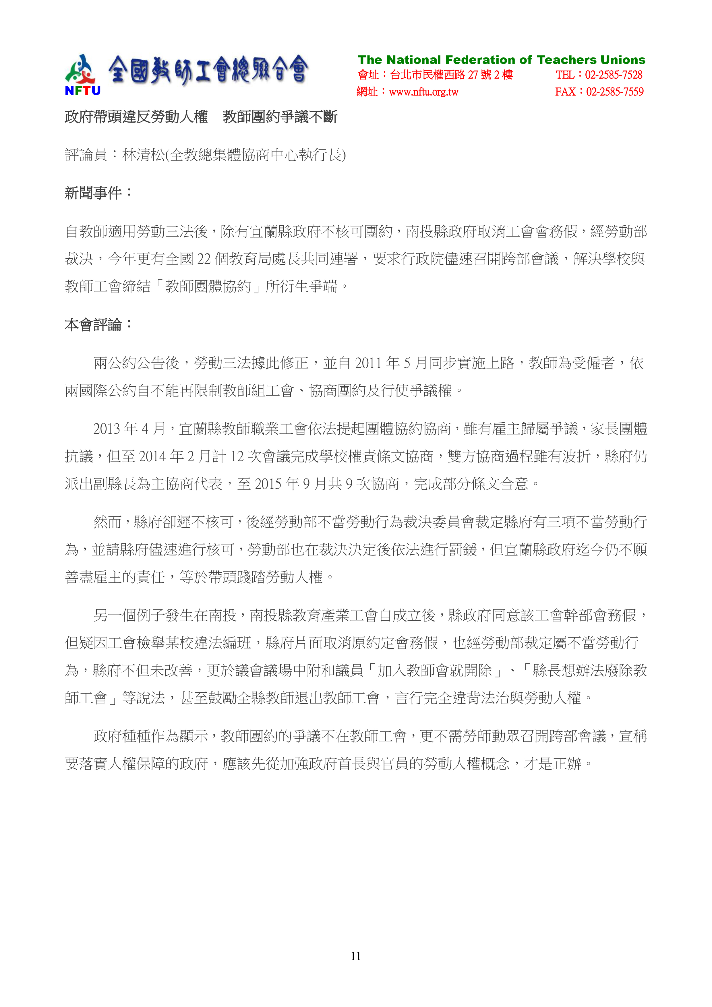 9.政府帶頭違反勞動人權 教師團約爭議不斷。