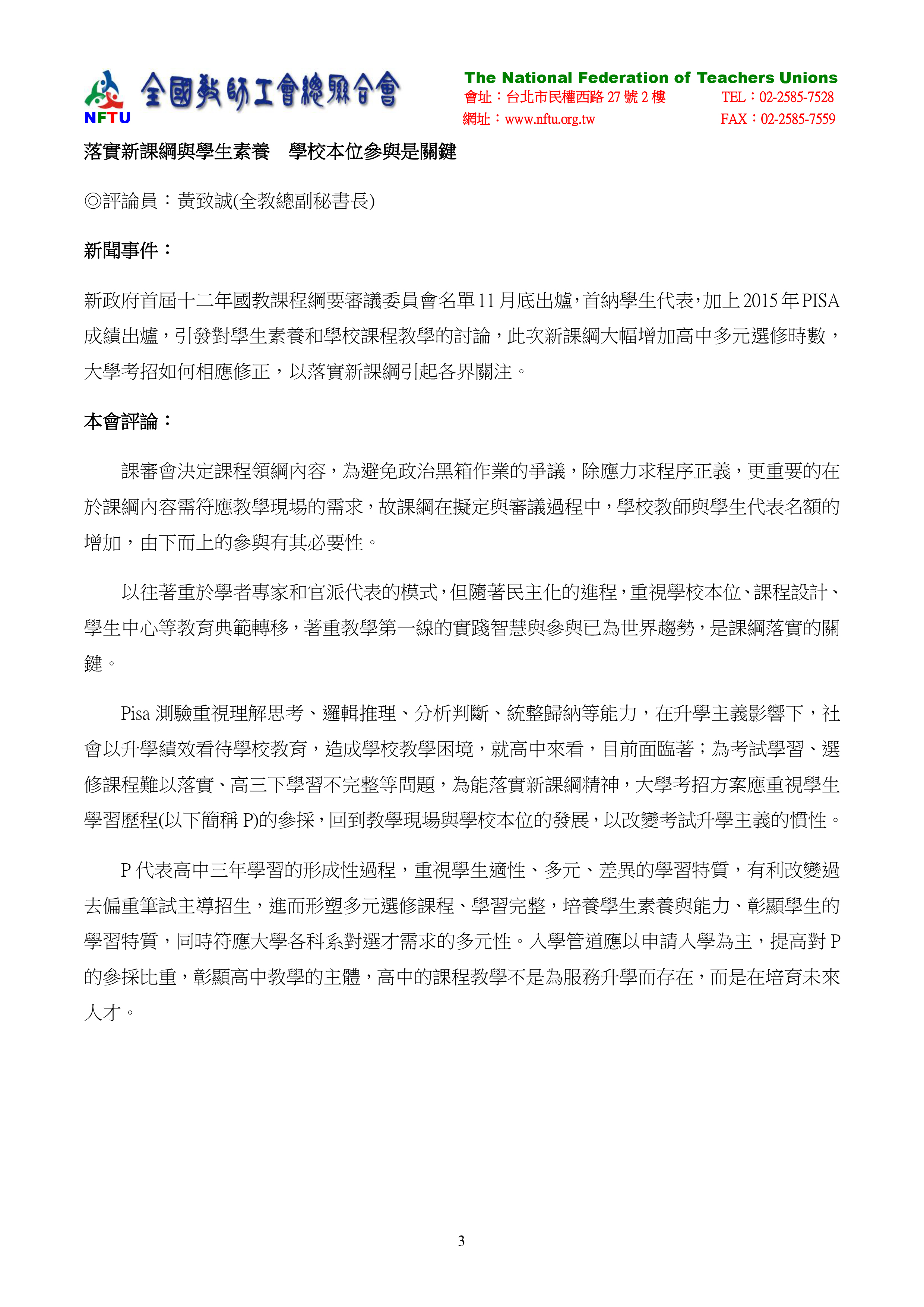 1.落實新課綱與學生素養 學校本位參與是關鍵。