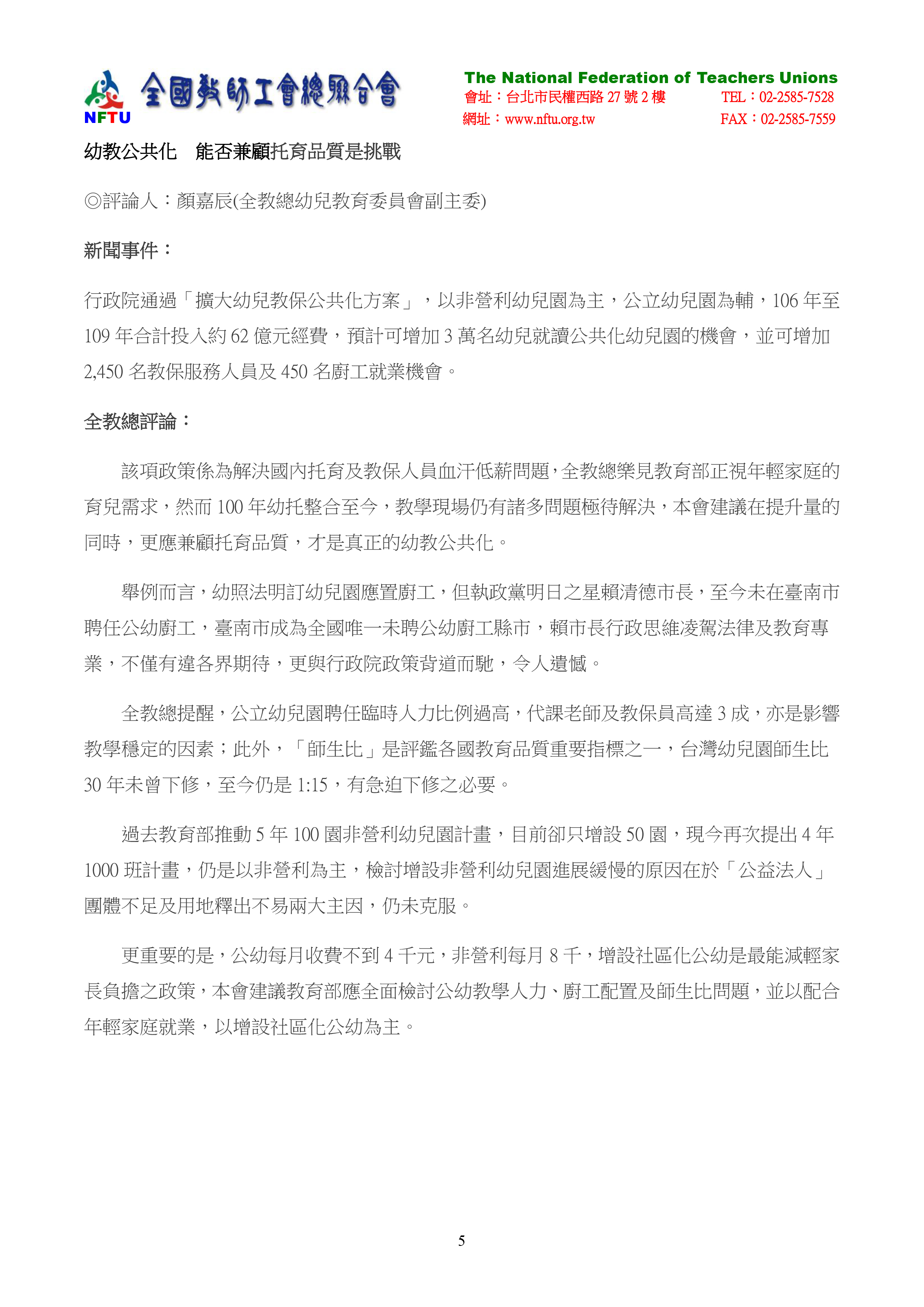 3.幼教公共化 能否兼顧托育品質是挑戰。