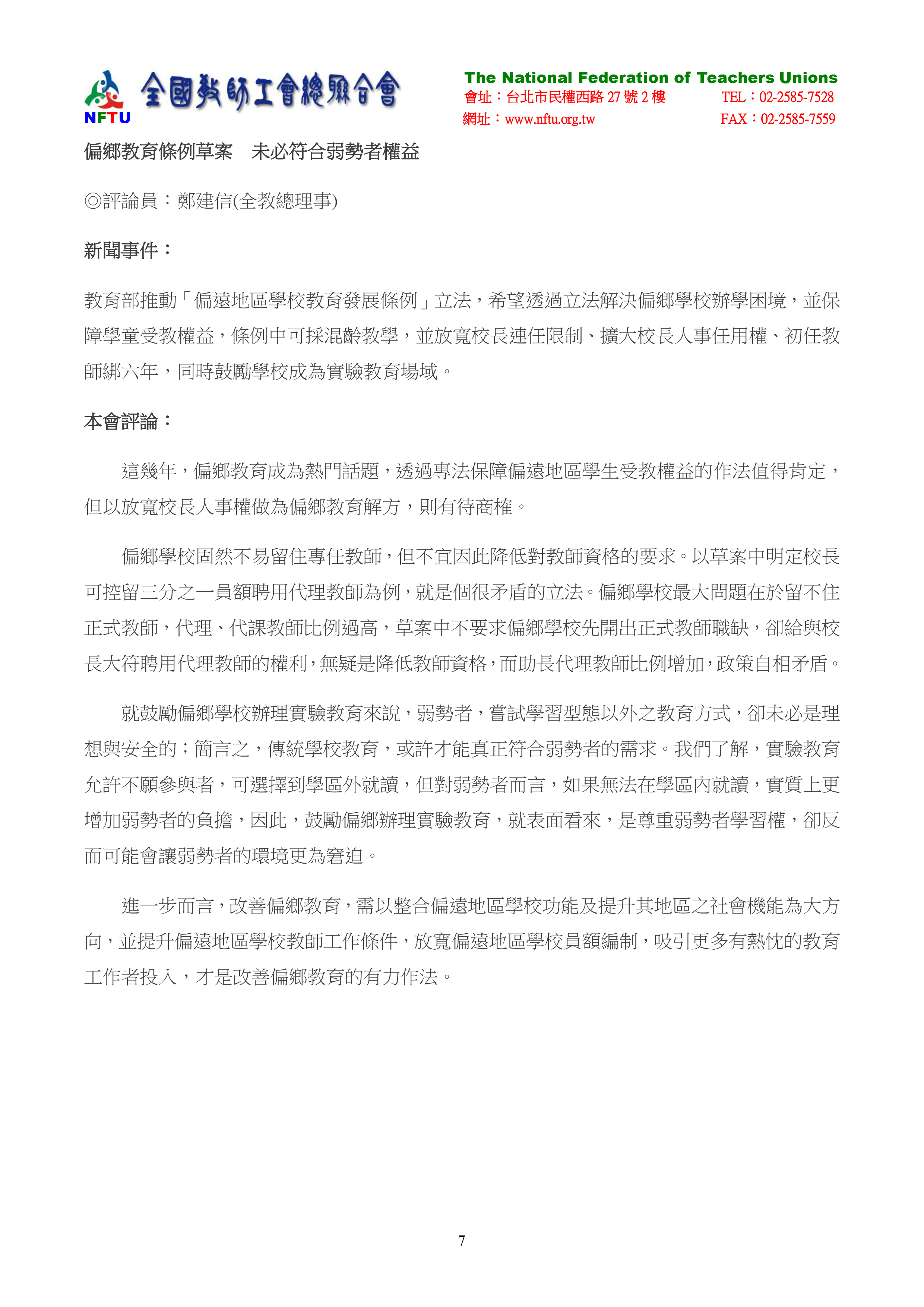 5.偏鄉教育條例草案 未必符合弱勢者權益。