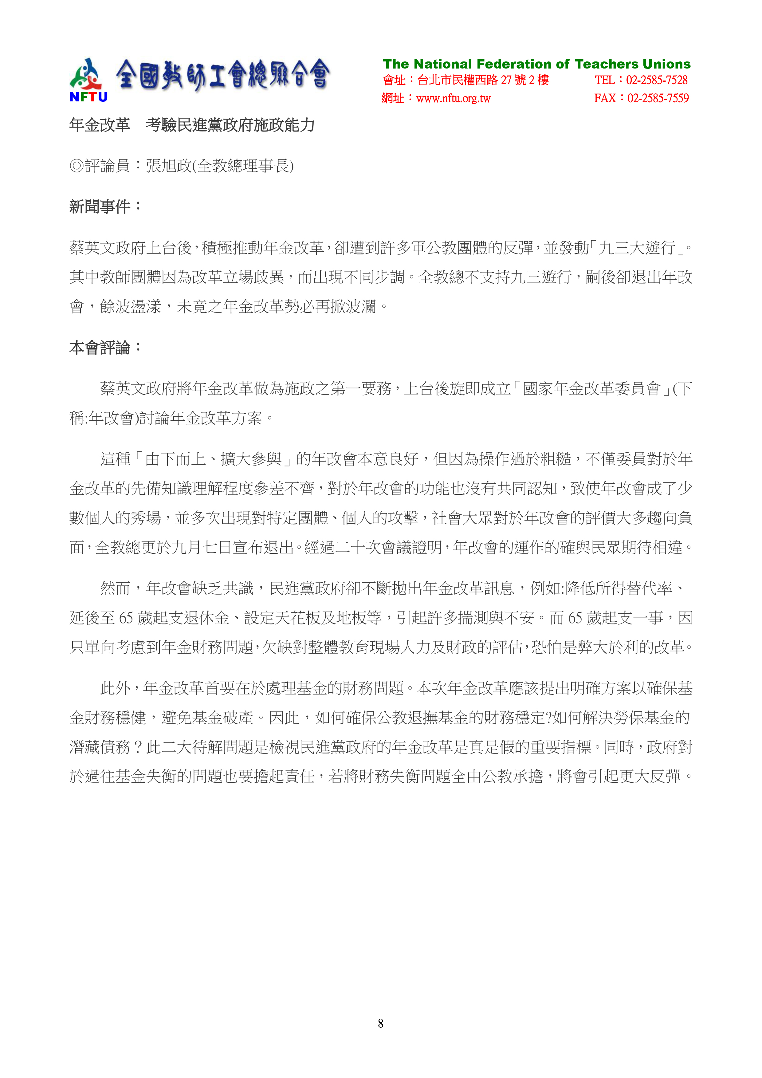 6.年金改革 考驗民進黨政府施政能力。