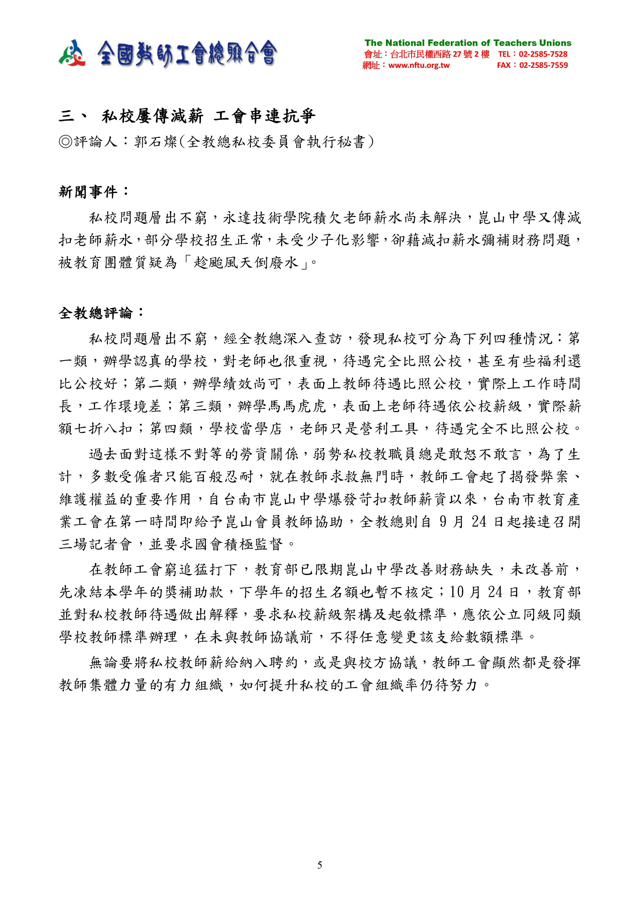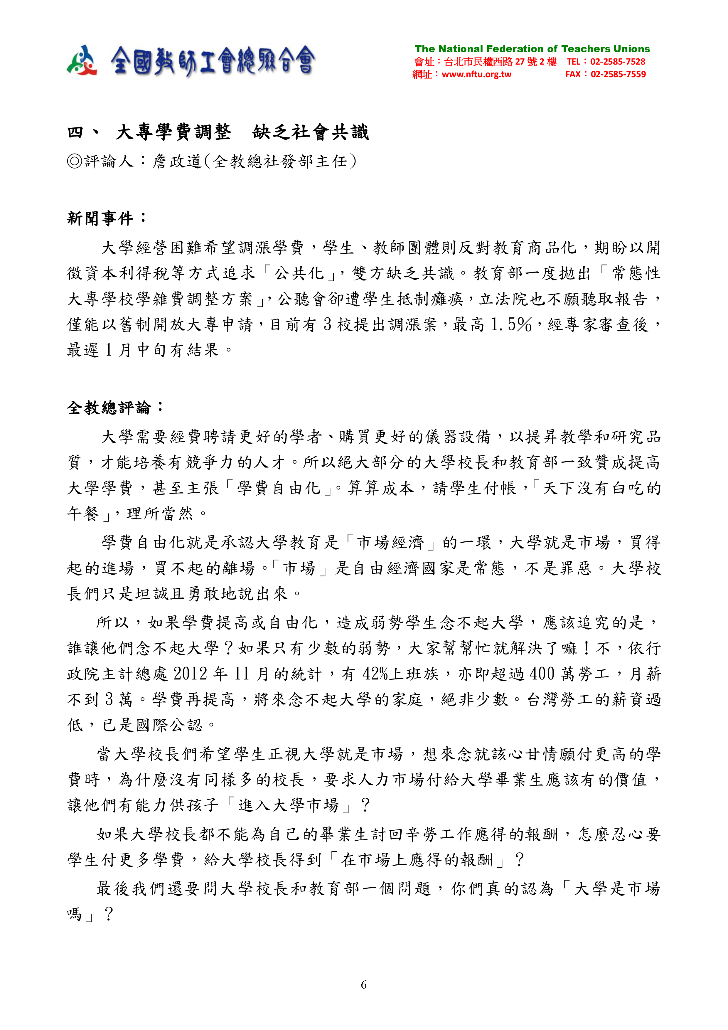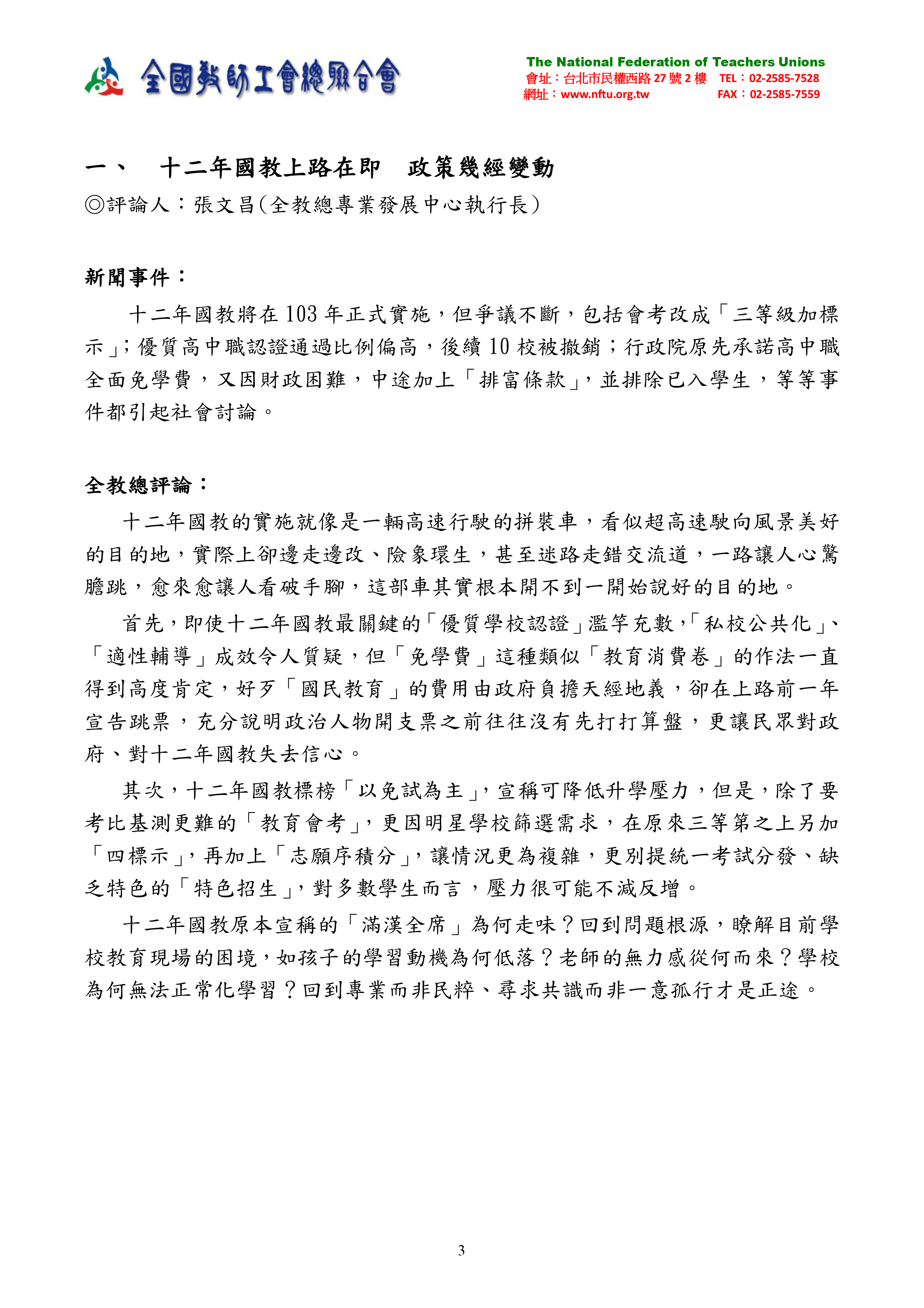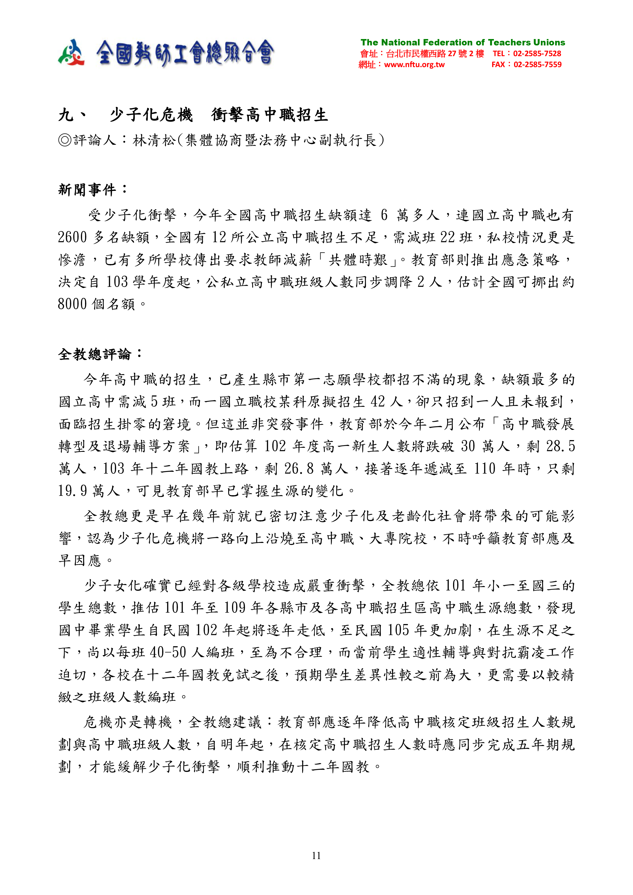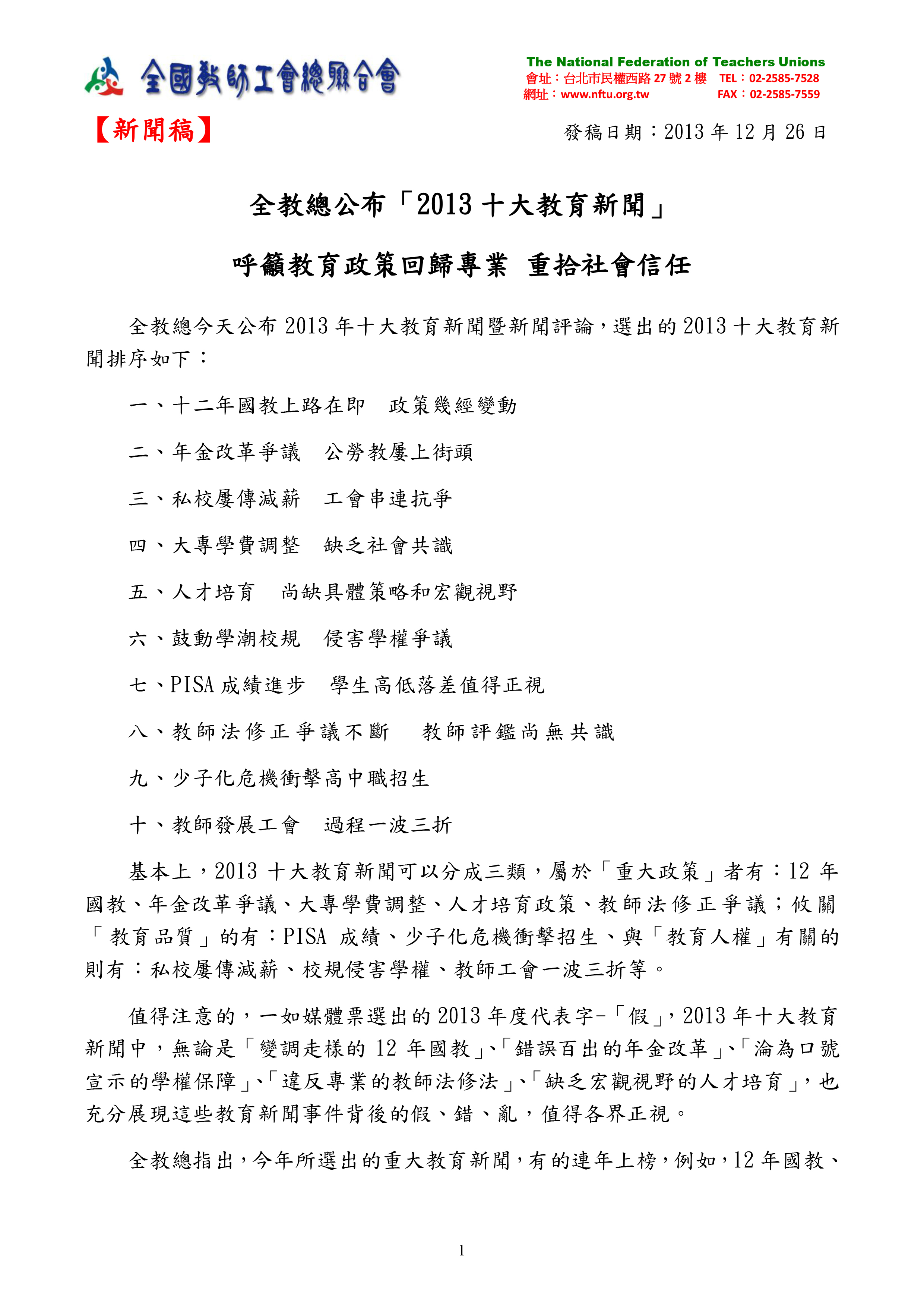全教總今天公布2013年十大教育新聞暨新聞評論,選出的2013十大教育新聞排序如下: