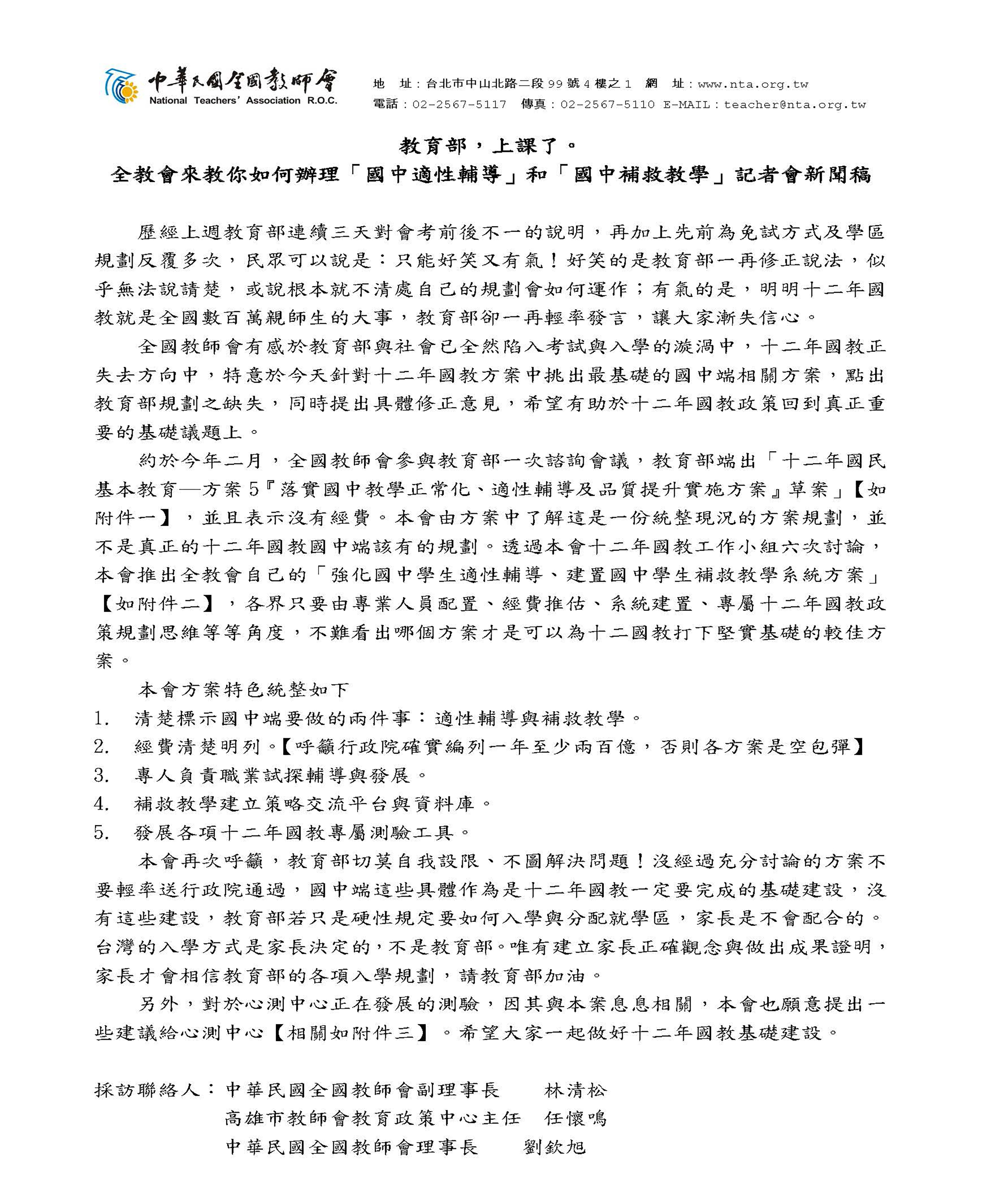 本會再次呼籲,教育部切莫自我設限、不圖解決問題!沒經過充分討論的方案不要輕率送行政院通過。