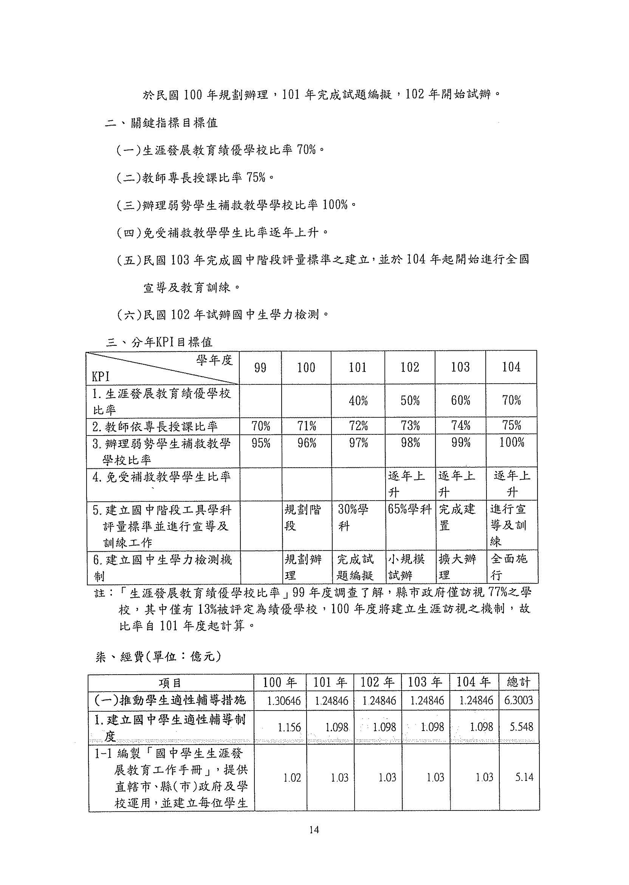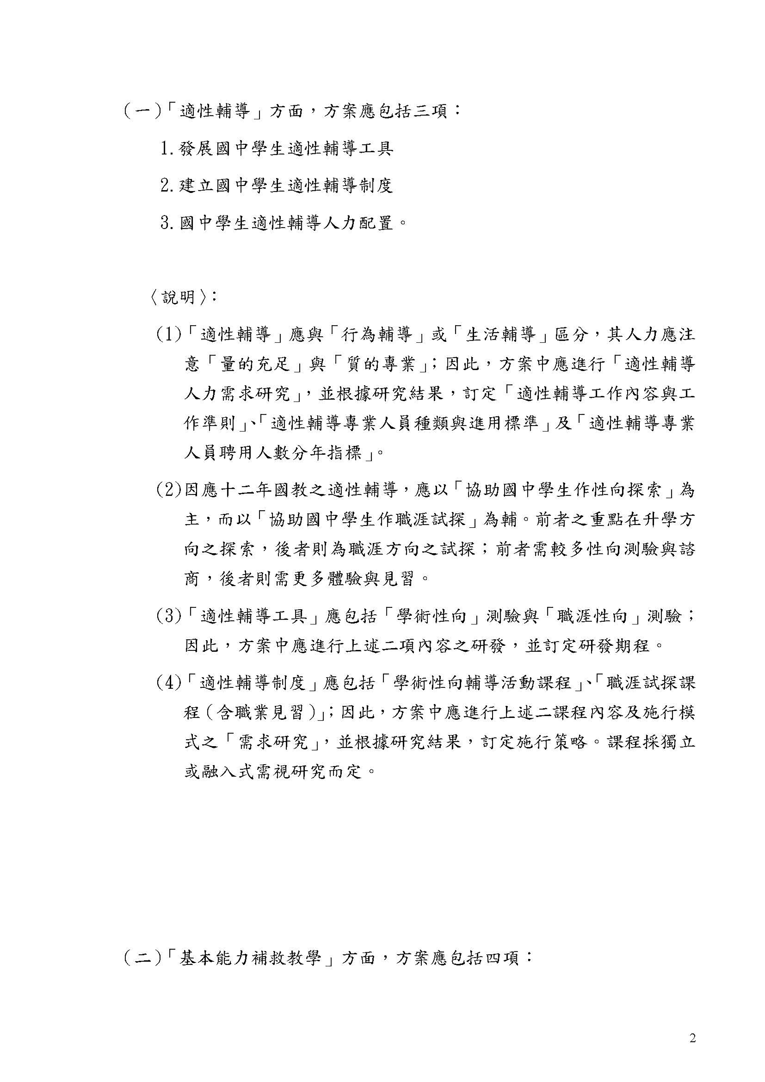 1. 清楚標示國中端要做的兩件事:適性輔導與補救教學。