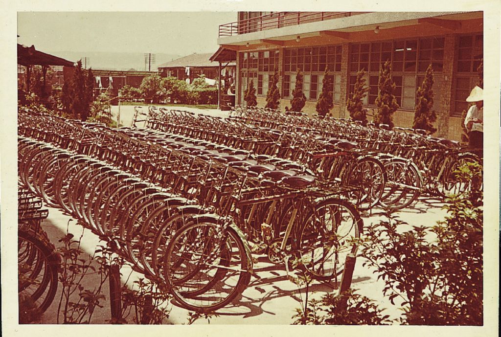 圖民國40年(1951)三重市重新路五段447號幸福牌腳踏車廠地內,腳踏車排列整齊,當年台灣社會騎腳踏車盛況不難想像。民國38年(1949)李進枝取得日本資生堂的授權,負責資生堂在台灣方面的銷售任務,當年輕的李進枝回台灣想開發市場時,礙於時機尚未成熟,遲遲未能有實際的進展,頭腦靈光的青年李進枝配合政府當時政經重整政策,與長兄李阿淮及胞弟李阿青共同成立「城中車業行」與「城中貿易行」,也在三重市重新路五段與五谷王北街設立了幸福牌腳踏車工廠。長兄李阿淮擅長腳踏車保養修理,城中車業行就交由其管理;弟弟李阿青公務員則負責城中貿易行,暫時從事日本腳踏車的進口代理。民國50年(1961)後,批發店出來組車的廠家如雨後春筍般快速增加,在這些台灣早期的名牌腳踏車業者中,尤以「五順」、「五聯」、「白兔」、「白鶴」、「幸福」、「飛虎」、「東山」規模稱大。當時名稱好記、名氣最盛的是台北市李進枝的幸福牌腳踏車。