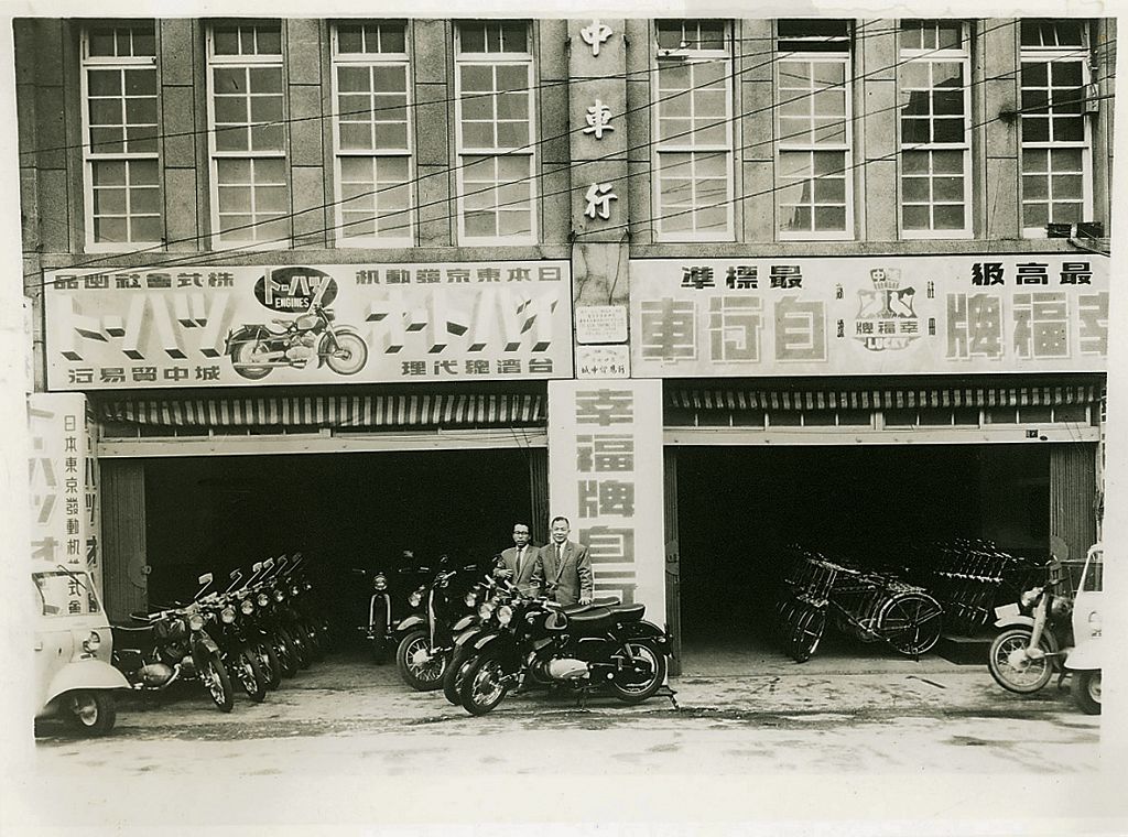 圖民國41年(1952)李進枝在城中車業行曾自創幸福牌自行車並代理機車業務。民國38年(1949)李進枝與長兄李阿淮及胞弟李阿青共同成立「城中車業行」與「城中貿易行」,由於李阿淮擅長腳踏車保養修理,城中車業行就交由其管理;弟弟李阿青則負責城中貿易行,暫時從事日本腳踏車的進口代理,並配合當時政府的外匯政策,出口梧桐以及筍乾、香茅油、薑黃等料理材料與民生用品至日本等地,李阿青更肩負貿易行的進出口報關;而李進枝個人則將主力放在車業行的業務開發與各項外務事宜,並代理日本進口機車業務。當時城中貿易行與城中車業行,代理的是日本最有名且最高級的ケンネツト自行車,李進枝即採用在日本資生堂所學得的經營方針經營公司與銷售業務。