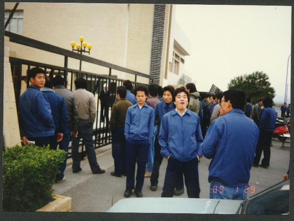 照片為高雄縣台達化學工業公司林園廠產業工會會員群聚在公司大門口罷工的情景。