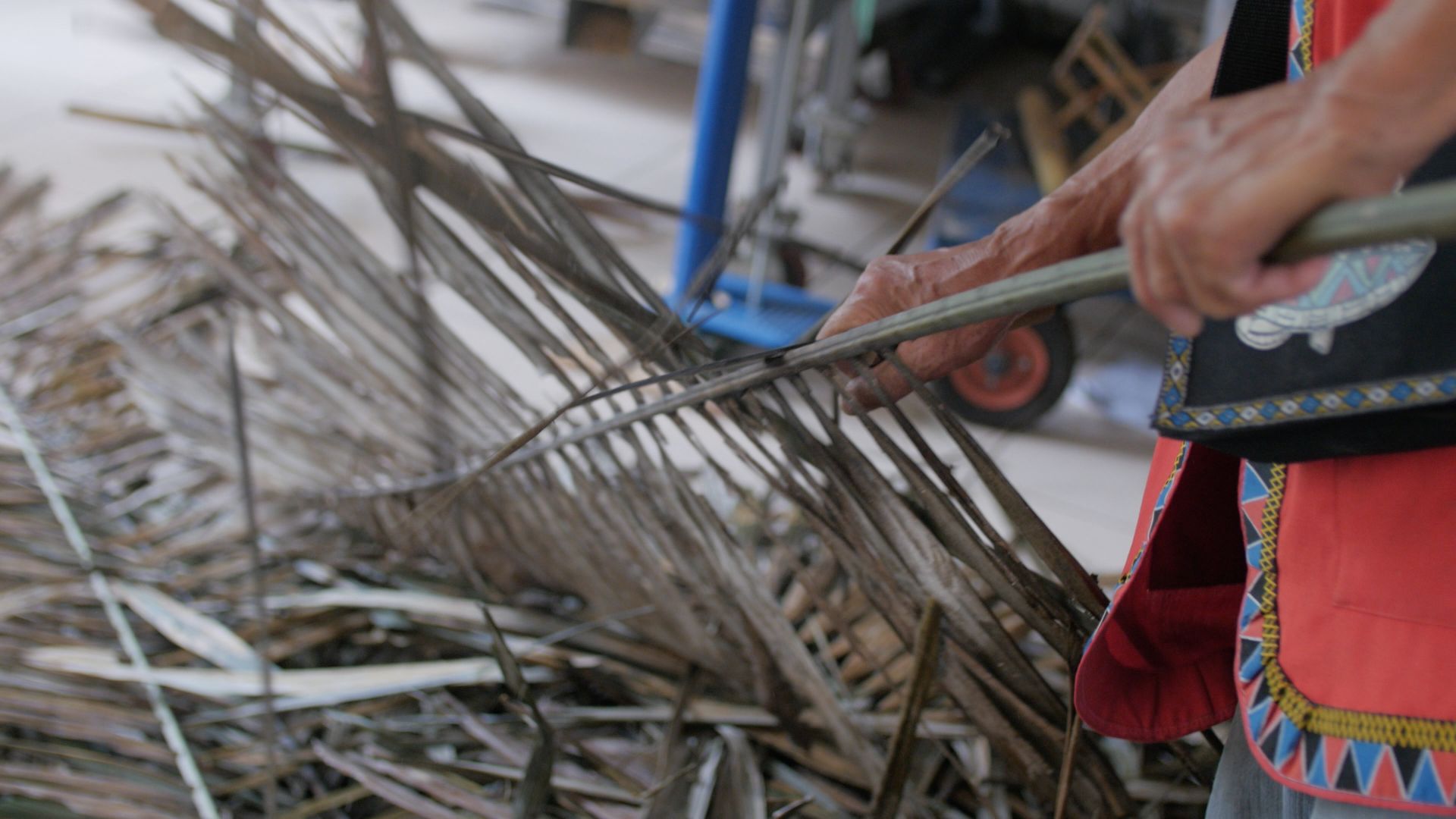 製作過程:將黑棕上的葉片以柴刀去掉