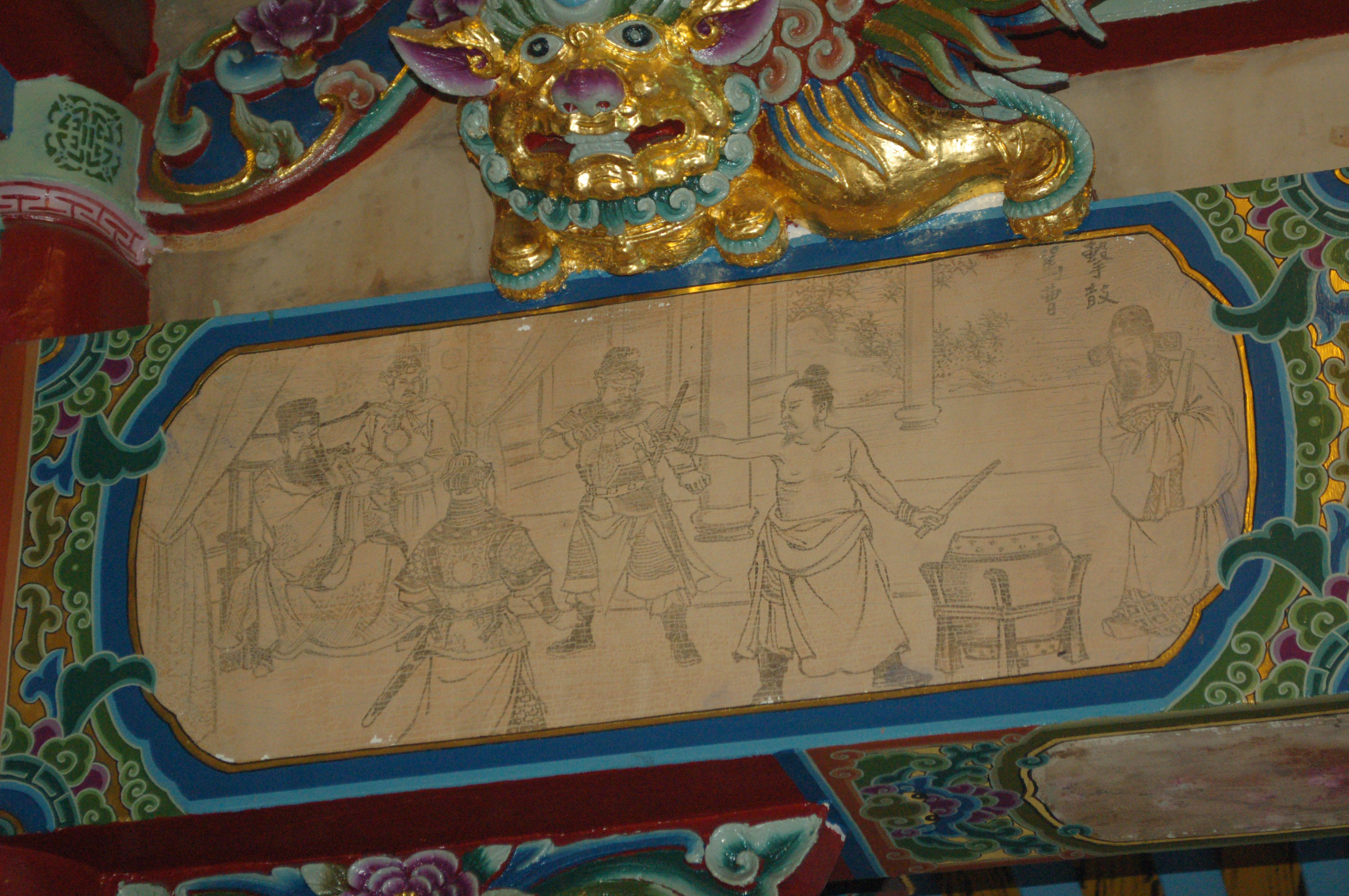 本件彩繪位於國定古蹟北港朝天宮,題名擊鼓罵曹,是由台南府城彩繪大師陳壽彝所做,一看就知是經典。